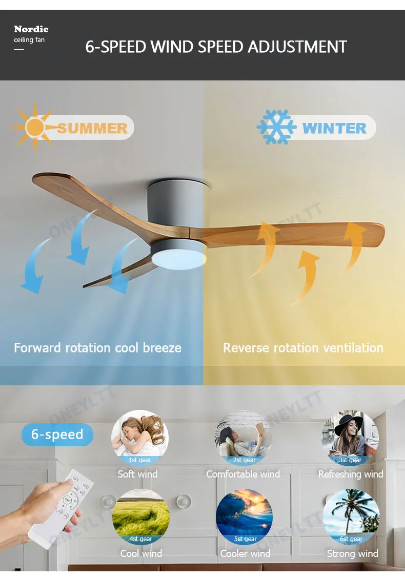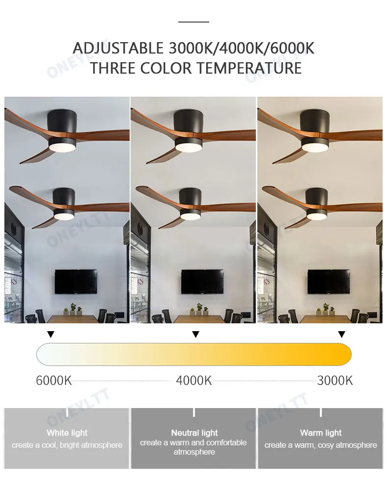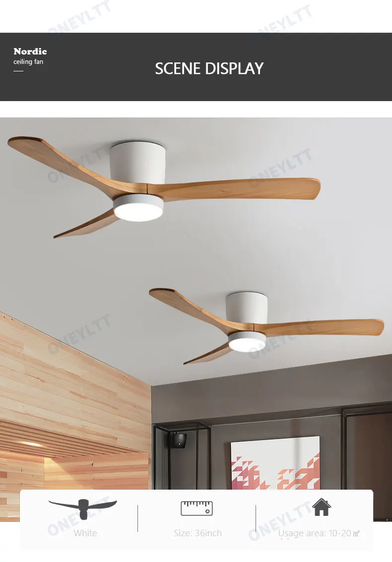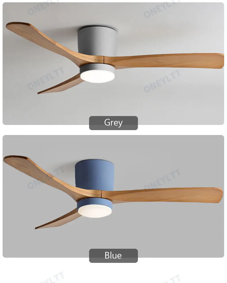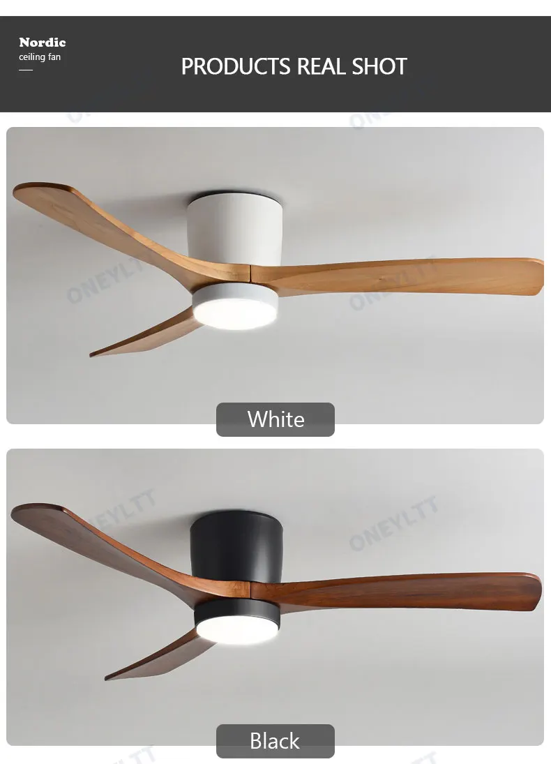 Низкопрофильный потолочный вентилятор с подсветкой, 3 резьбовых деревянных лопасти вентилятора, бесшумный Реверсивный мотор, пульт дистанционного управления с утопленным креплением