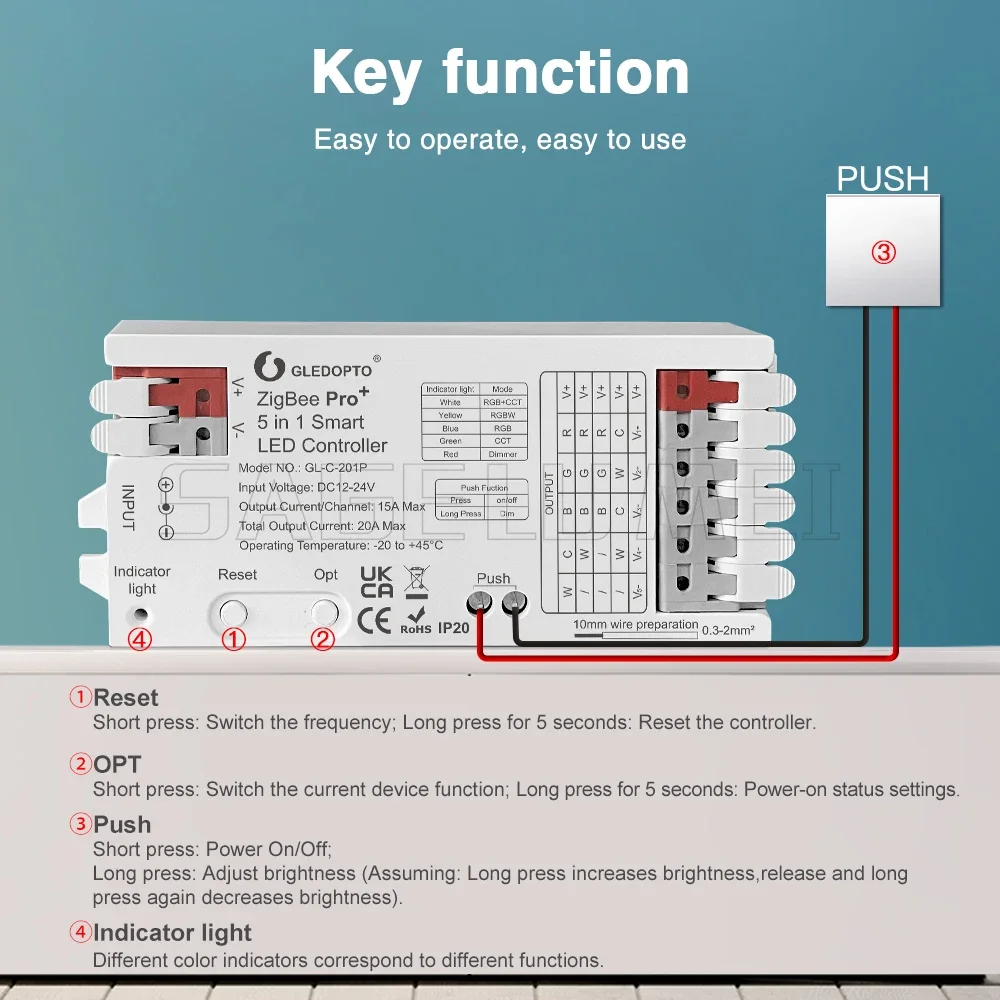 Gledopro ZigBee 3,0 Pro + 5 В 1 светодиодный контроллер полосы 20A Max RGBCCT/RGBW/RGB/CCT/диммер Alexa Homey Tuya умное приложение Голосовое управление