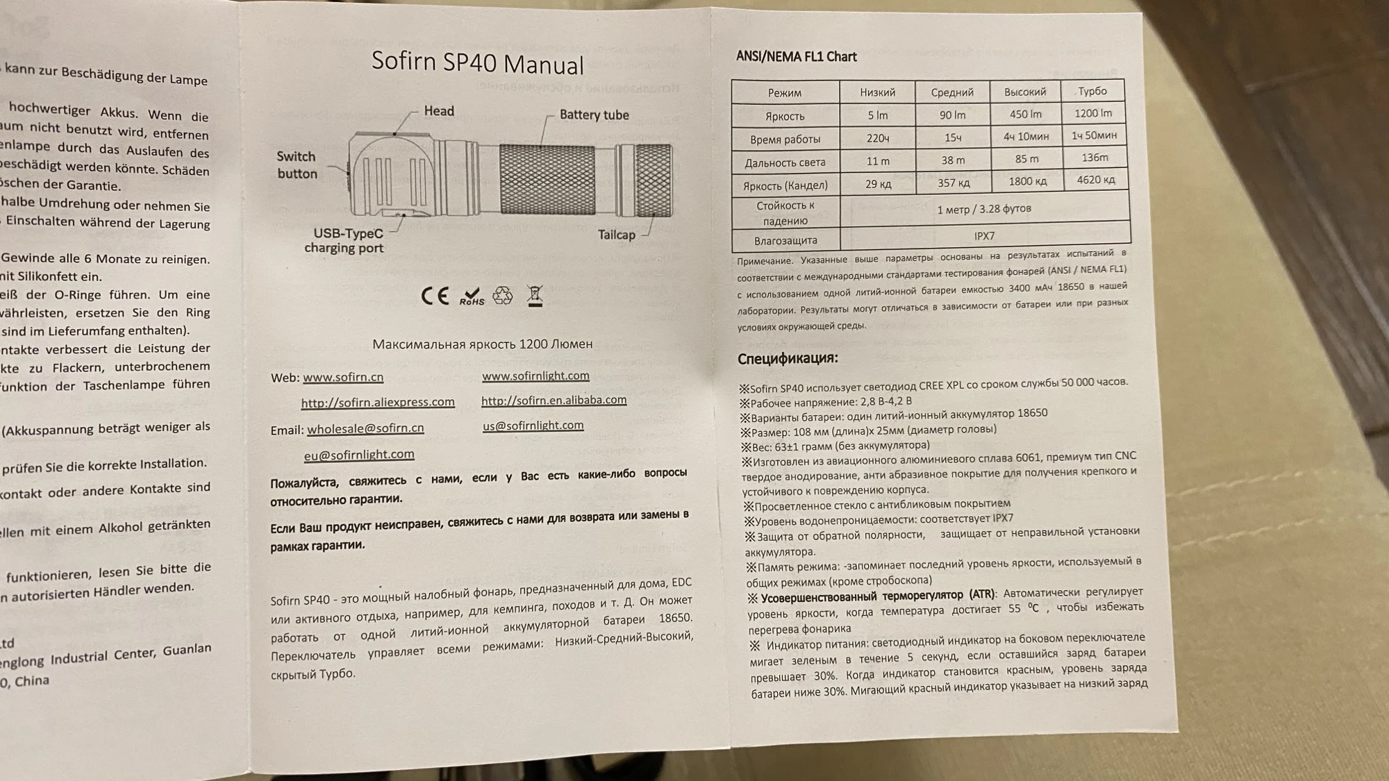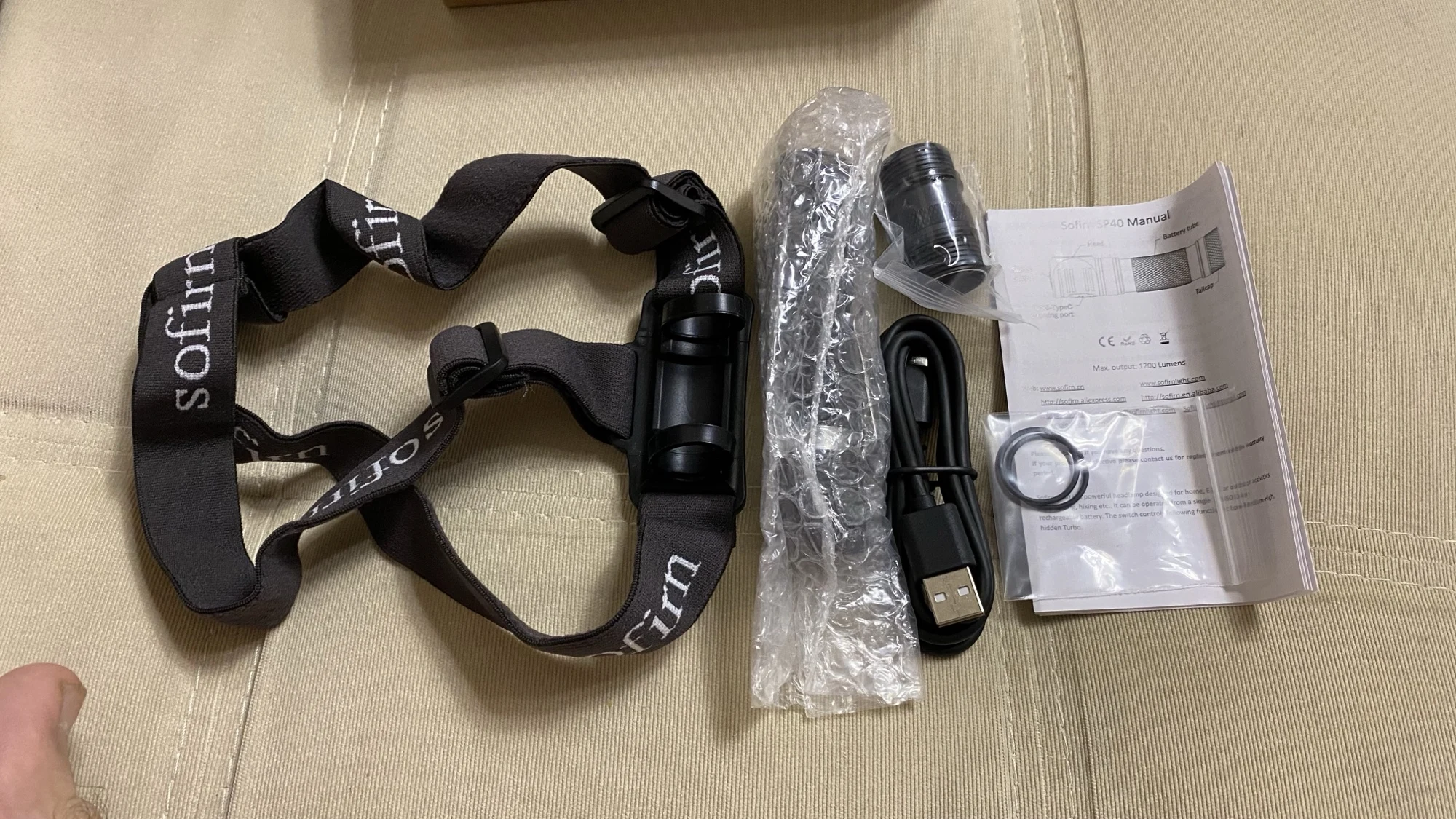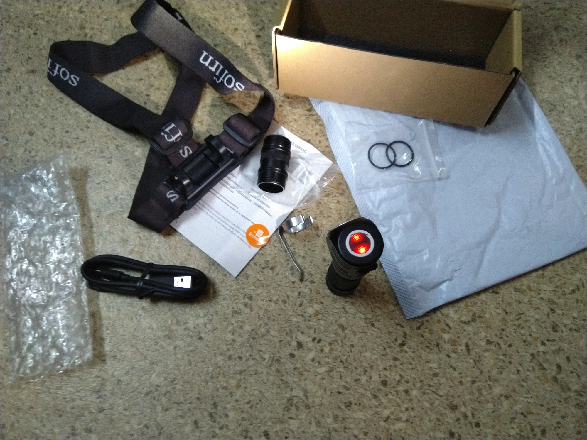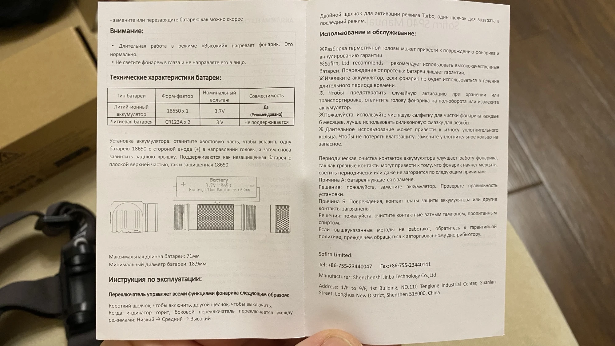 Около месяца до Прим.края. Пришёл СДЭКом. Всё норм. Всё как в описании . Батарейка около 30ти процентов заряда. Инструкция на русском есть. Разъем быстрой зарядки... В общем, фонарик понравился. Несколько регулировок переключения. Индикация зарядки и заряда есть. На голове сидит удобно. Легкий. Корпус алюминий. Буду тестить..