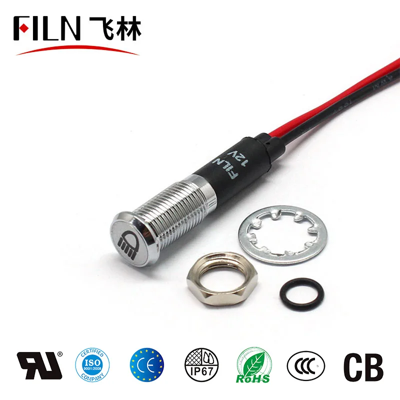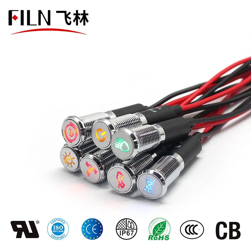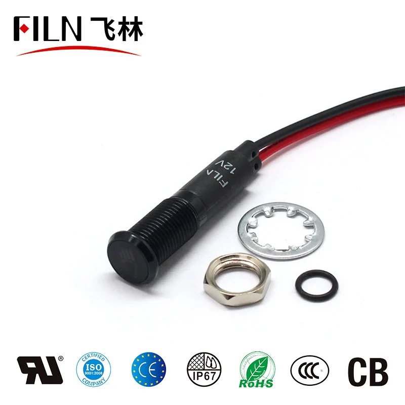 FILN 8 мм черный корпус светодиодный красный желтый белый синий зеленый светодиодный индикатор 12 В с кабелем 20 см