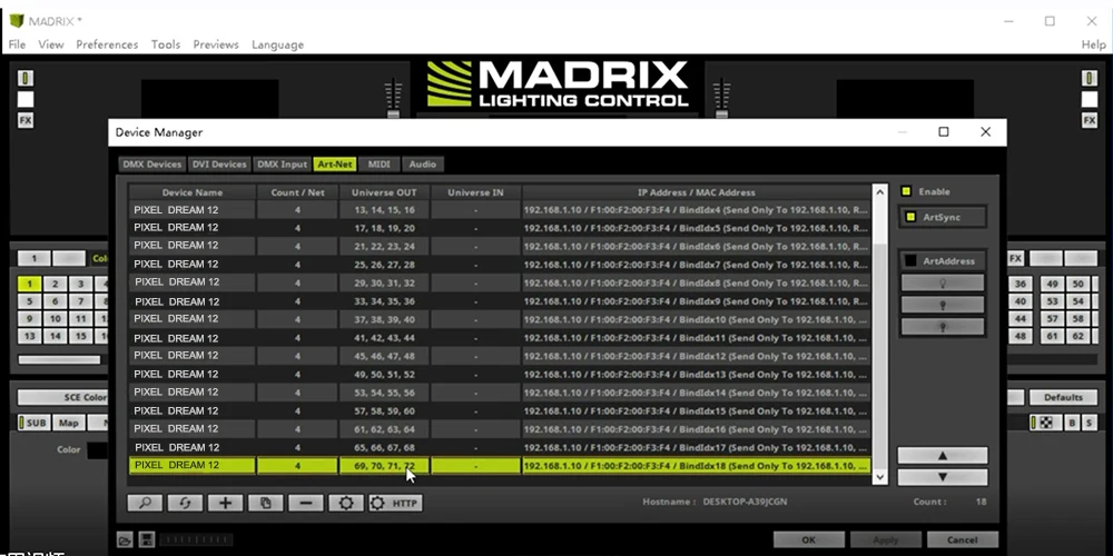 Application 1: MADRIX directly connect Controller online ARTNET preview debugging