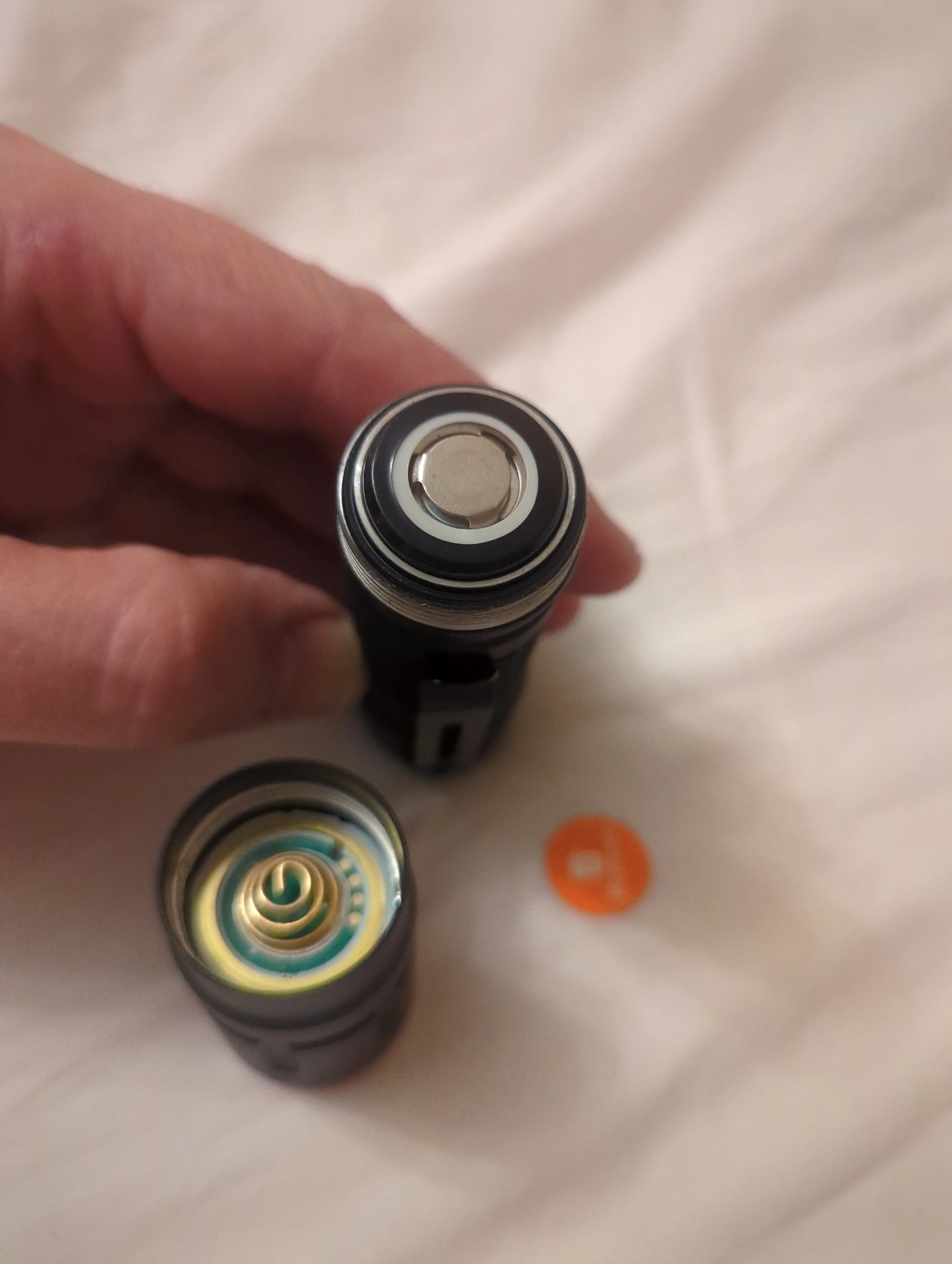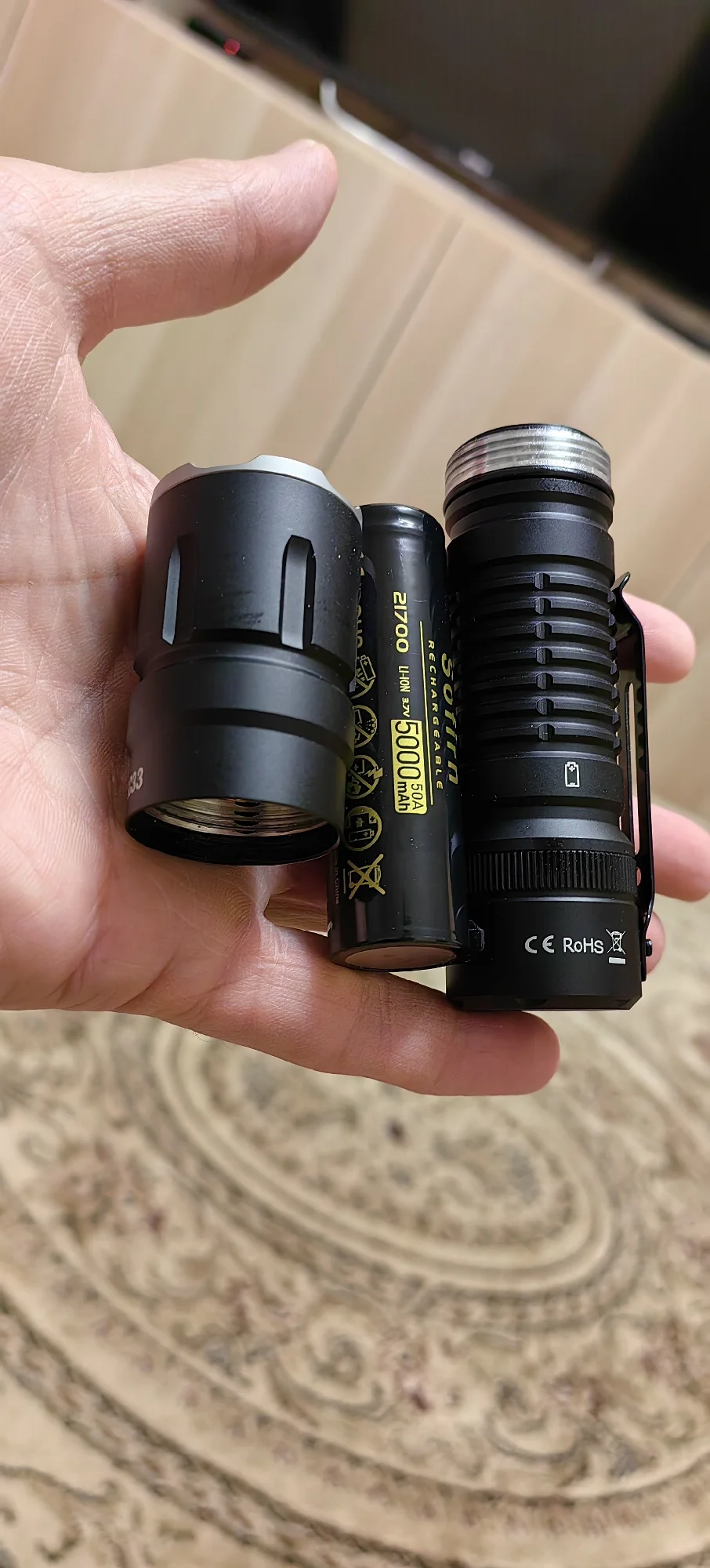 Это один из самых маленьких ярких фонарей на светодиоде XHP70.3. Если включить турбо режим и сверху на голову положить салфетку, то она начнёт дымится.Отдельно прикупил аккумы высокотоковые MOLICEL 21700.