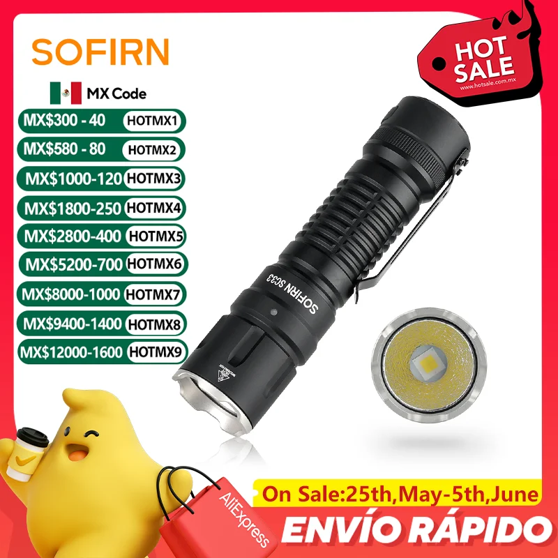 New Arrival Sofirn SC33 Cree XHP70.3 HI LED Flashlight 5200lm Powerful 21700...