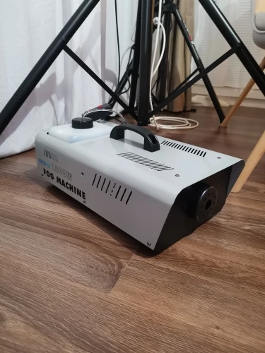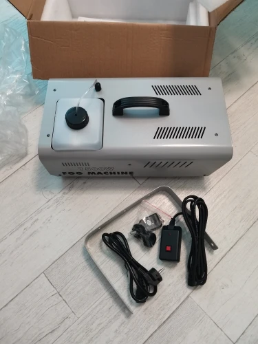 5 мая я её заказал, 26 мая её получил, доставил курьер, всё нормально! Дымит хорошо, проверил, я бы даже сказал отлично. Залил туда дым средней плотности, два парика даёшь, и хватает!) Если ещё два дать, то совсем уже ничего не видно. То есть для клуба 1 - 2 паровоза вполне достаточно, чтобы поддерживать световой эффект. машина отрабатывает как надо.