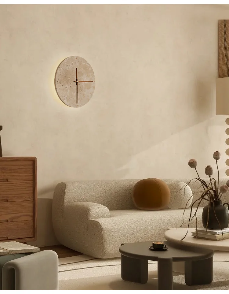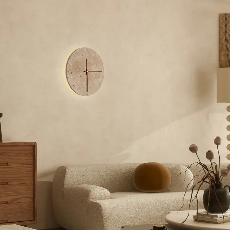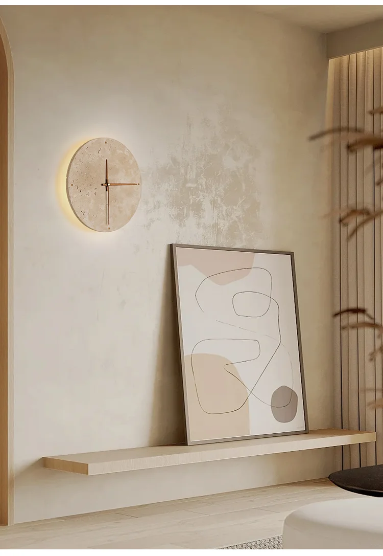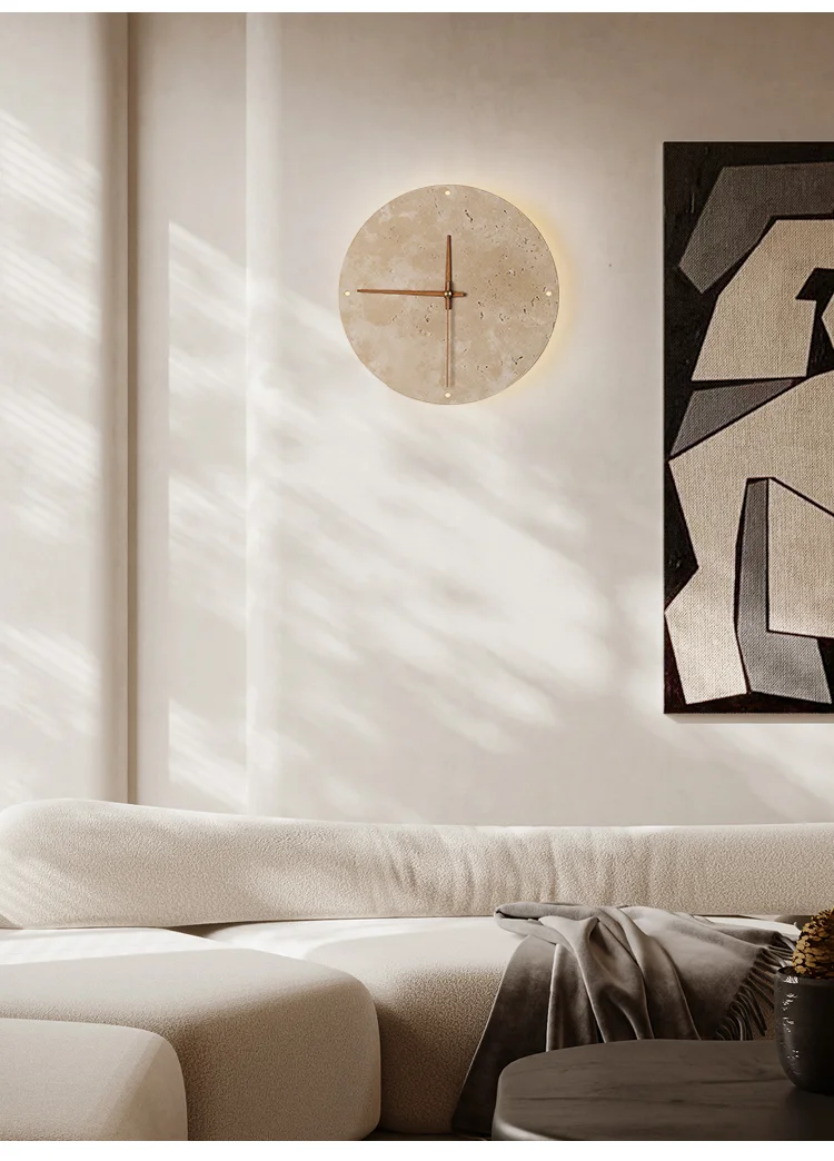 Vintage Round Shape Natural Stone Clock Art Decoration Wall Lamp Interior Wall...