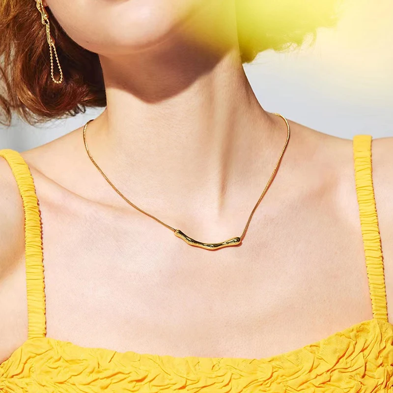 European and American Fashion Simple Stainless steel Gold Color Collarbone...