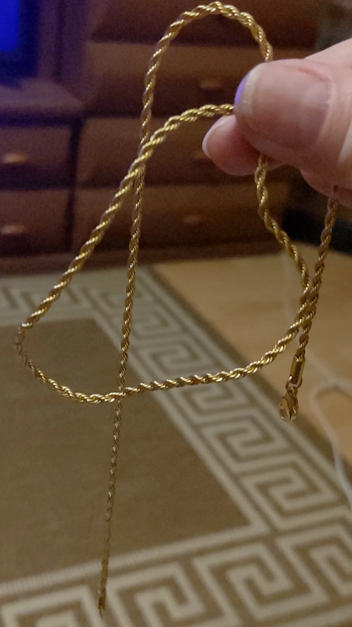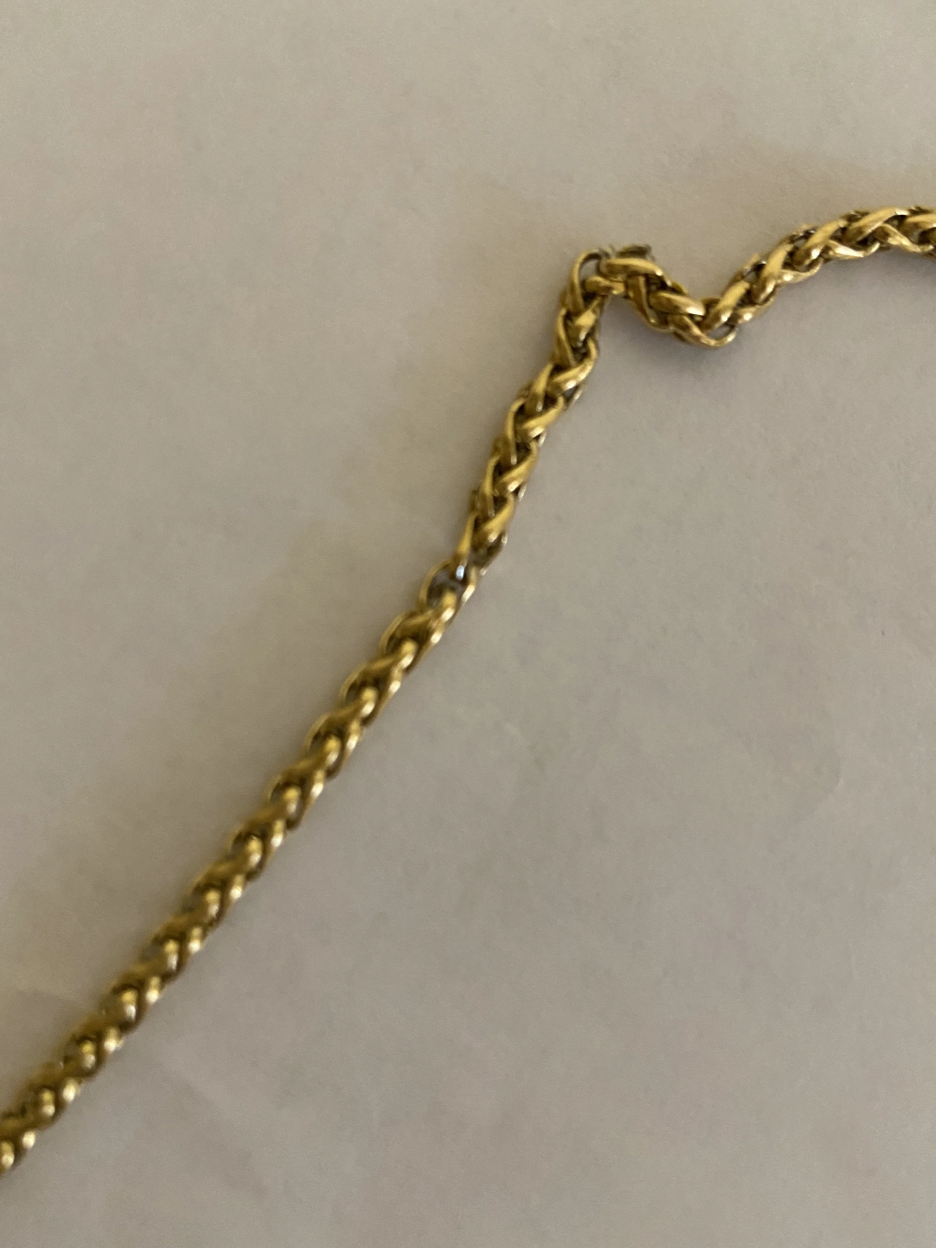 Пришла цепь с другим плетением, не то что заказывала. Деньги вернули по спору. В последнее время очень часто продавцы присылают не то что в заказе. Обидно, ждёшь столько времени, а приходит не то.