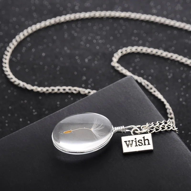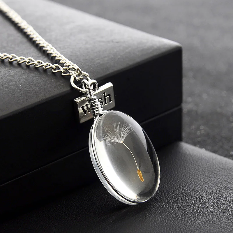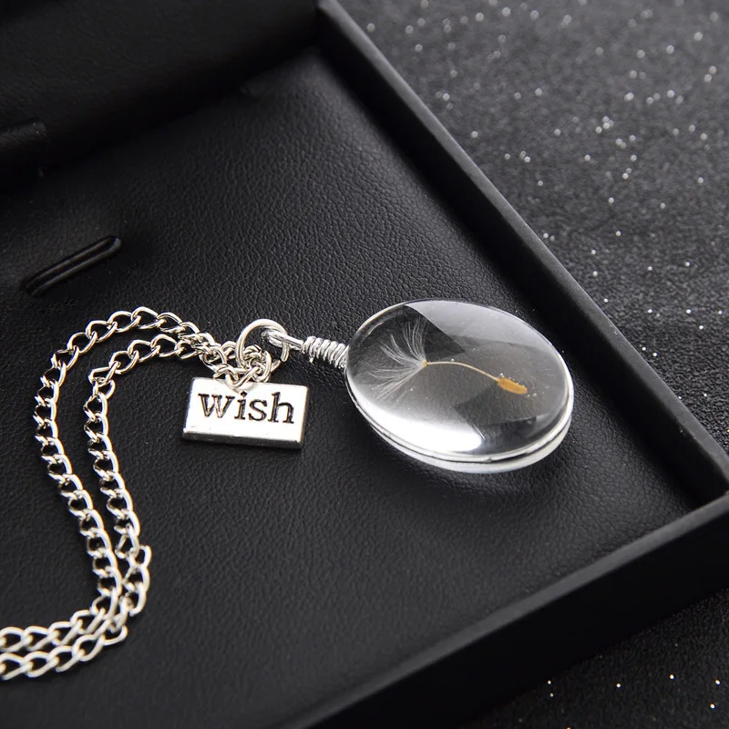 Crystal Glass Ball Pendant Natural Seed In Glass Long Necklace Make A Wish...