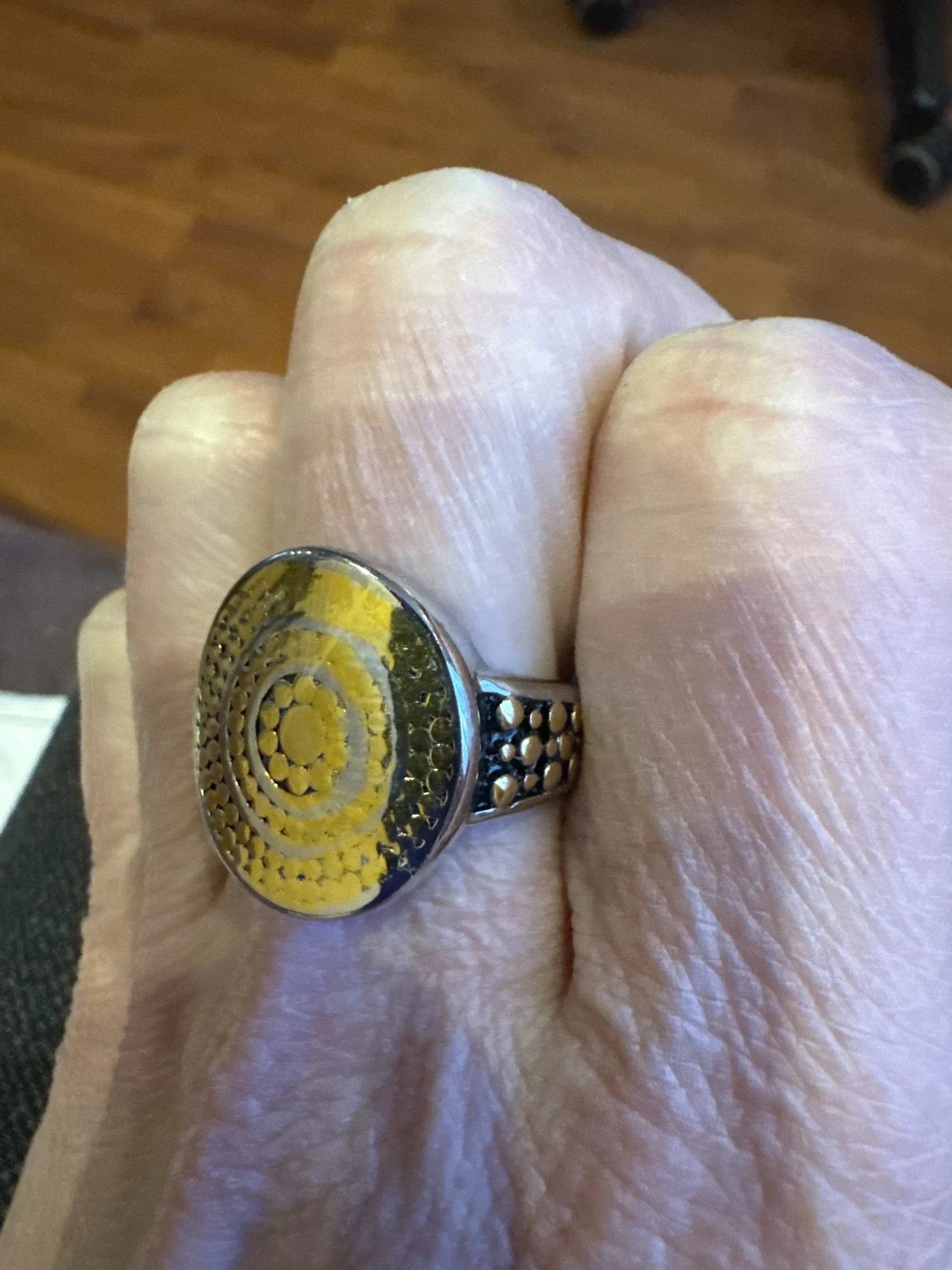 Красивое биколорное кольцо. Крепкие 5 звезд! Очень понравилось! 7 размер подошел на 17 российский. Спасибо!