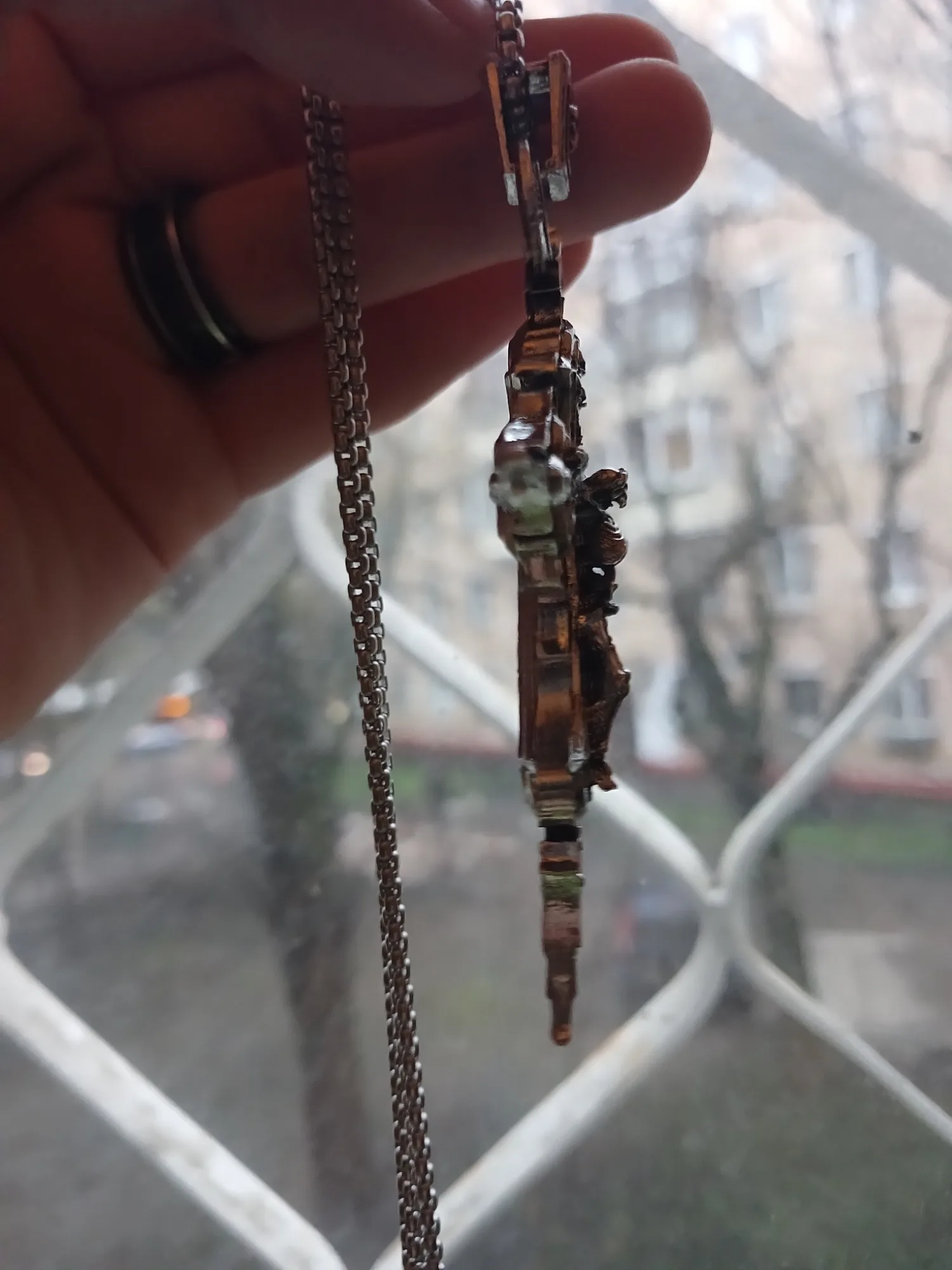 всё как на фото, фигурка достаточно детальная и не очень тяжёлая для носки на шее. доехало быстро, без повреждений. рекомендую