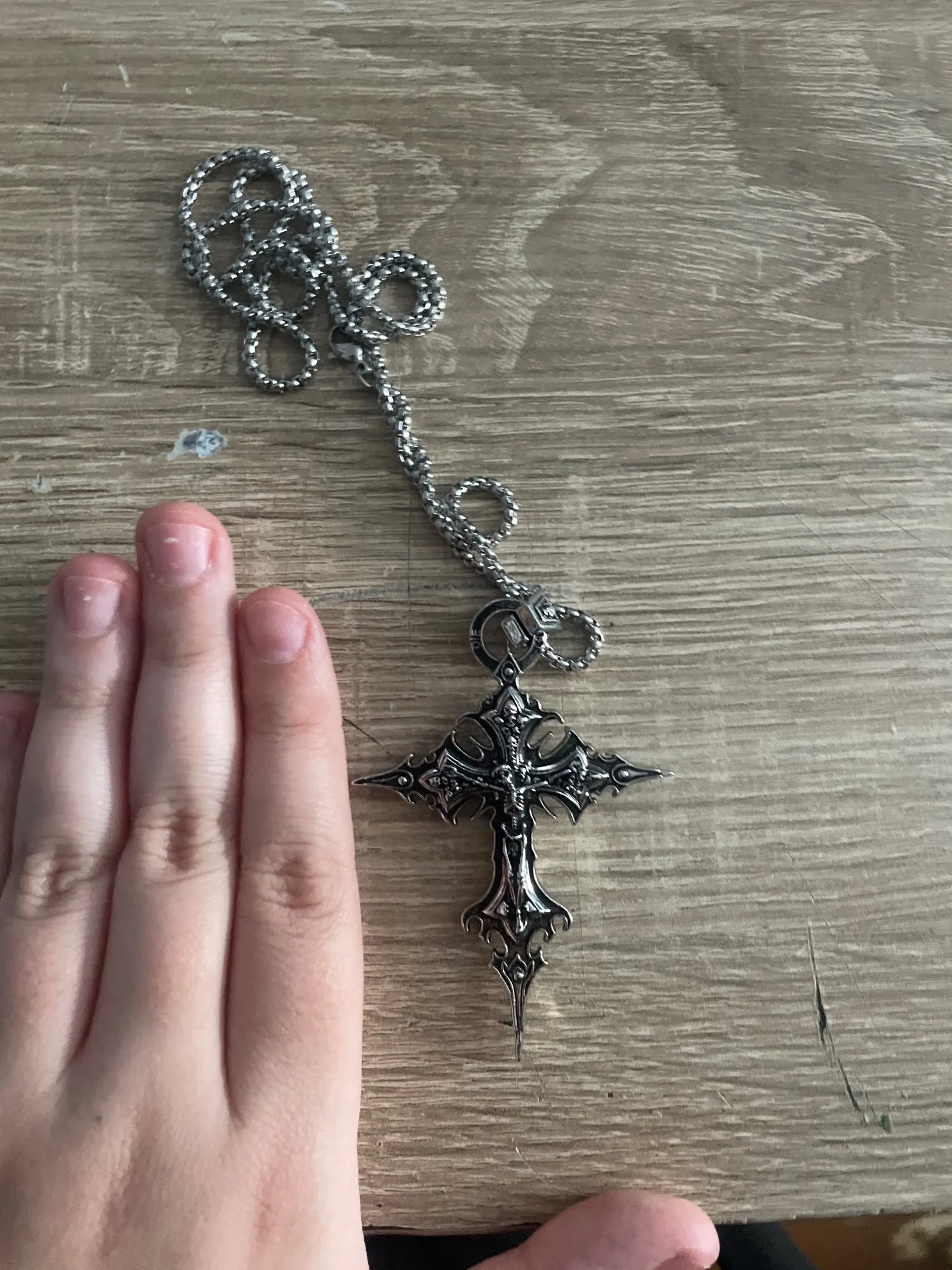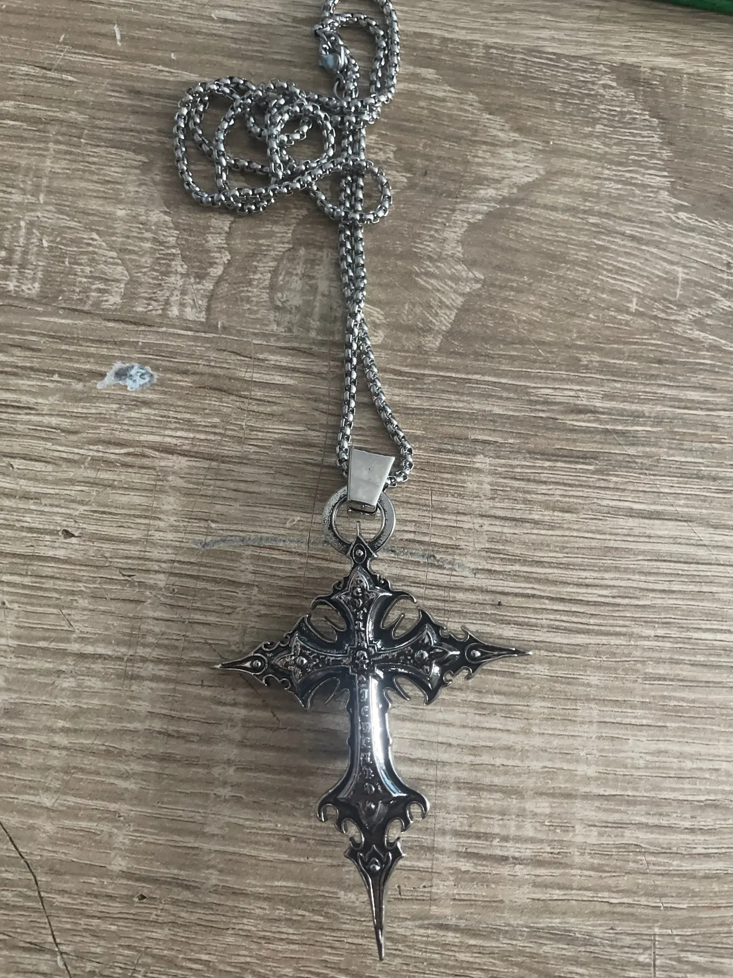 Необыкновенно, что вы видите, и детали продукта. Необычно, очень детализированный крест, цепочка очень красивая, а крест, его художественное создание, уникален