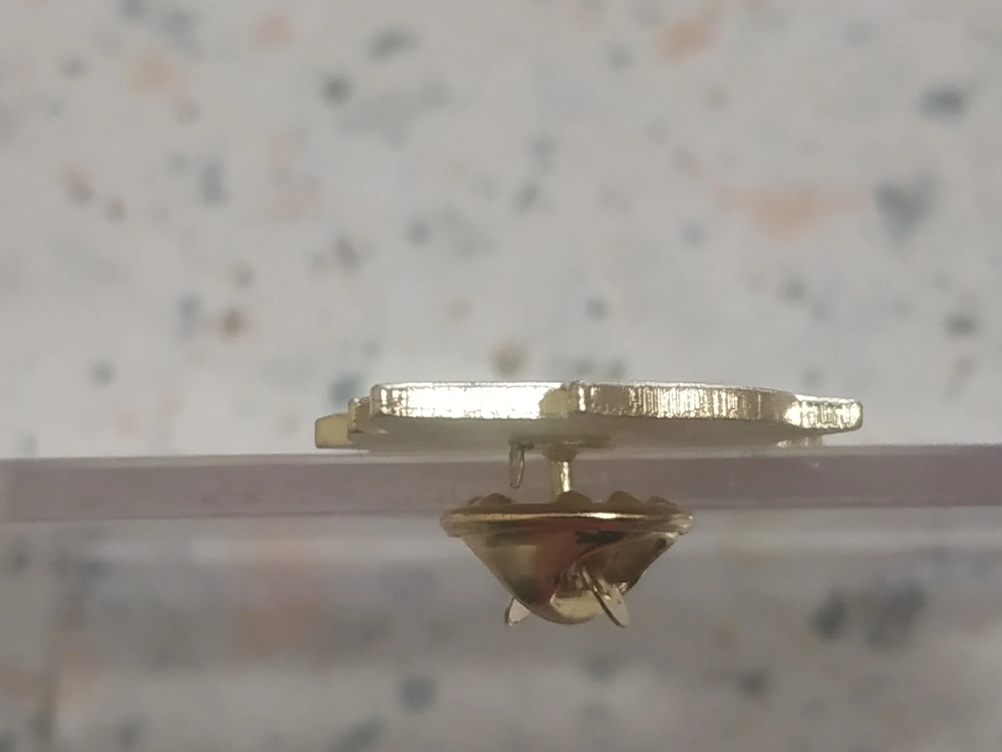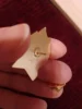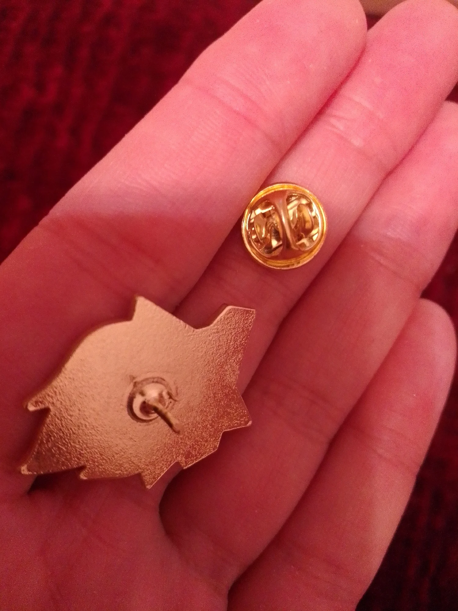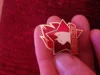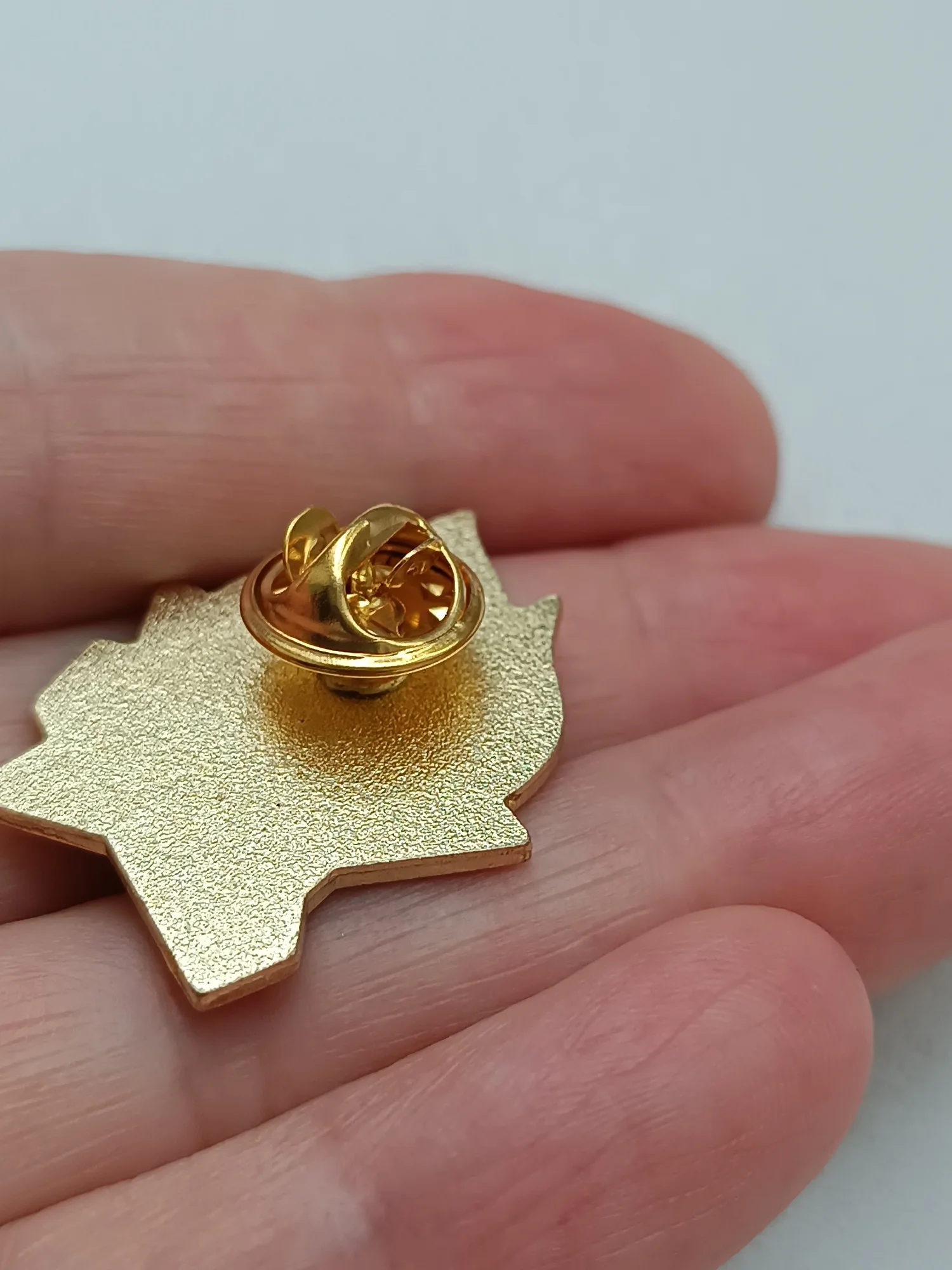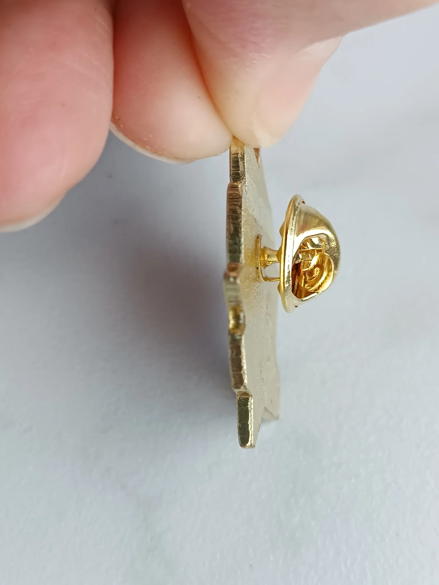 Значёк гвоздик. Металический (магнитится, железо), под эмаль лицевая сторона сплошняком залита прозрачным акрилом.👍 Лак под золото царапин нет.👍Тиснение штамп окрас👍Гвоздик длинноват. На футболке плотно не висит. Гвоздик может рандомно быть приварен от центра.