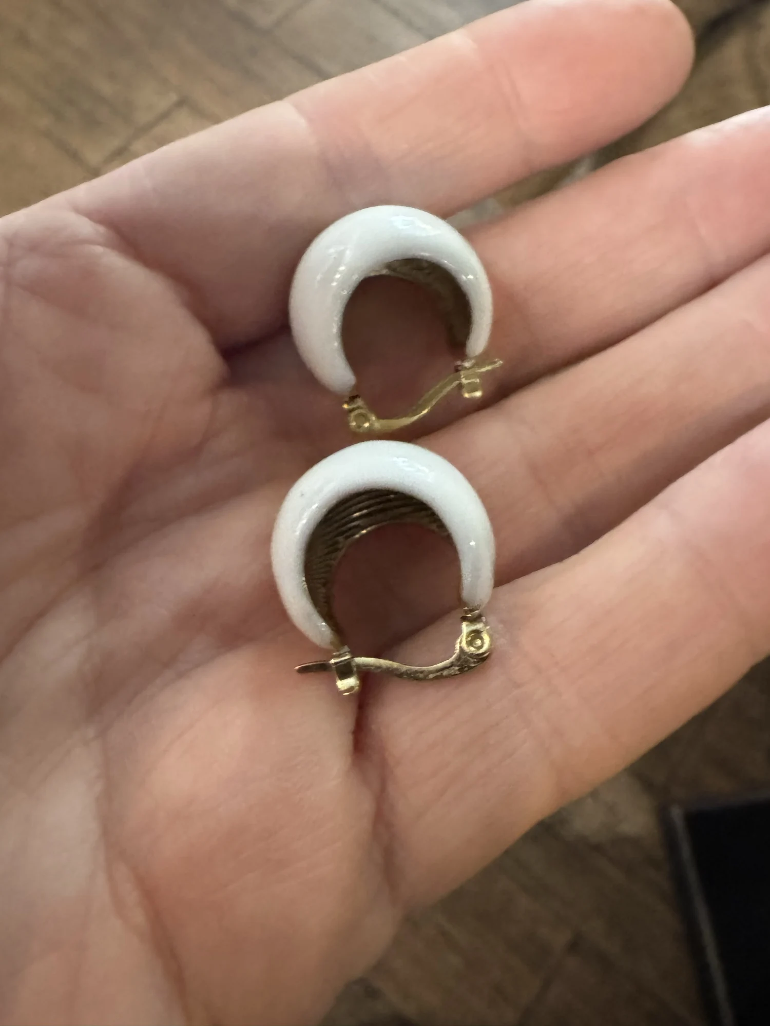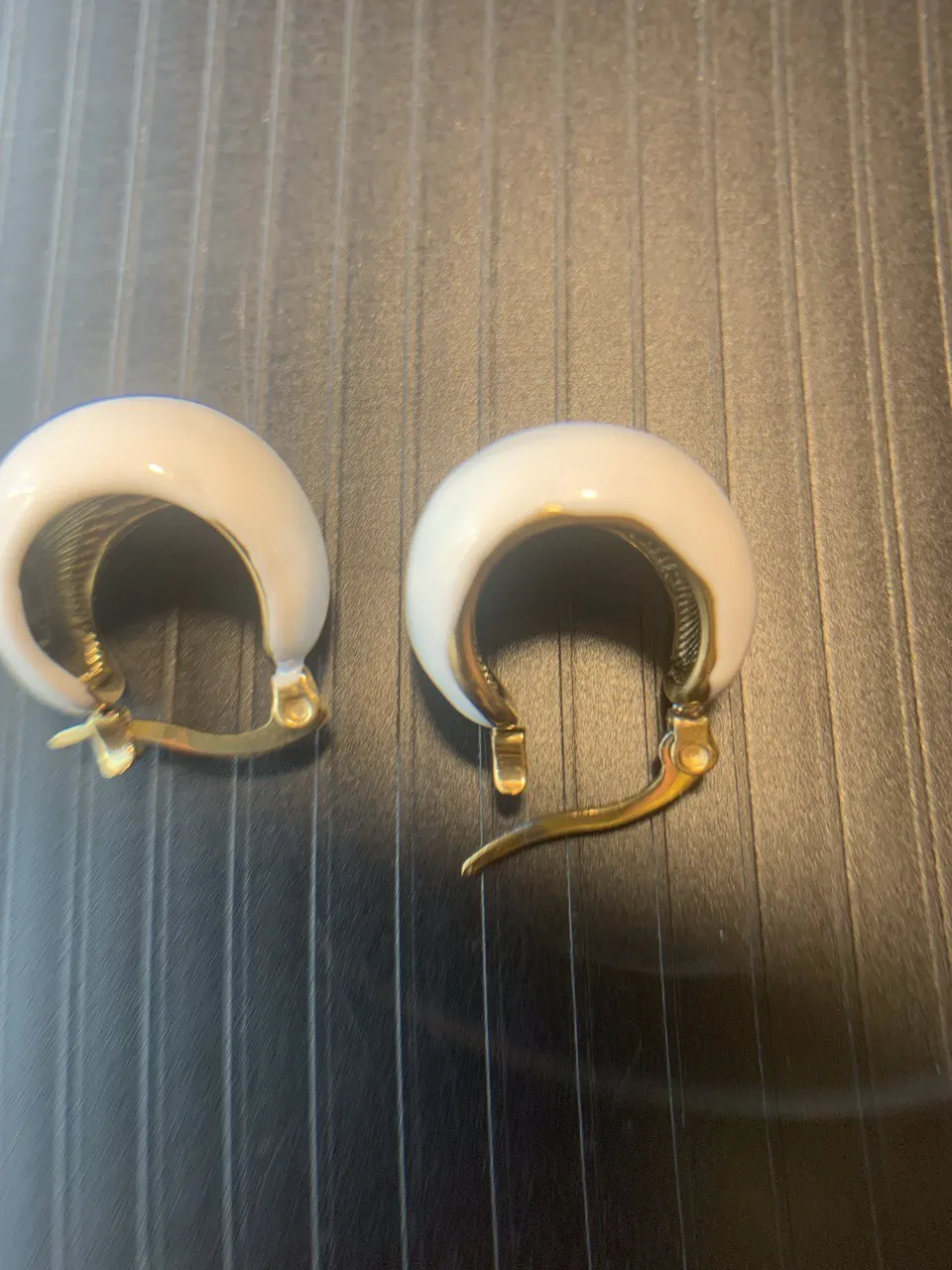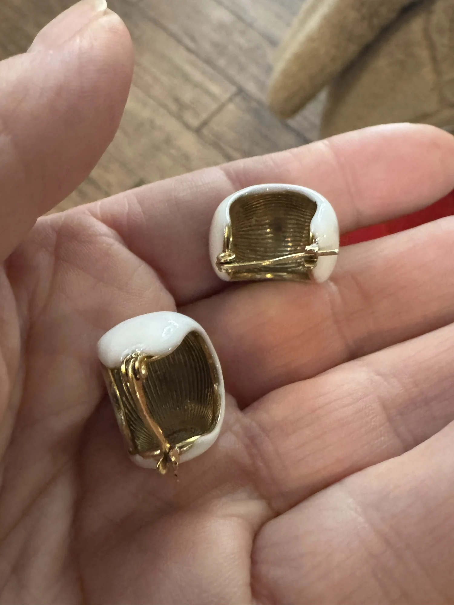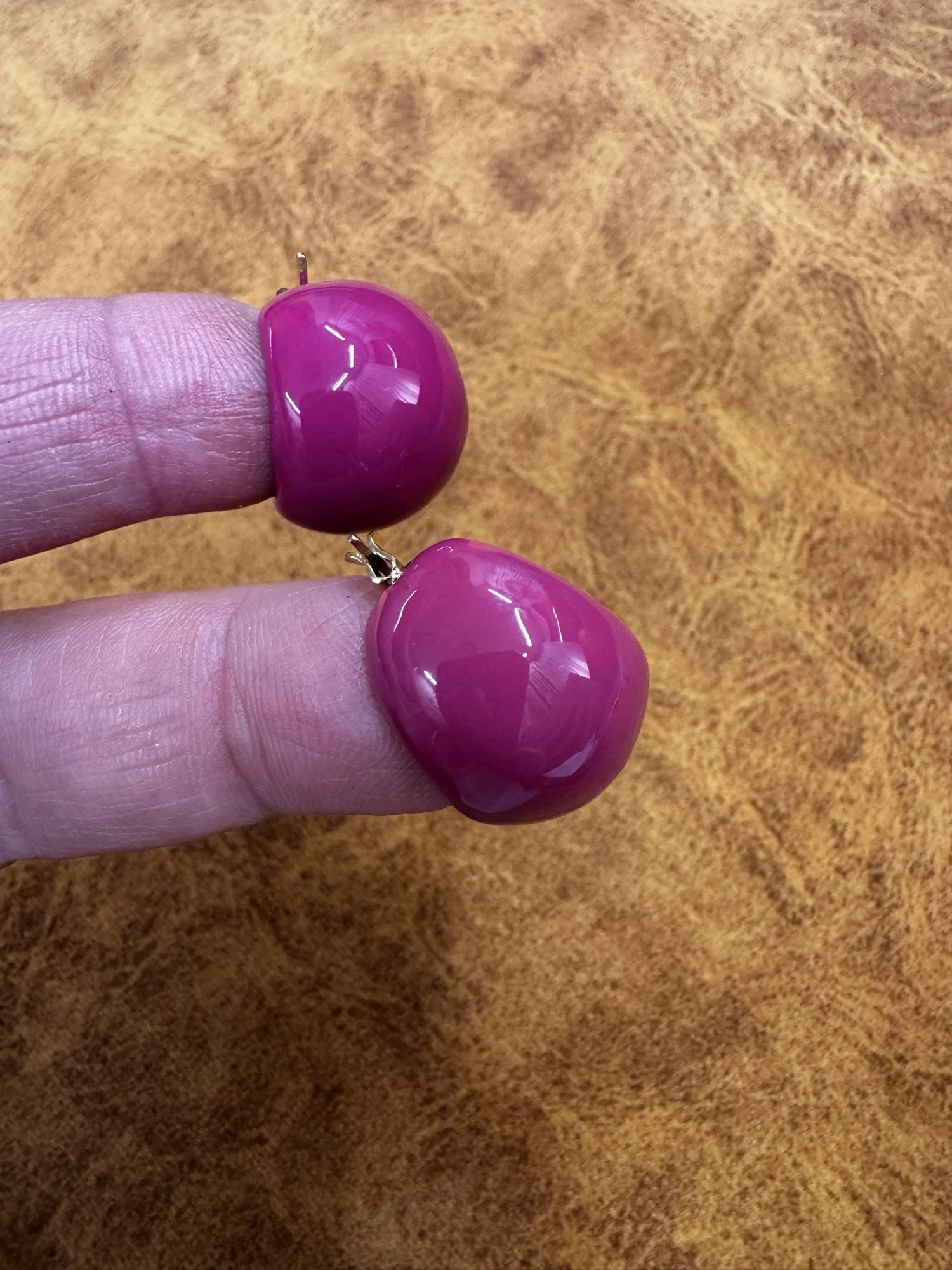 Серьги некачественные. Прокрас волнами. Плохо прокрашены с торца и на ухе это очень заметно.