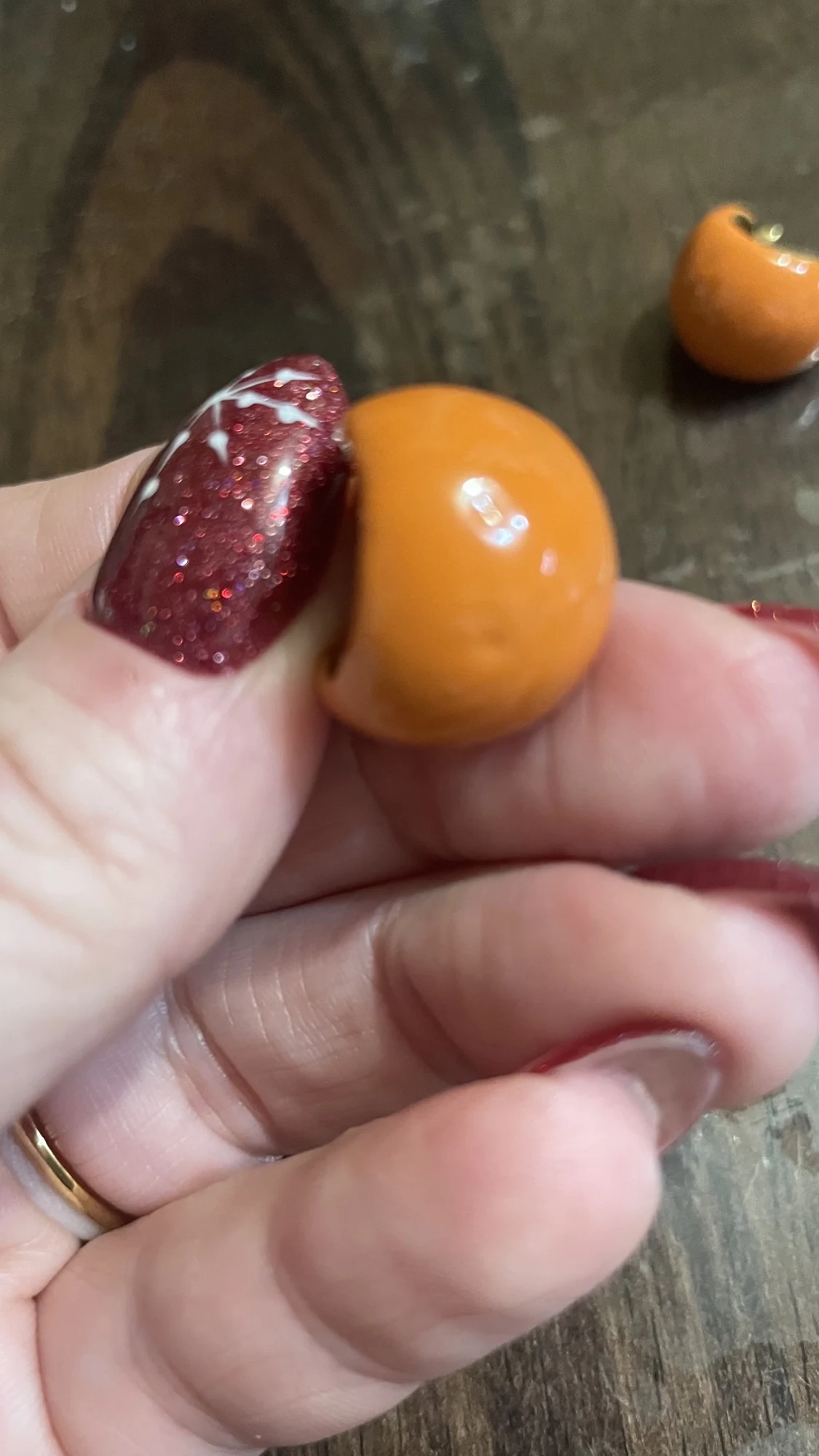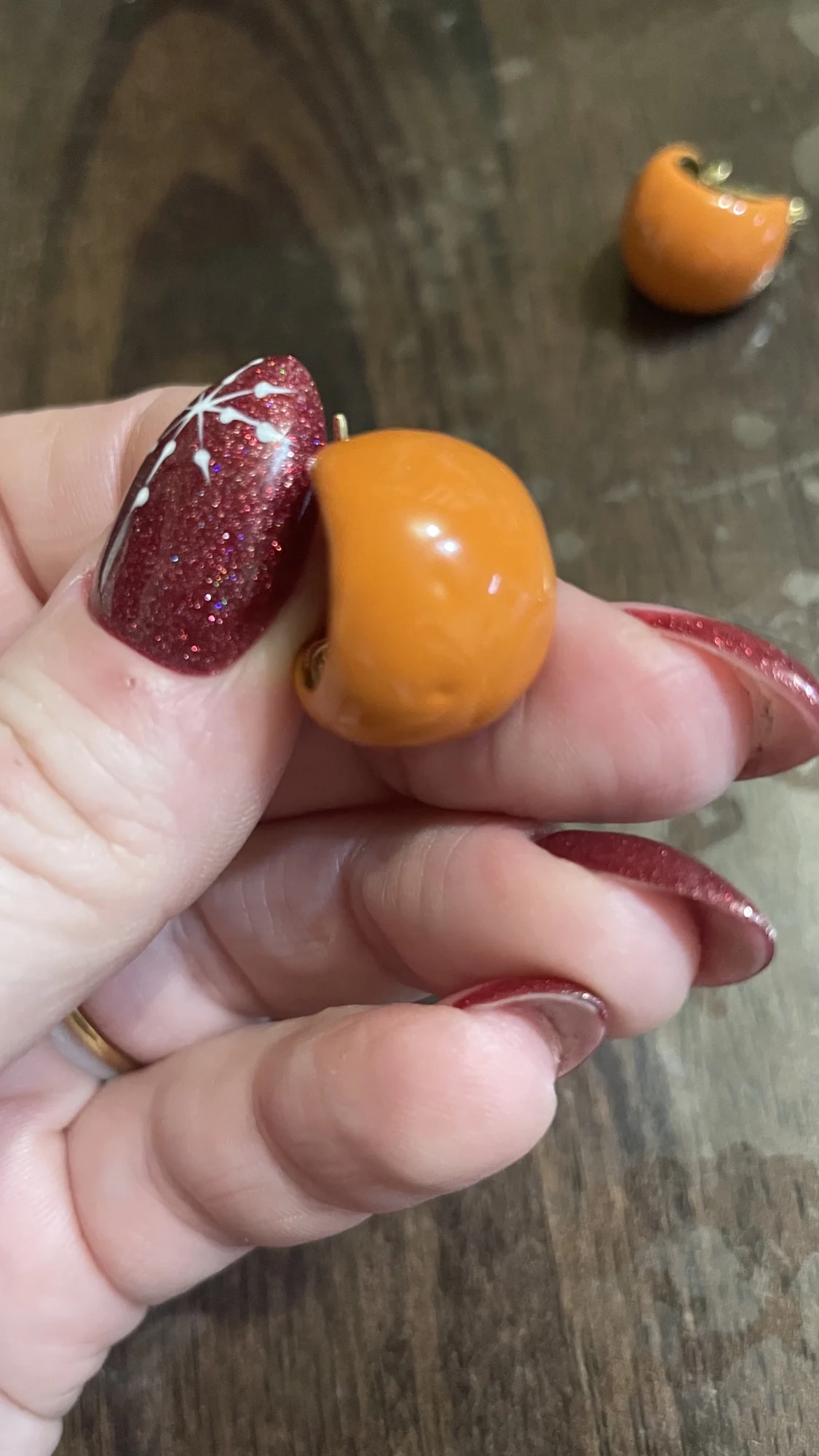 Цвет абсолютно другой, чем на фото. Не яркий сочный оранжевый, а грязно- коричнево-оранжевый. Мало того, что цвет иной, так и качество очень плохое - все серьги с потеками эмали, прокрас неровный, неравномерный. Не стоят абсолютно своих денег, но продавец видимо жаден - держит цену, а многие продолжают покупать у него, так как ранее репутация магазина "коричневых пакетиков" была непогрешима. К сожалению, в данном магазине сейчас уже не редкость - купить товар не надлежащего качества или вообще могут не прислать заказанное. Поэтому многие распаковку снимают на видео от этого магазина. Буду отныне покупать в других магазинах, благо их на Али выбор большой. А продавцу желаю вернуть себе былую репутацию, ведь как известно - это не купишь, а испортить так легко и быстро можно