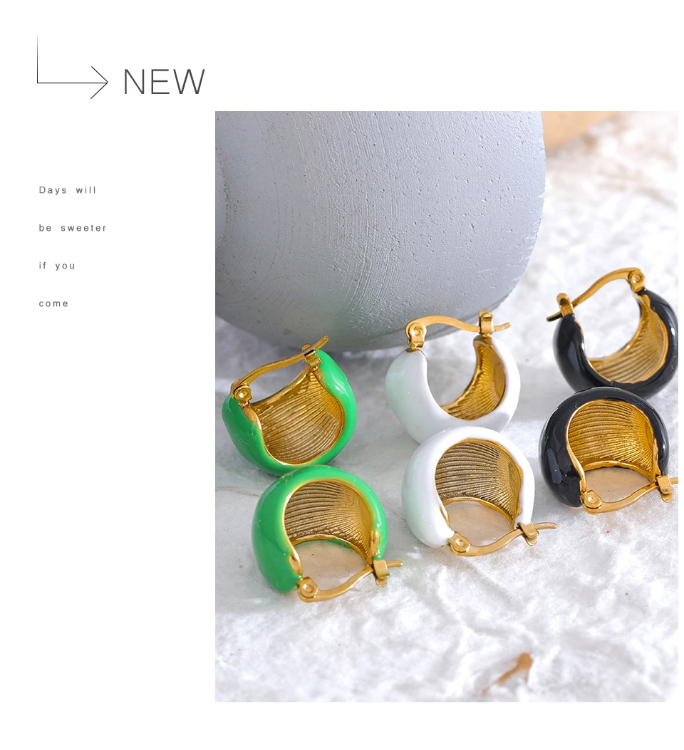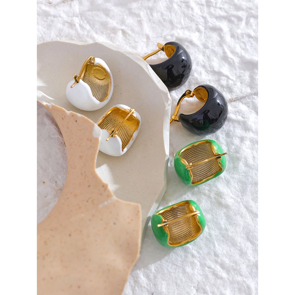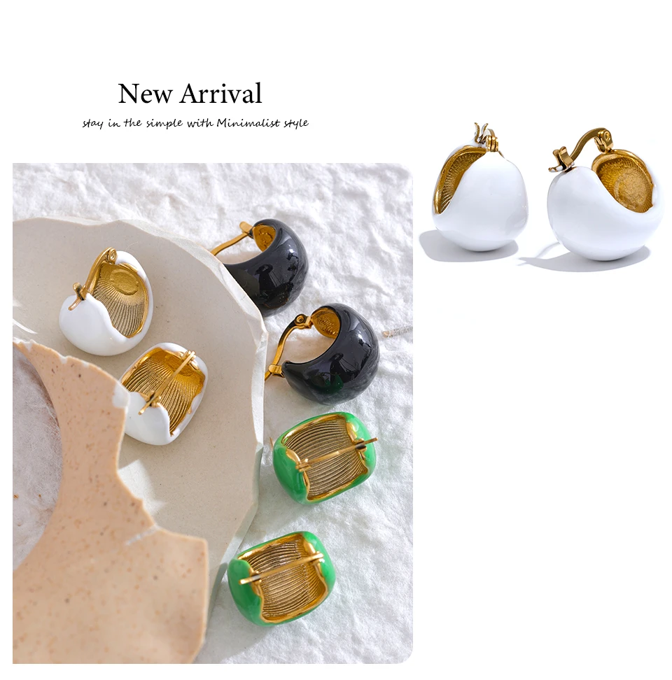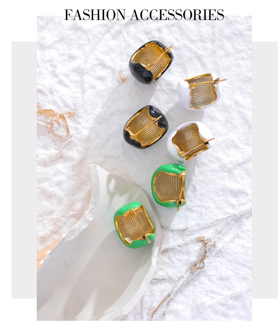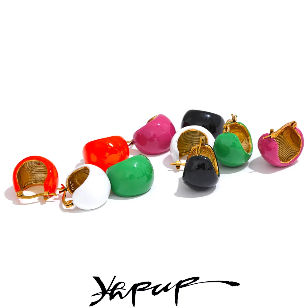 Yhpup Fashion Black White Green Enamel Geometric Stainless Steel Chunky Round...