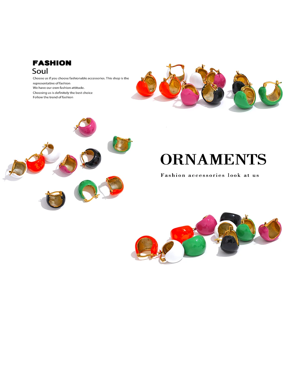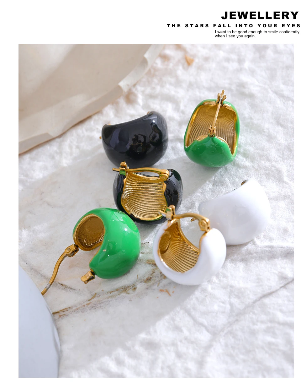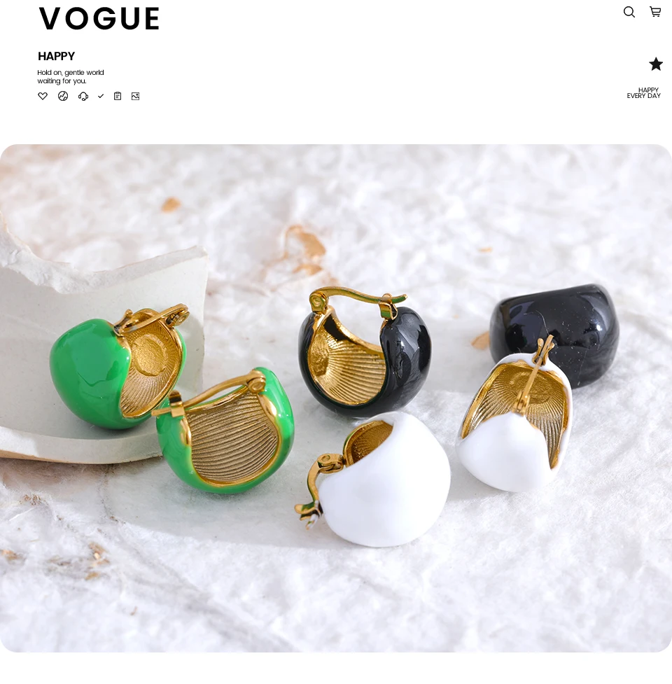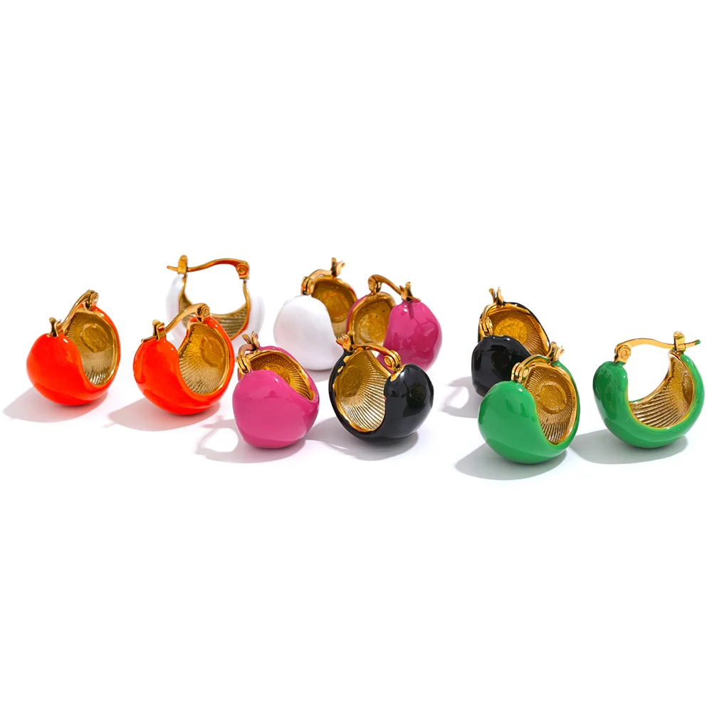 Yhpup Fashion Black White Green Enamel Geometric Stainless Steel Chunky Round...