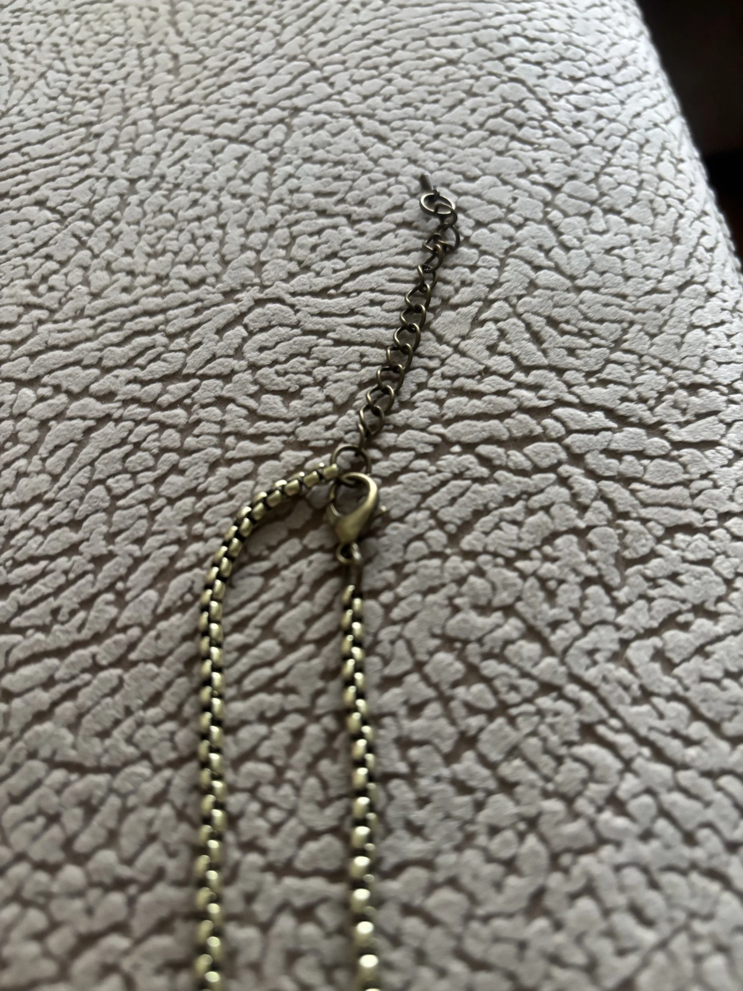 Цепочка и кулон понравились.думала ,что будет больше диаметр кулона.Спасибо продавцу.Жалко что кнопок под бронзу не такой большой выбор.заказала пока только к кулону 2 вида кнопочек.Цвет на удлинителе цепочки немного выбивается (видно на фото)