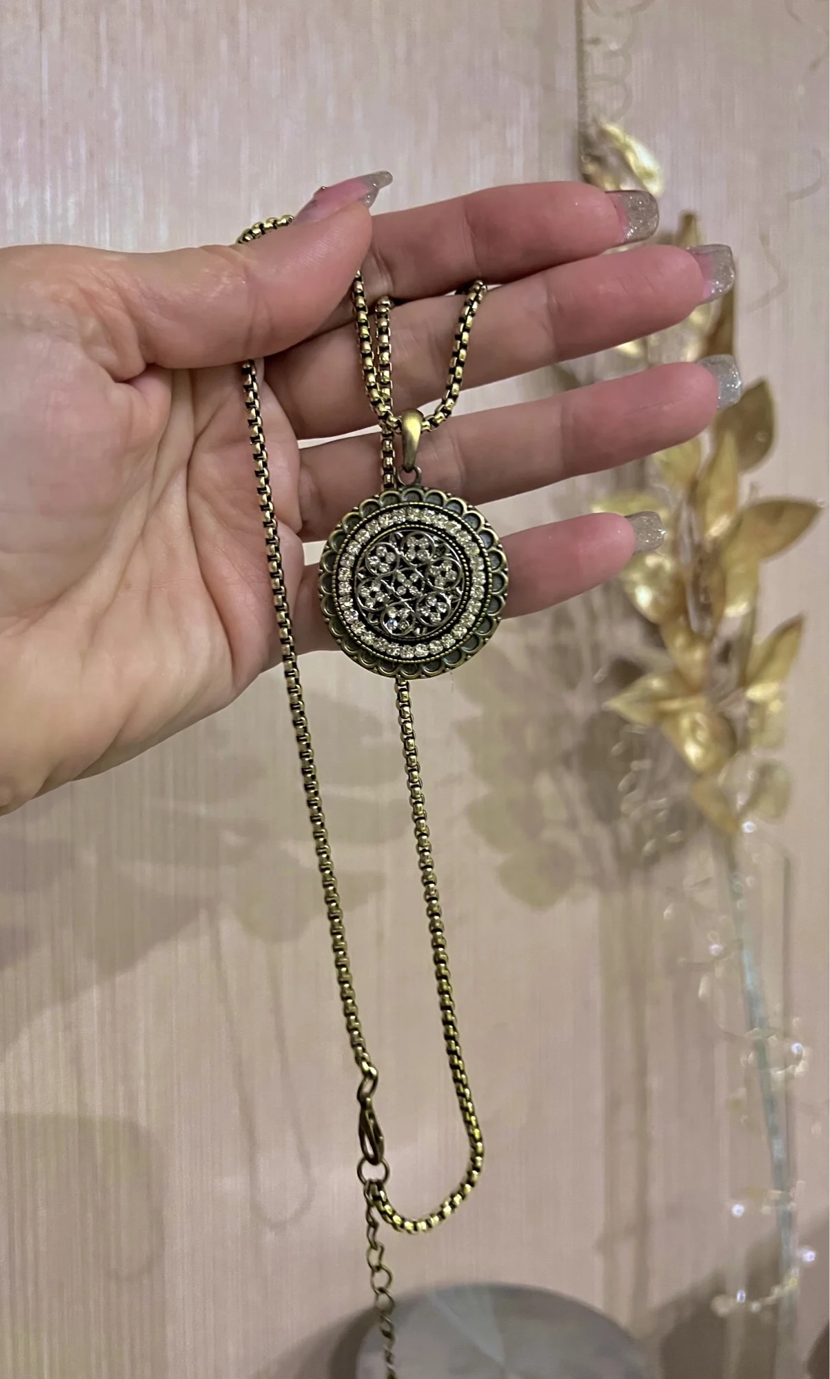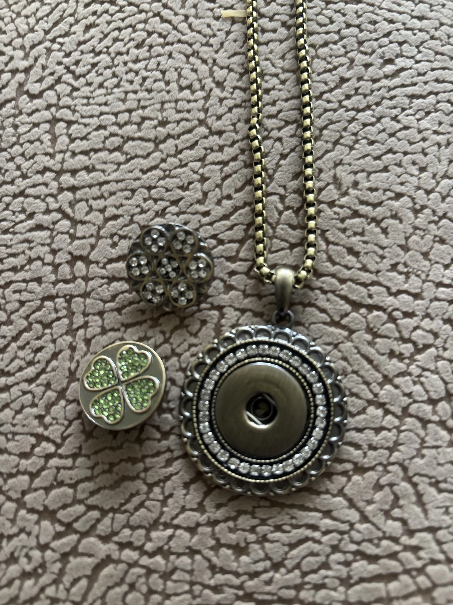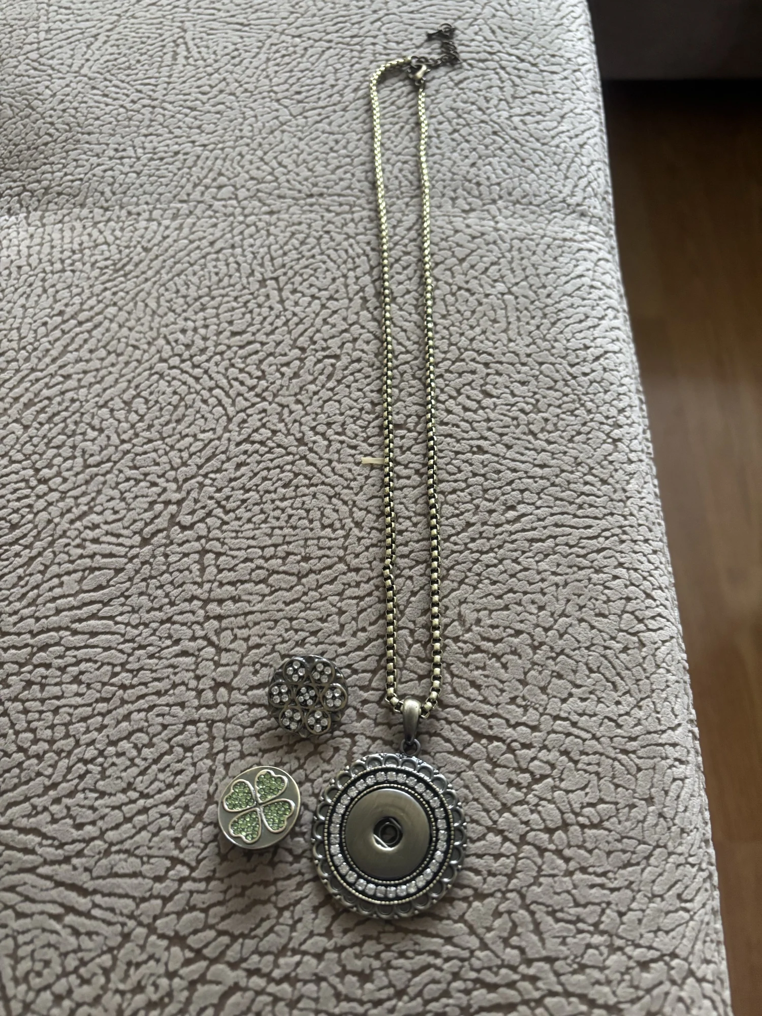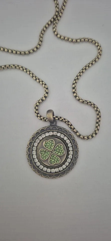 Красивая цепь с кулоном. . Можно менять кнопки. Так же кулон снимается и цепь можно носить с другими кулонами. Пока купила только клевер. И в паре это смотрится великолепно. Блестит на дневном свете. Оттенок метала благородный под винтаж