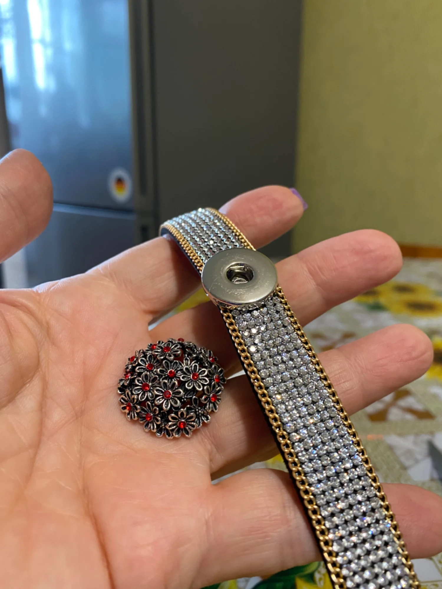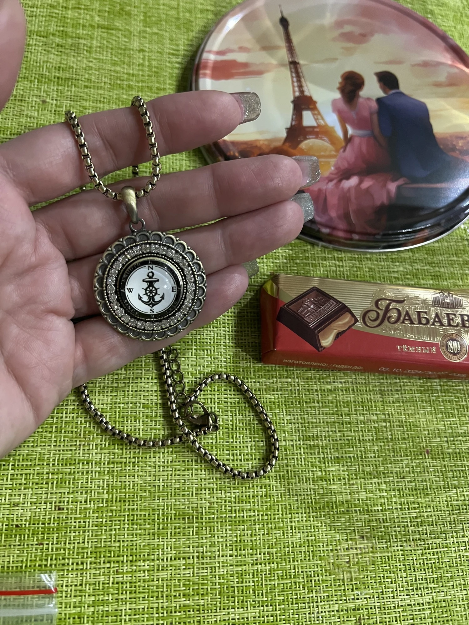 Oтличный кулон. Симпатичная цепочка! Немного хрупкий с обратной стороны. Будьте осторожны, когда вынемаете кнопку. Смотрится очень эффектно с эффектными кнопками! Пришло очень быстро!irina n. 8 мая 2025