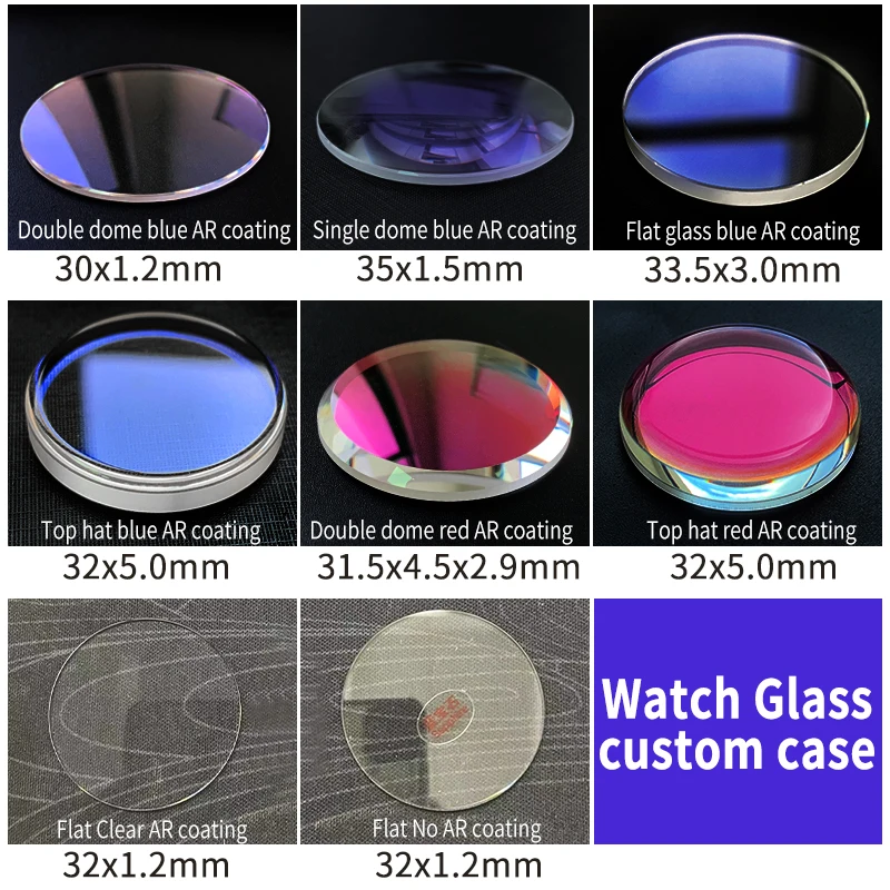 Custom Sapphire Crystal Clear Blue AR Coated Watch Glass Lens Parts Flat Single...