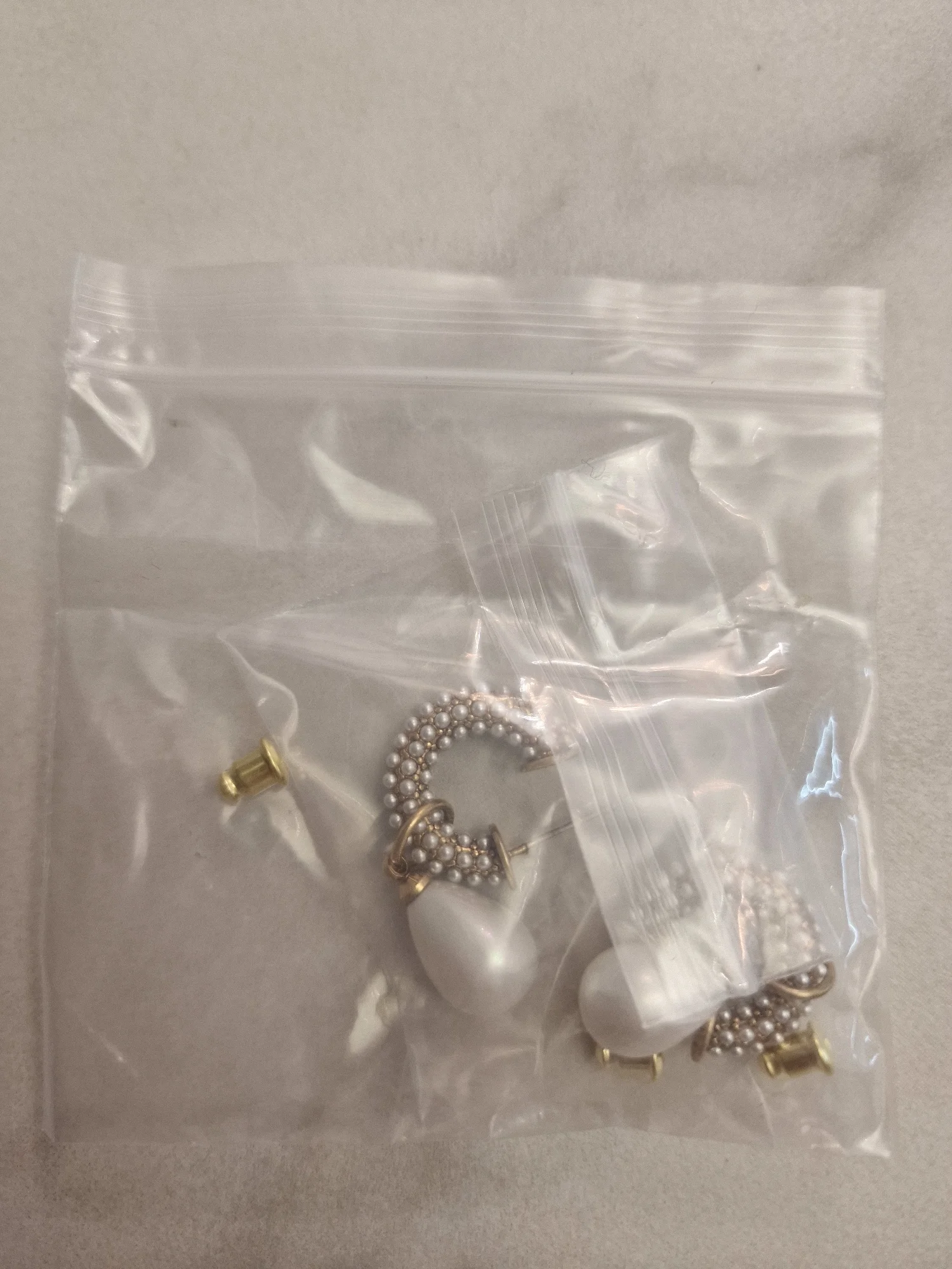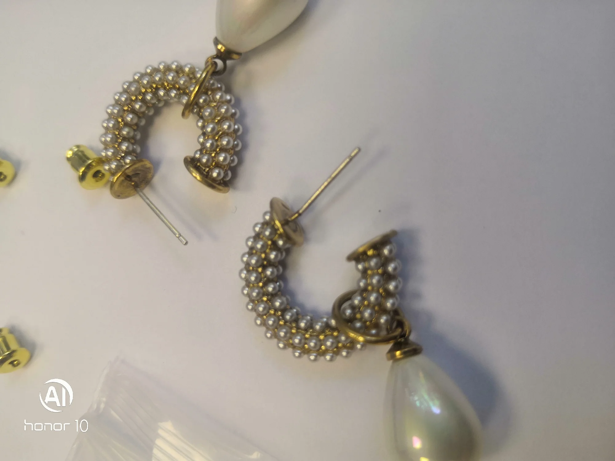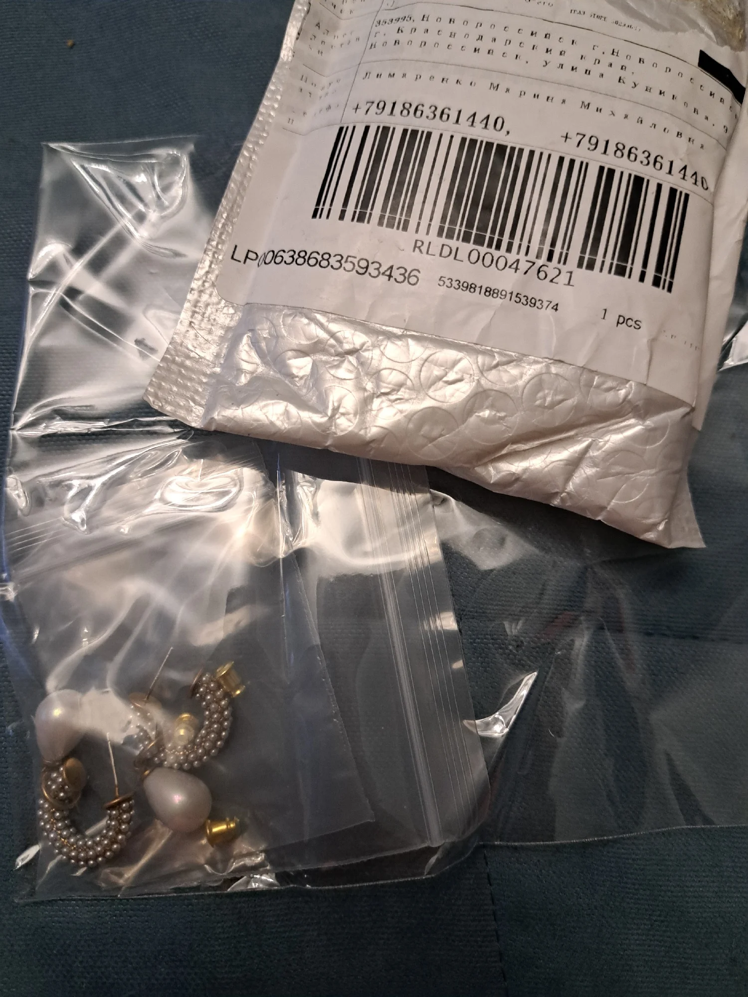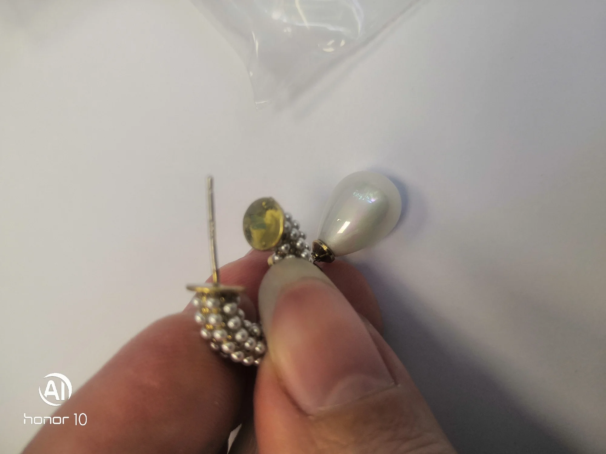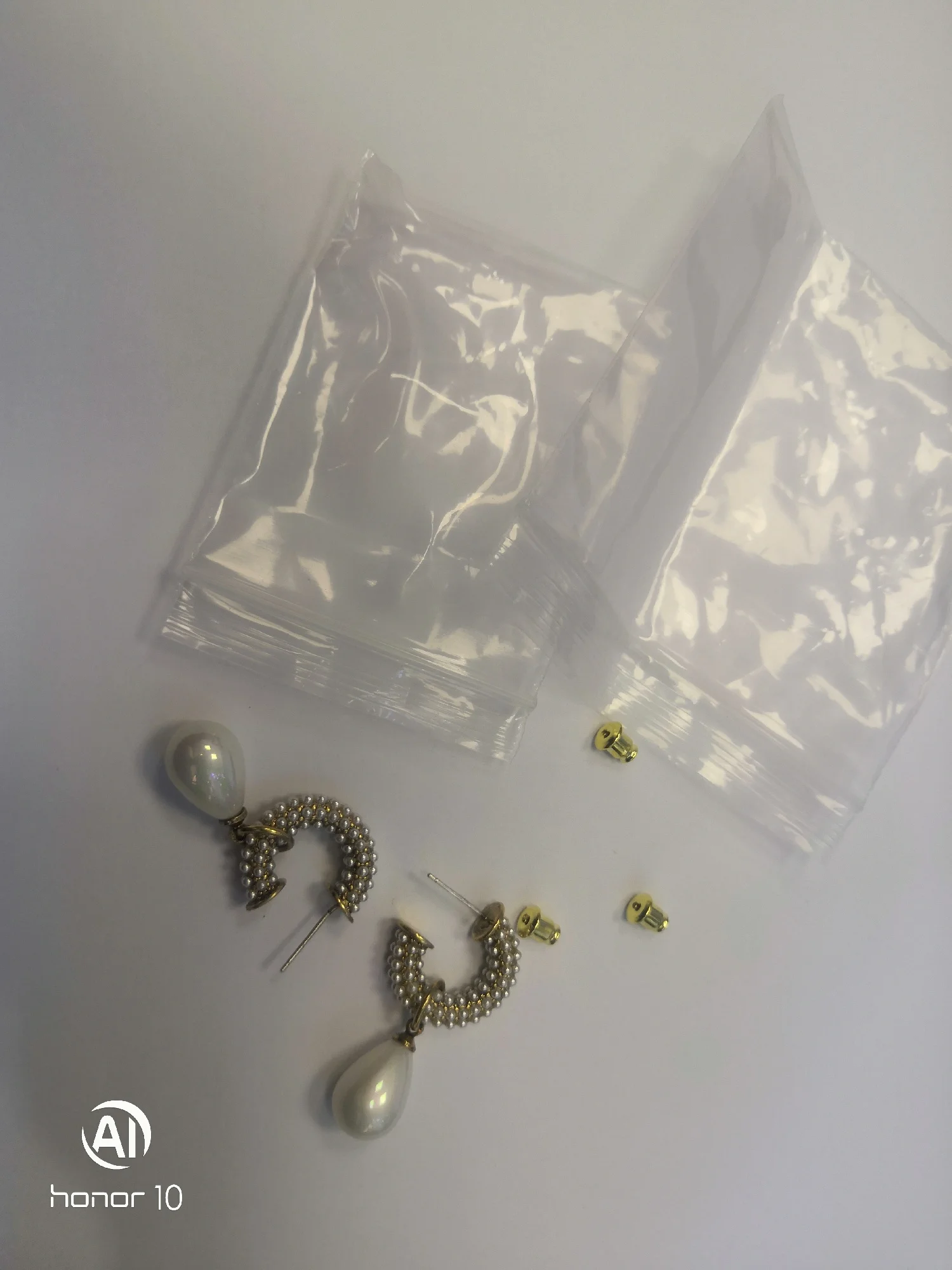 Всё пришло целое в совместной посылке. Упаковано отлично. Каждая серёжка в своём пакете. Мне очень понравились. При желании жемчужину можно снять. Один гвоздик кривенький(на фото видно) и на них что-то написано или нацарапано. К сожалению разглядеть не смогла.