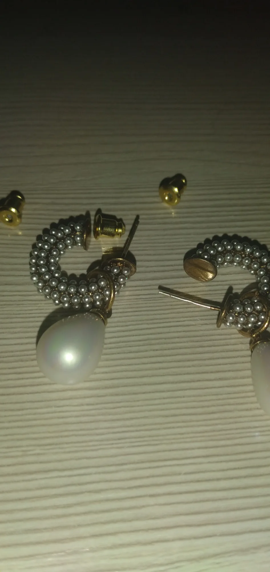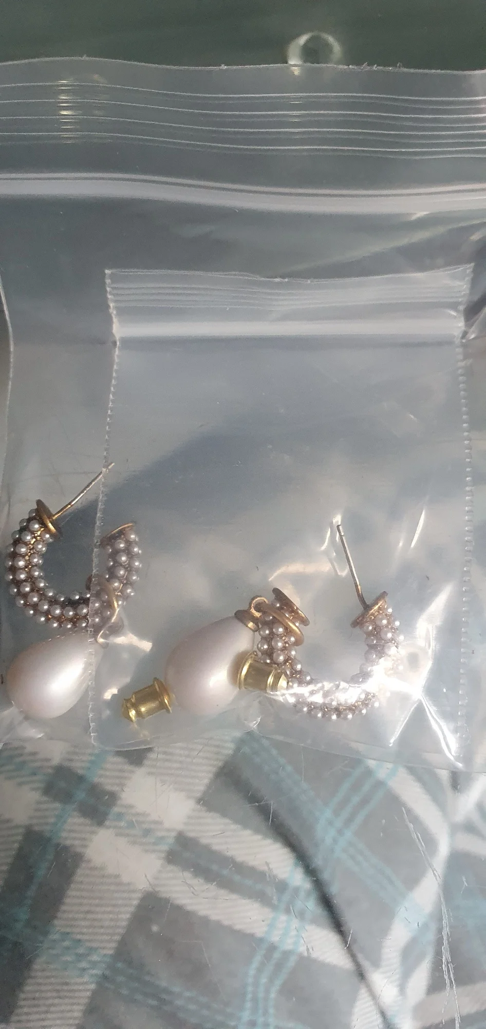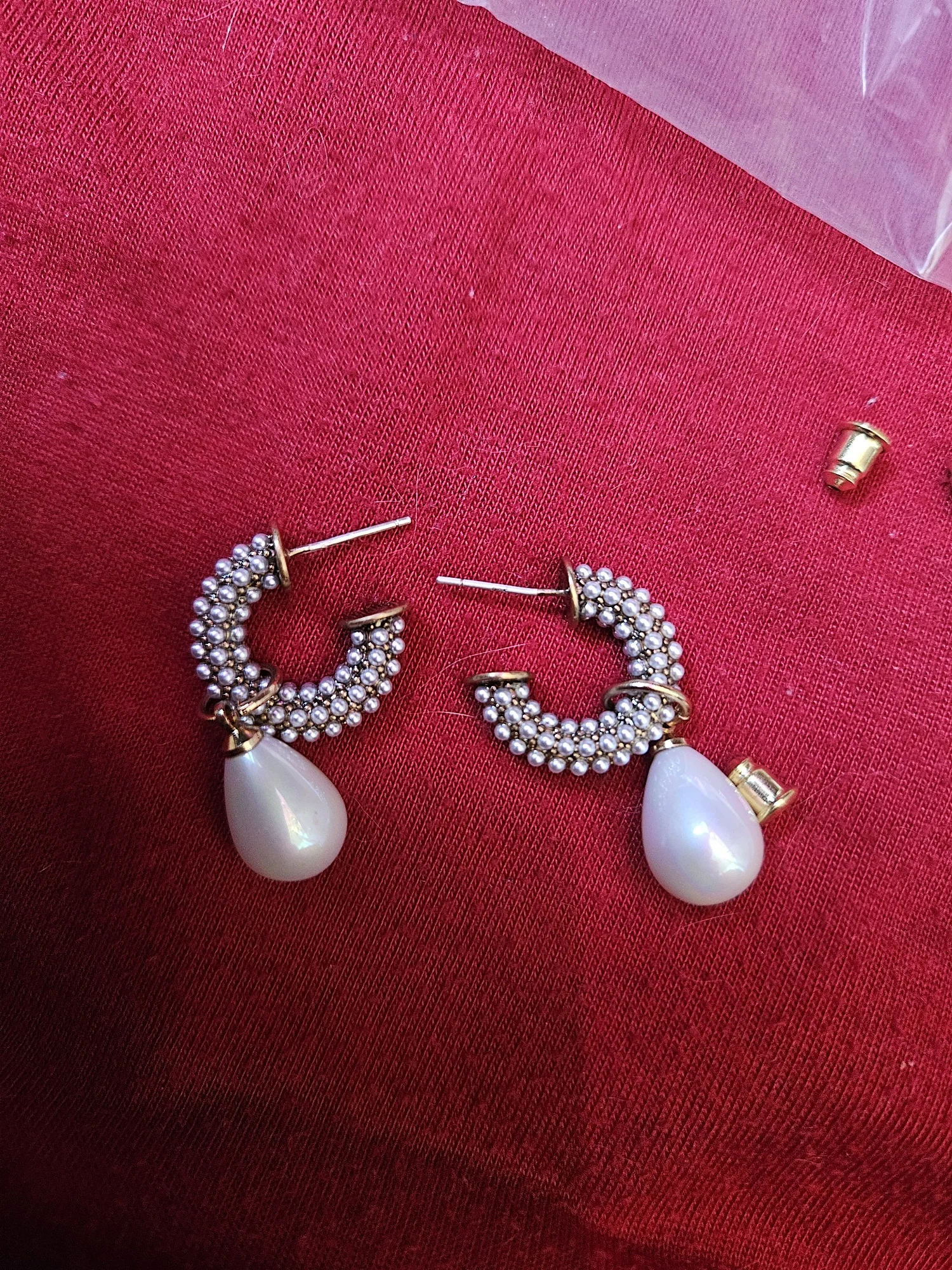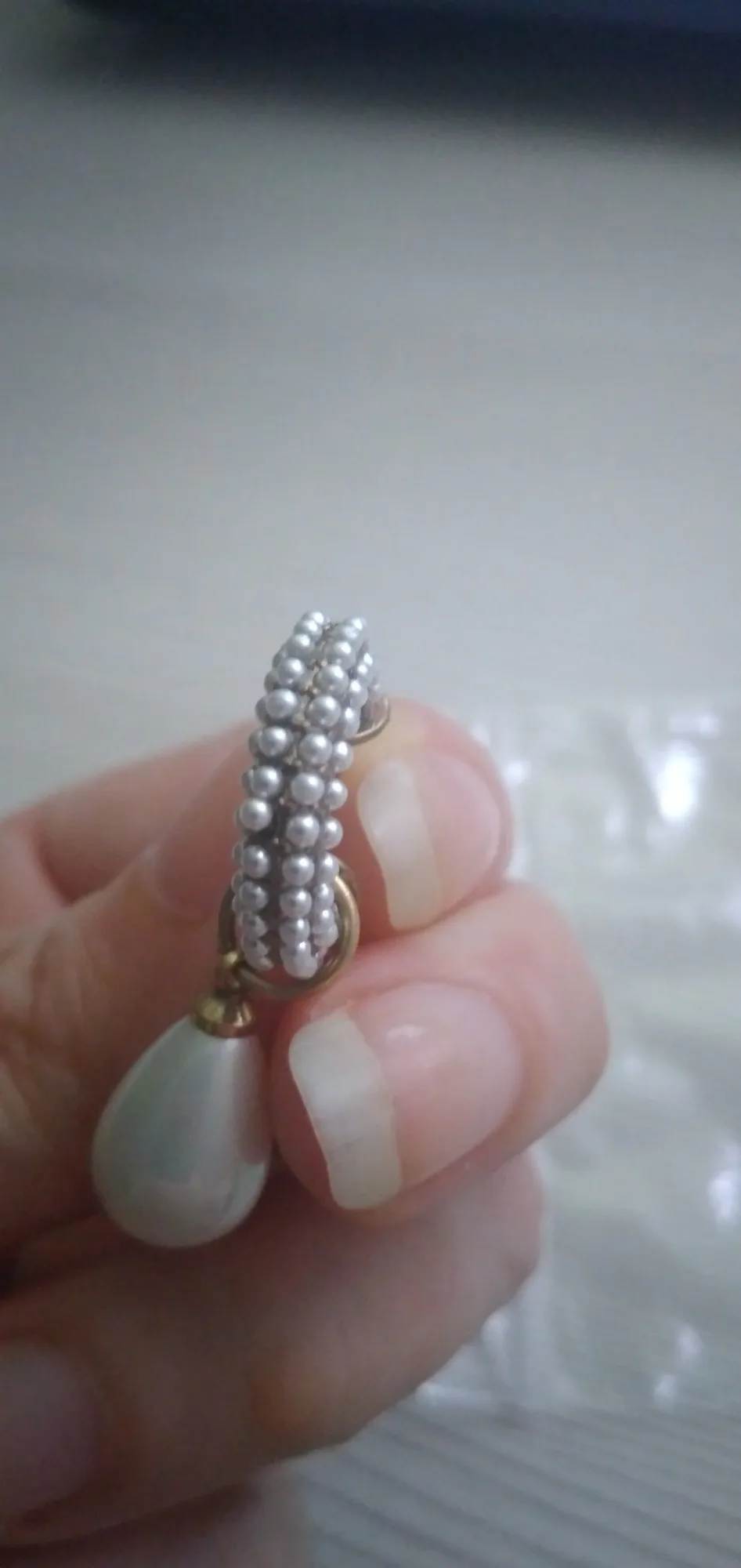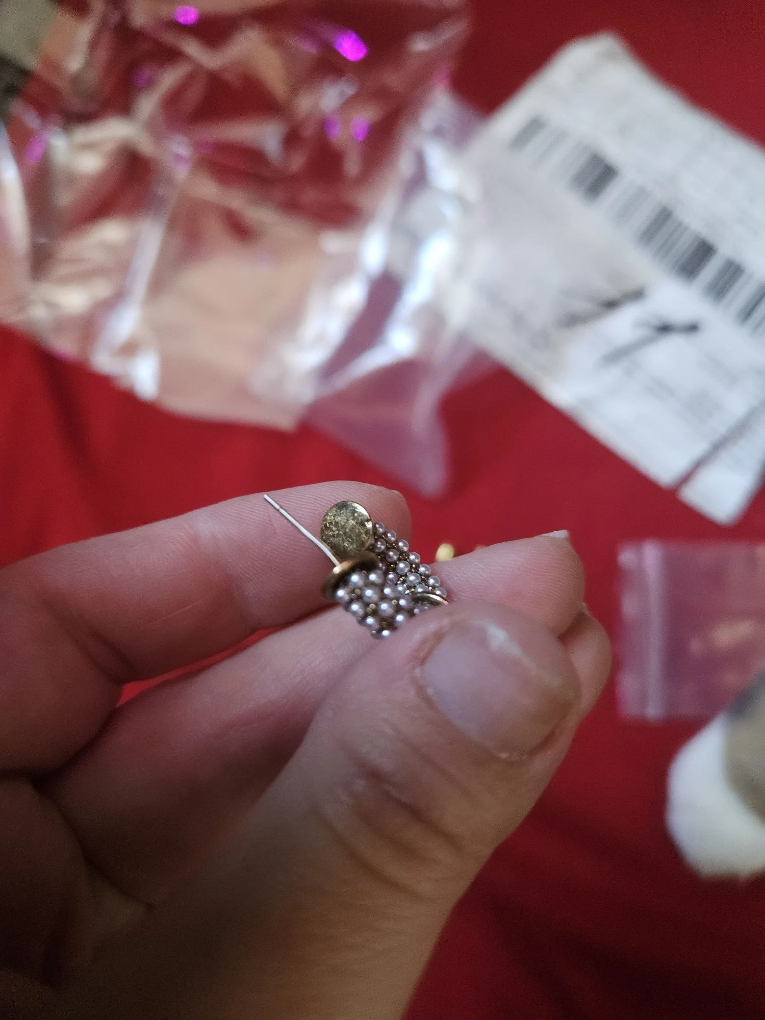 Всё пришло целое в совместной посылке. Упаковано отлично. Каждая серёжка в своём пакете. Мне очень понравились. При желании жемчужину можно снять. Один гвоздик кривенький(на фото видно) и на них что-то написано или нацарапано. К сожалению разглядеть не смогла.