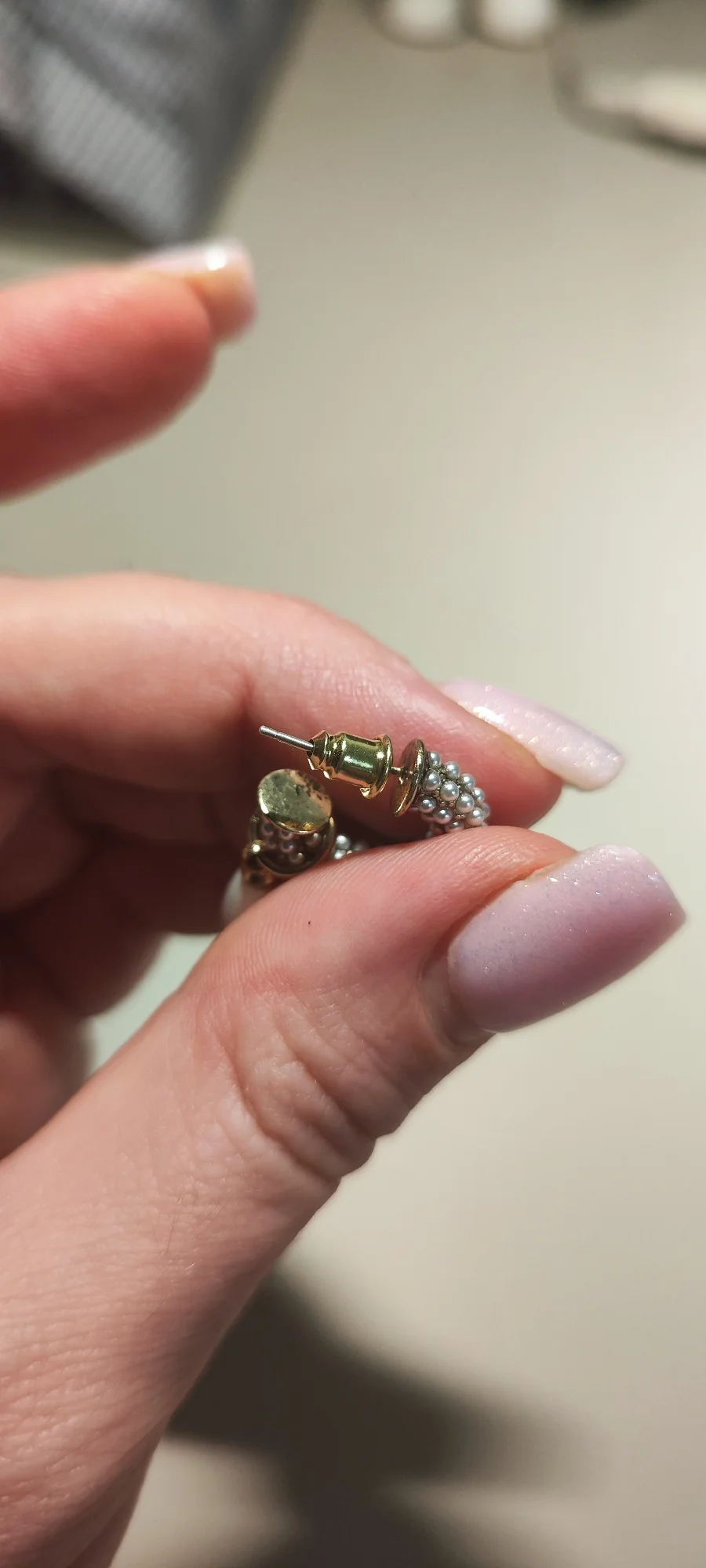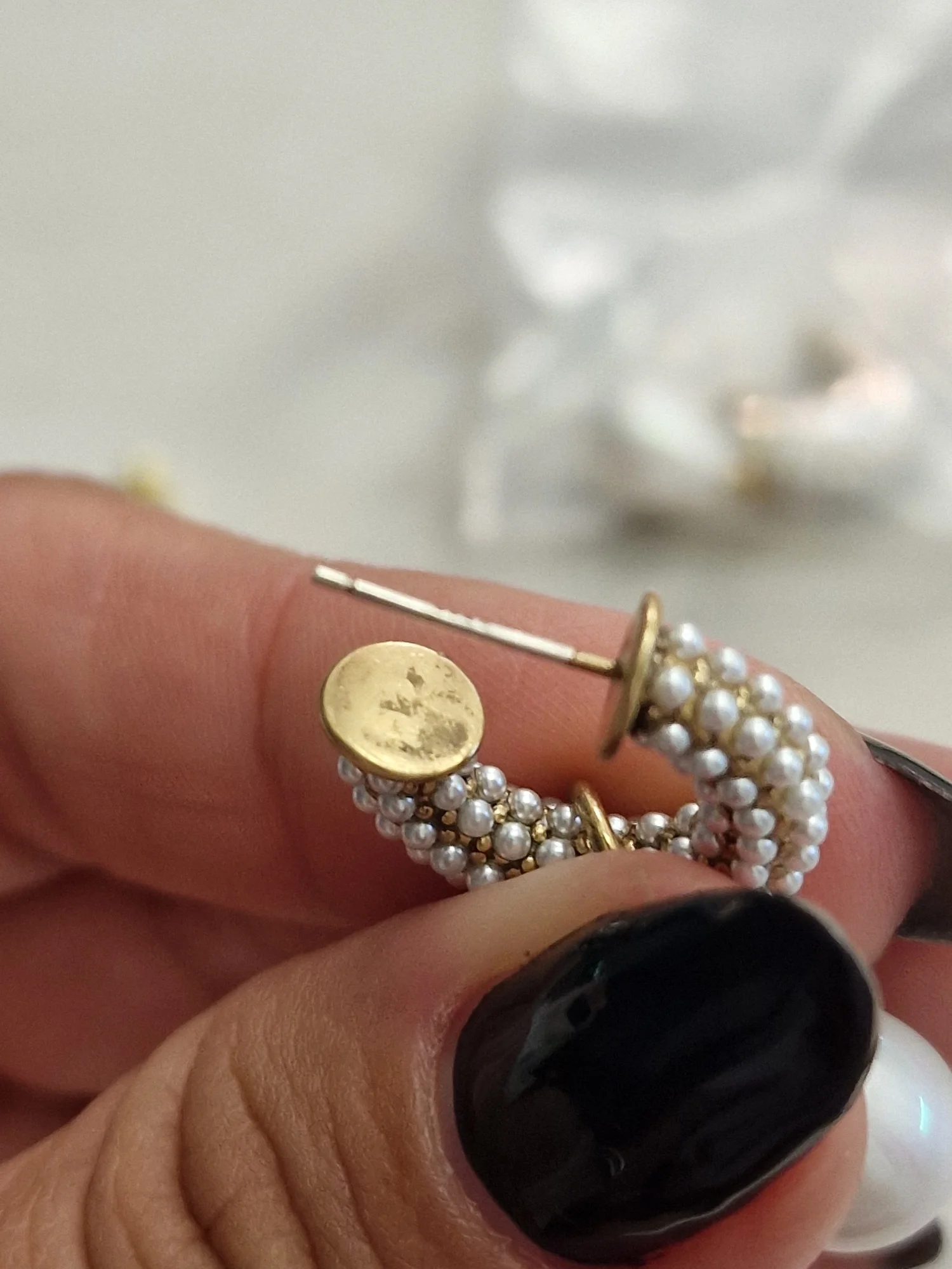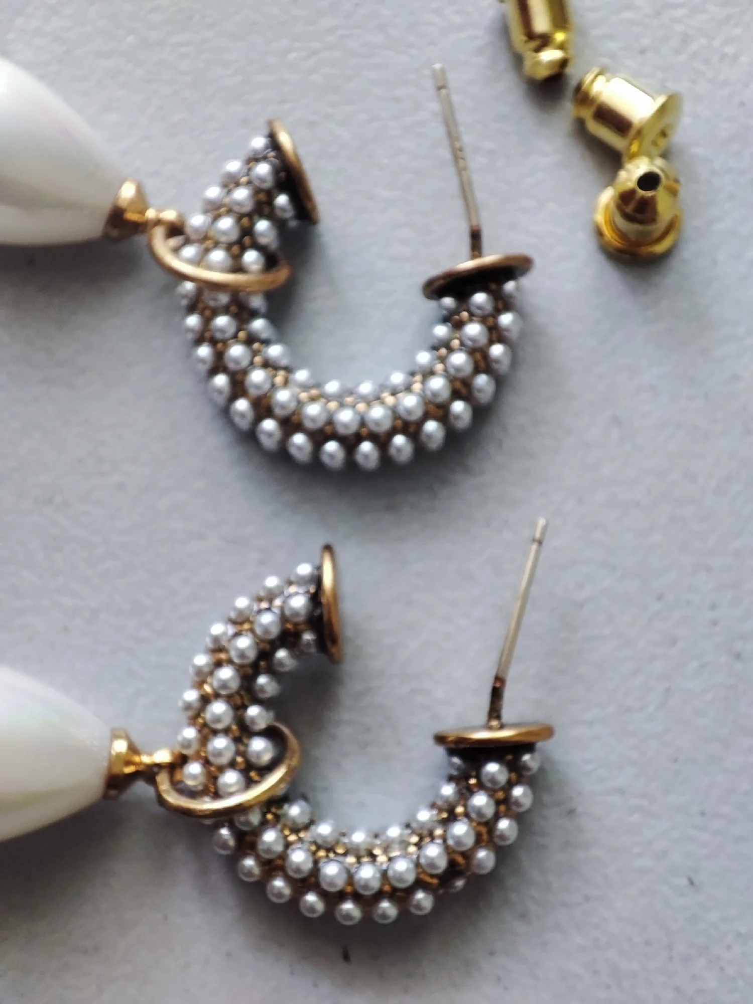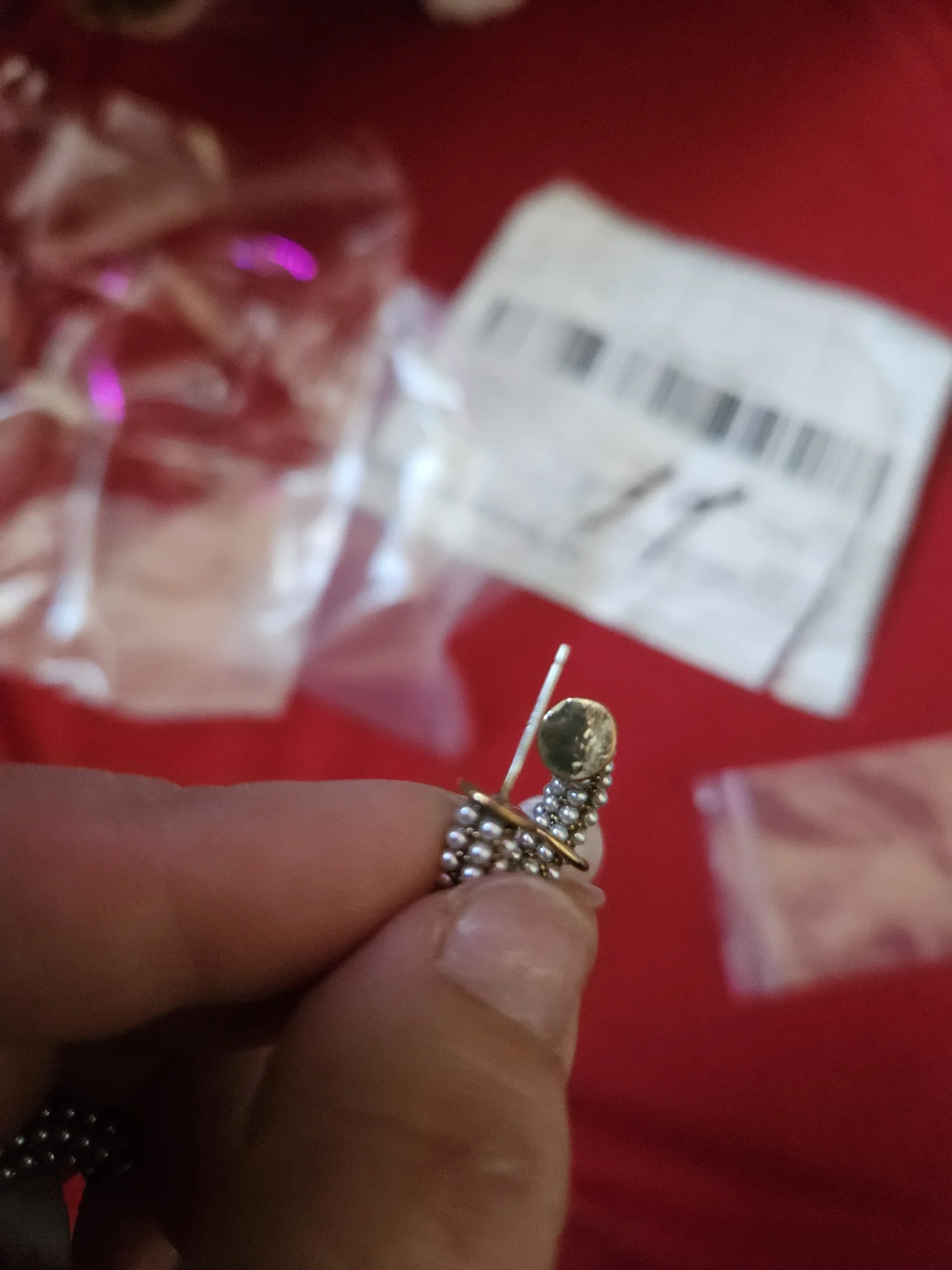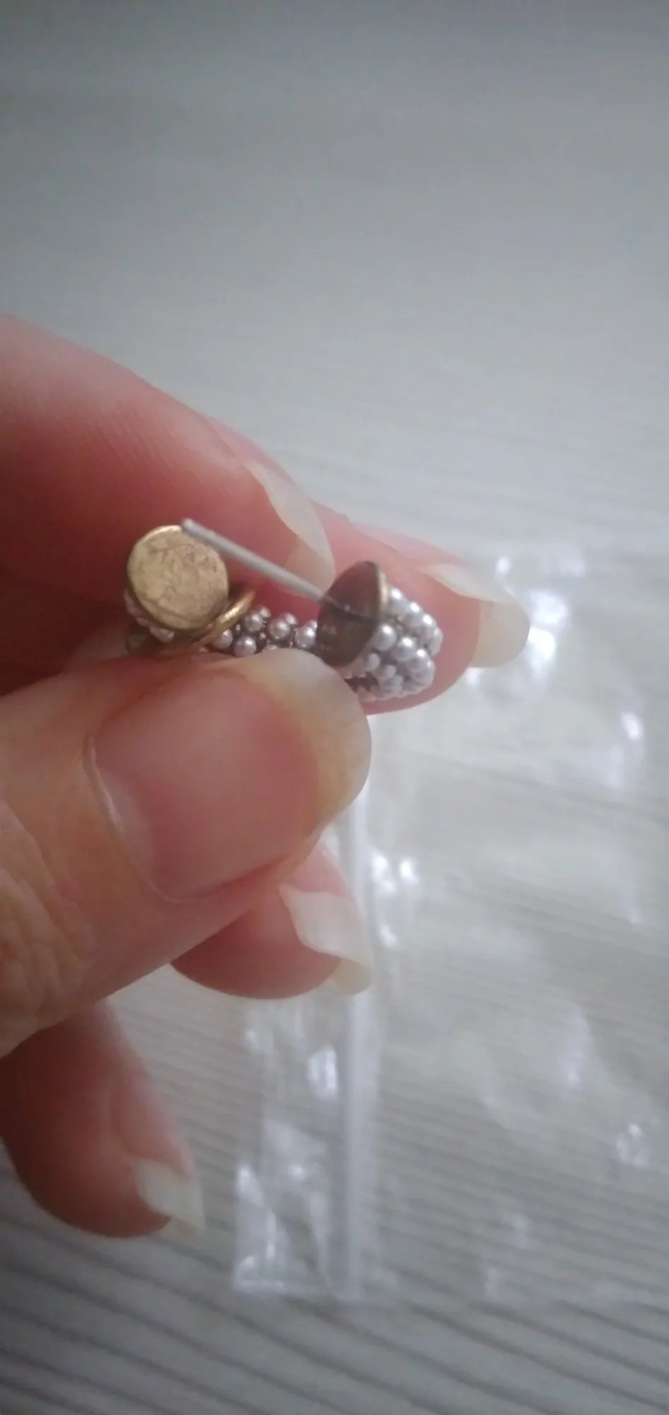 Всё пришло целое в совместной посылке. Упаковано отлично. Каждая серёжка в своём пакете. Мне очень понравились. При желании жемчужину можно снять. Один гвоздик кривенький(на фото видно) и на них что-то написано или нацарапано. К сожалению разглядеть не смогла.