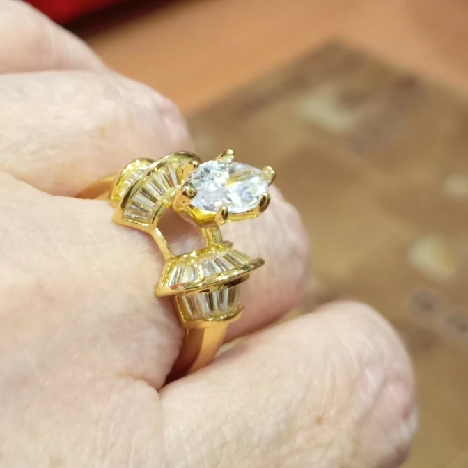 Очень красивое кольцо! Блестит и переливается, на 17 размер подошел 7. Очень быстрая доставка! Рекомендую!