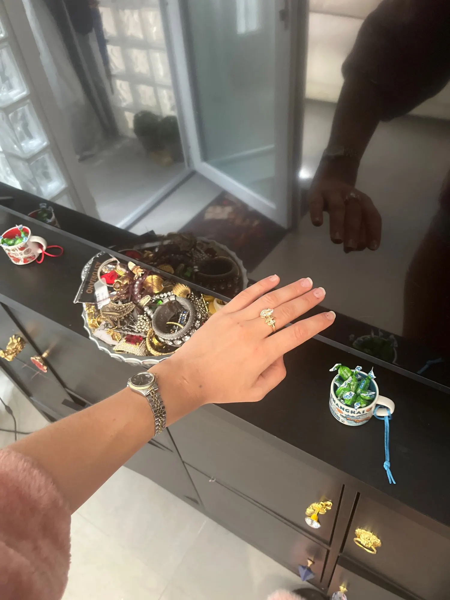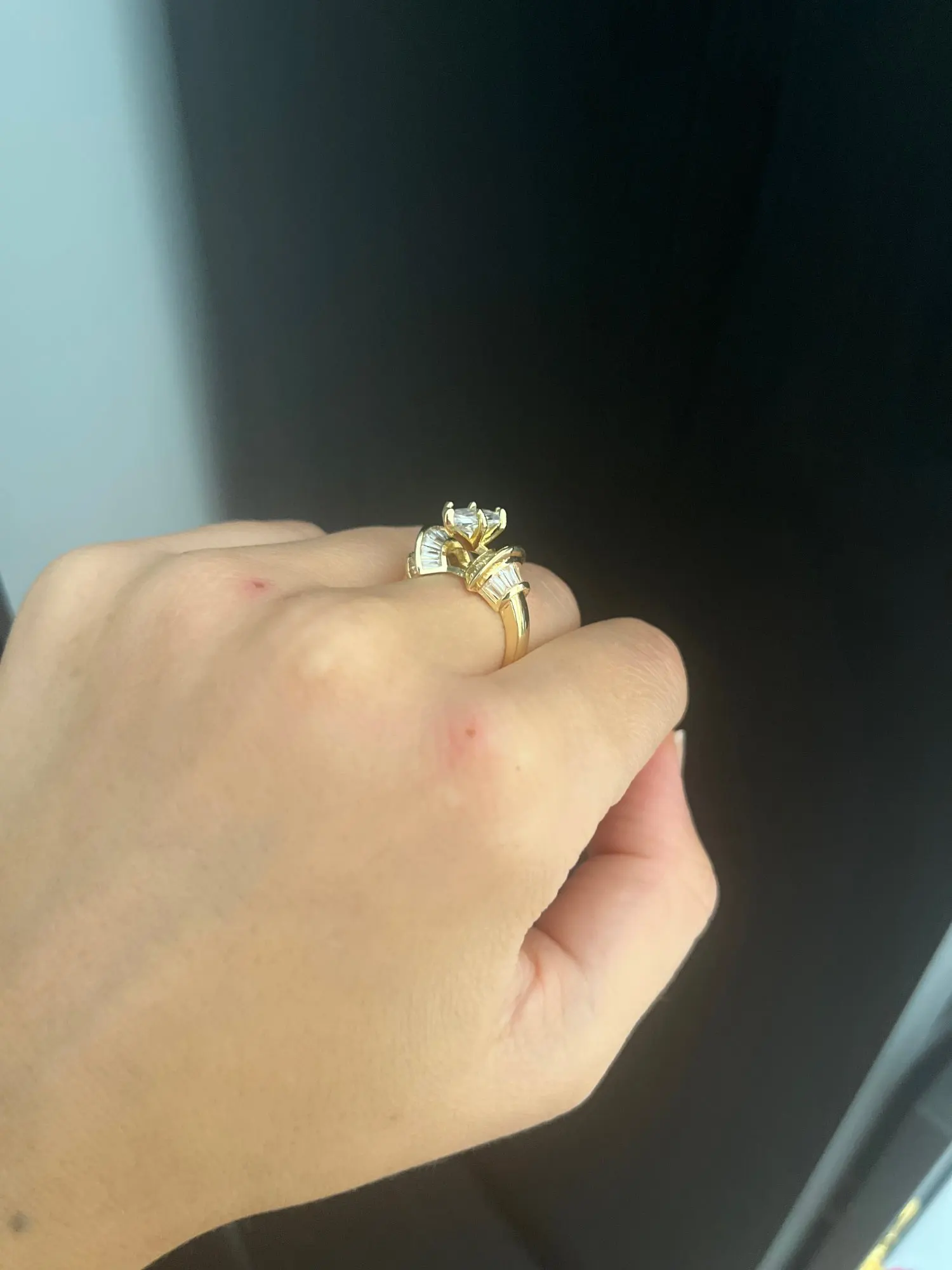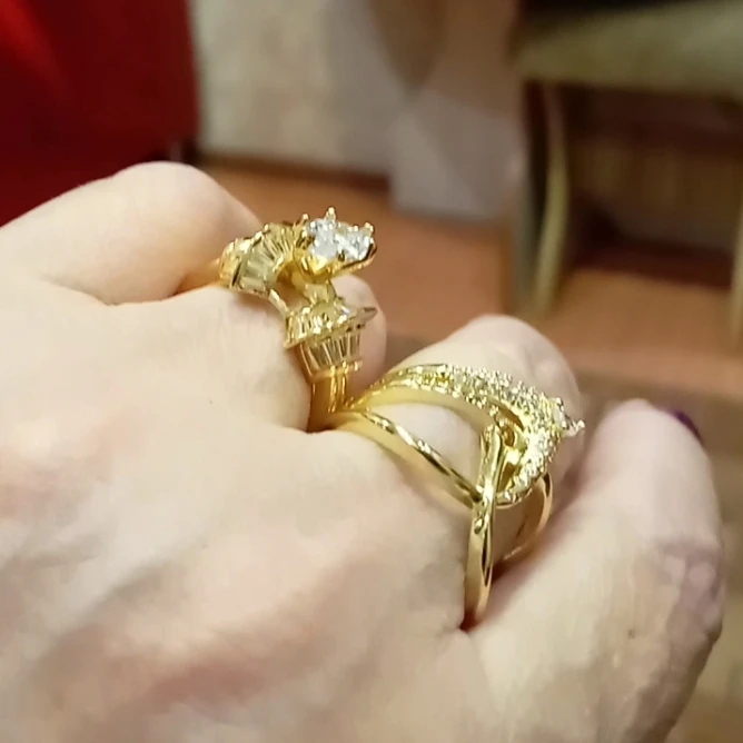 Кольцо замечательное, прямо как на фото. Звезду сняла за небольшой заводской брак на боковых сторонах, где крепятся трапеции, и за несоответствие размеру, так как на среднем пальце у меня 9 размер, а кольцо не налазиет к сожалению на средний палец, на безымянном у меня 8 размер, на нем сидит относительно нормально, слегка свободновато. Настоящий размер кольца 8,5 а не 9 как заявленно, еслиб знала то заказала бы больше.