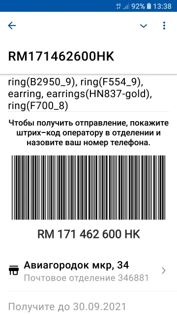 Посылка: 1 кольцо, полиэтиленовый пакет