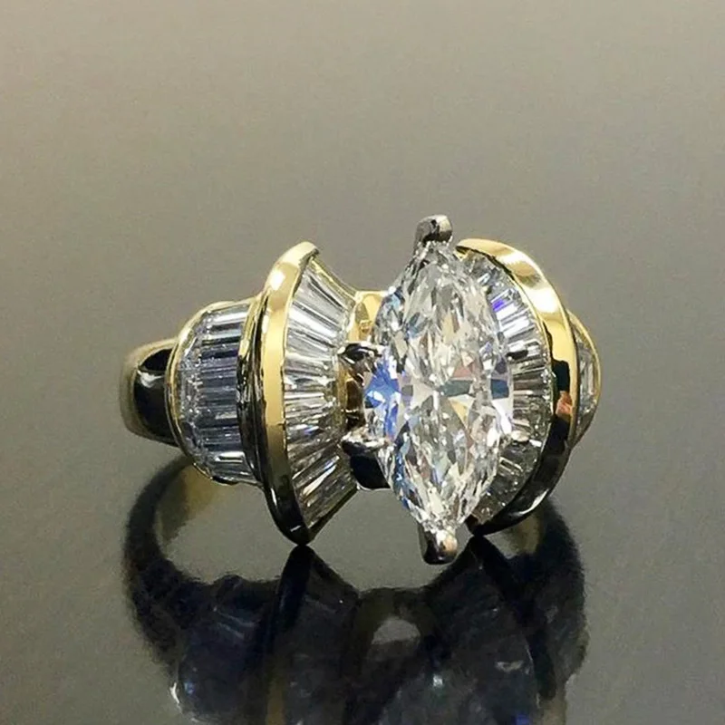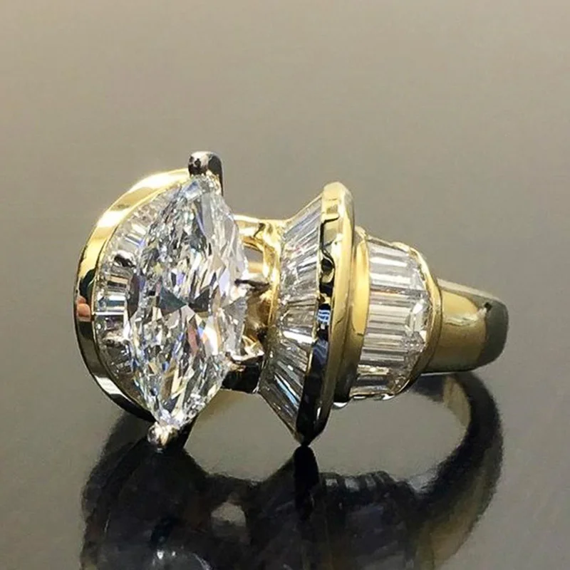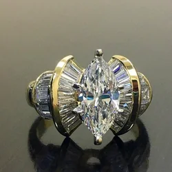 Huitan романтическое женское кольцо на палец золотого цвета Блестящий маркиза...
