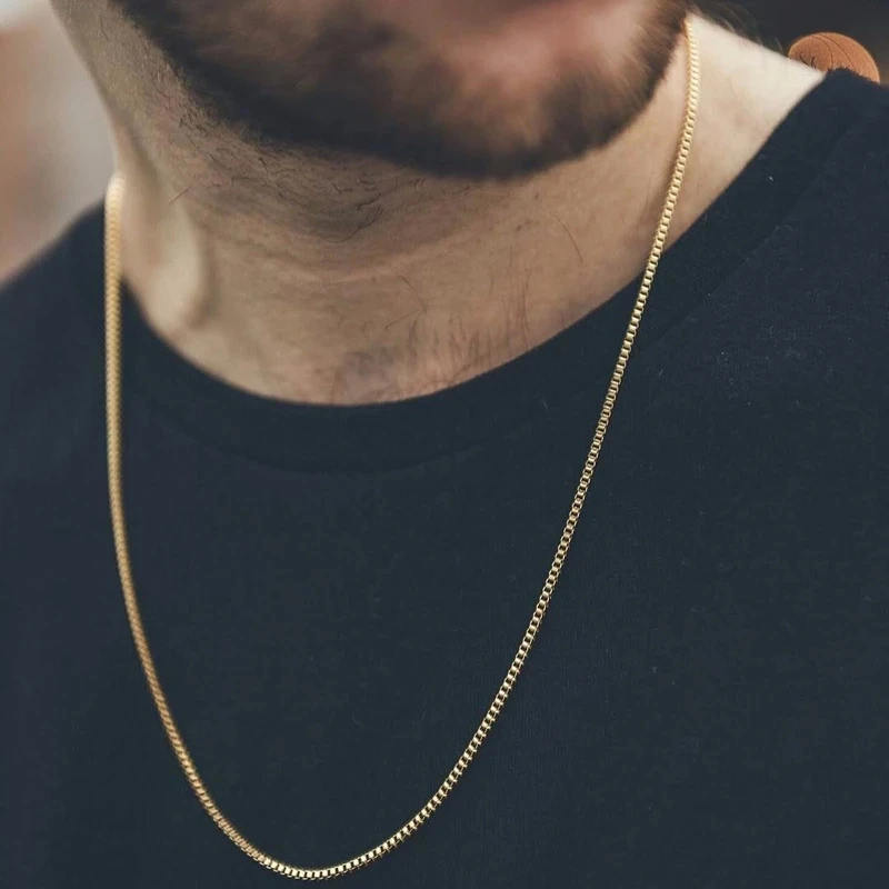 Hip Hop Necklaces For Men Women Gold Color Stainless Steel Necklace 3MM Square...