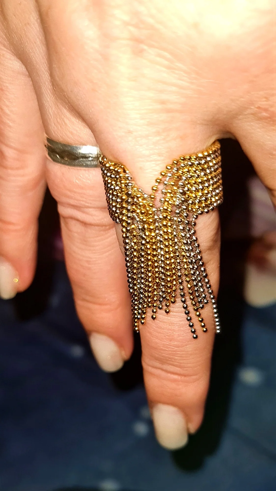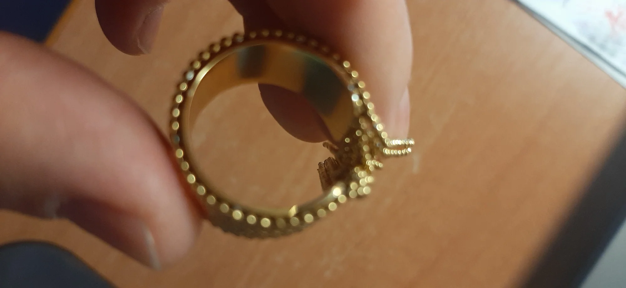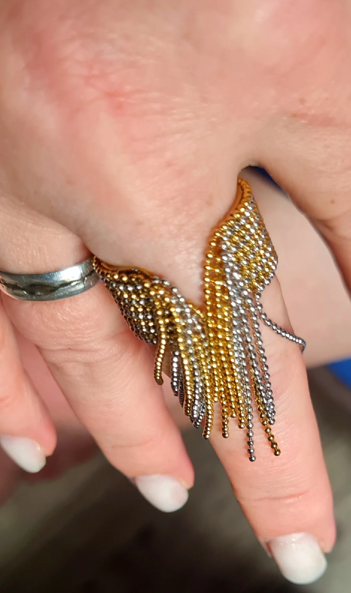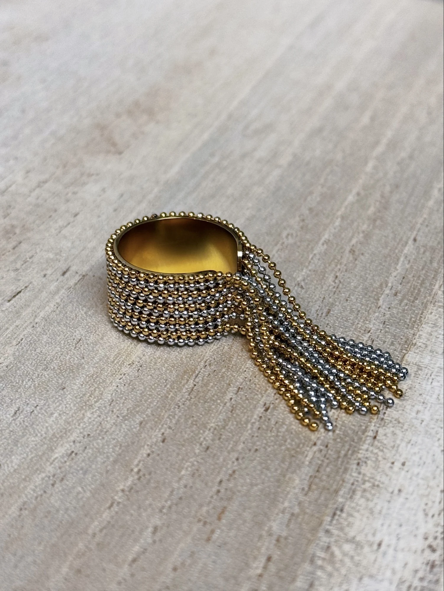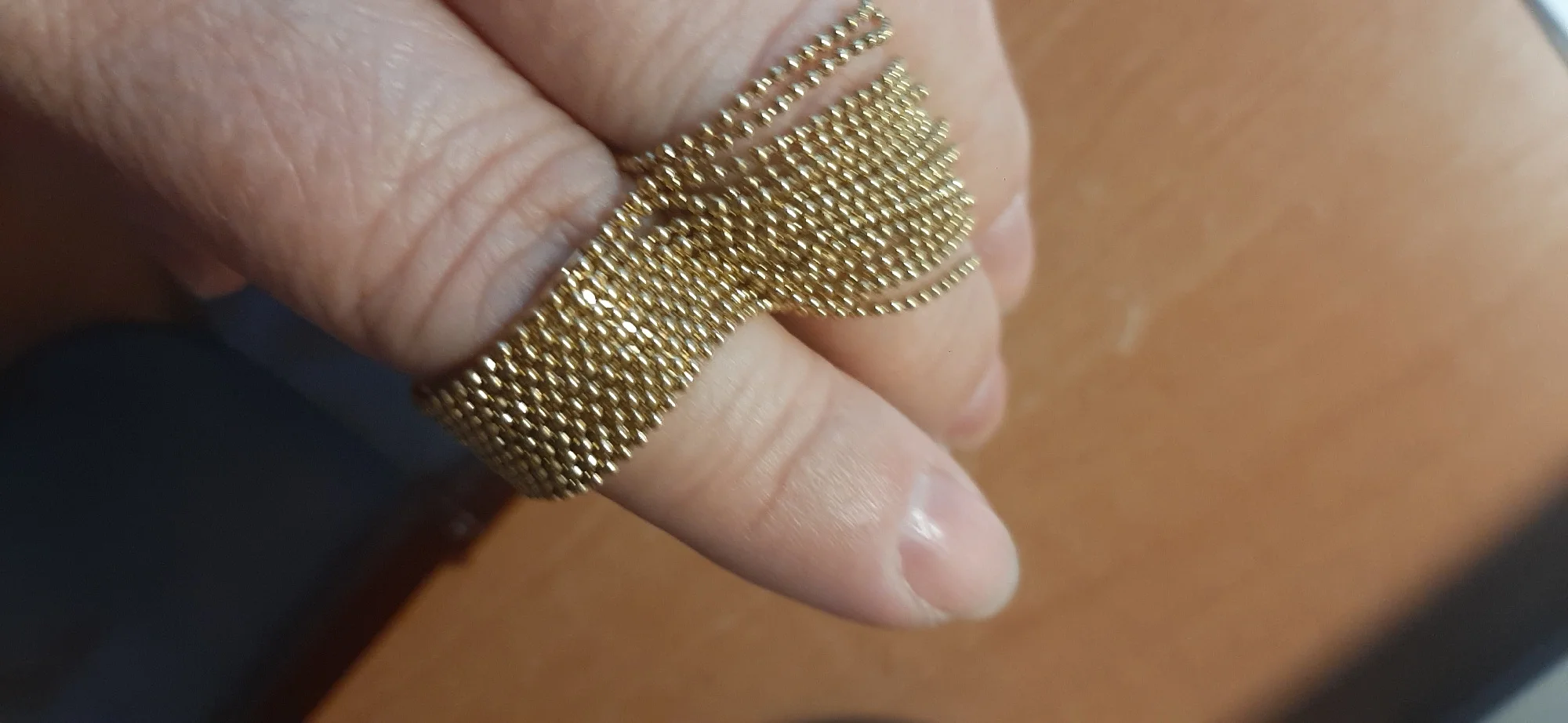 очень красивое и качественное кольцо. отлично упаковано, в три слоя. красивый цвет. мягкие цепочки. быстрая доставка.