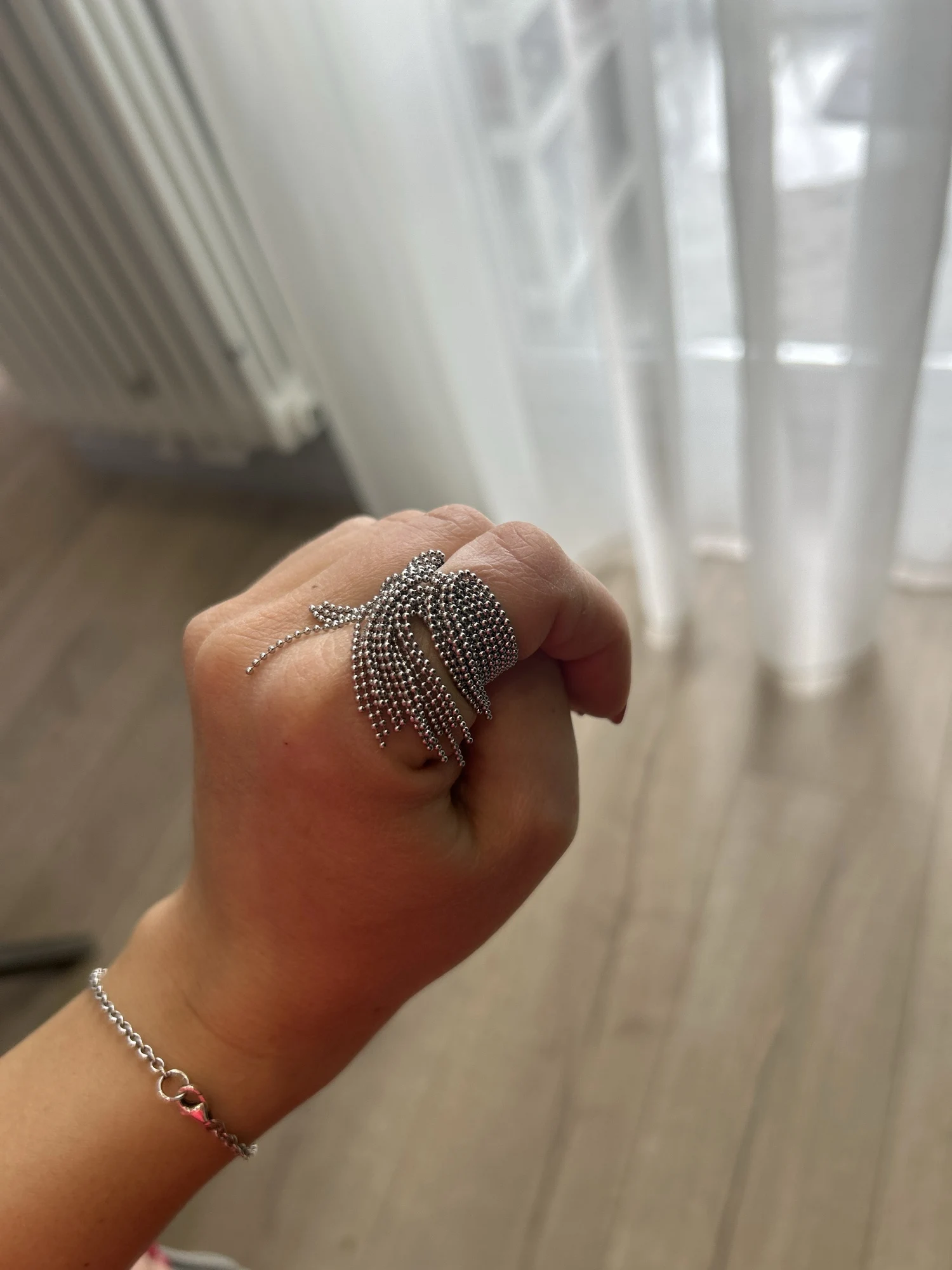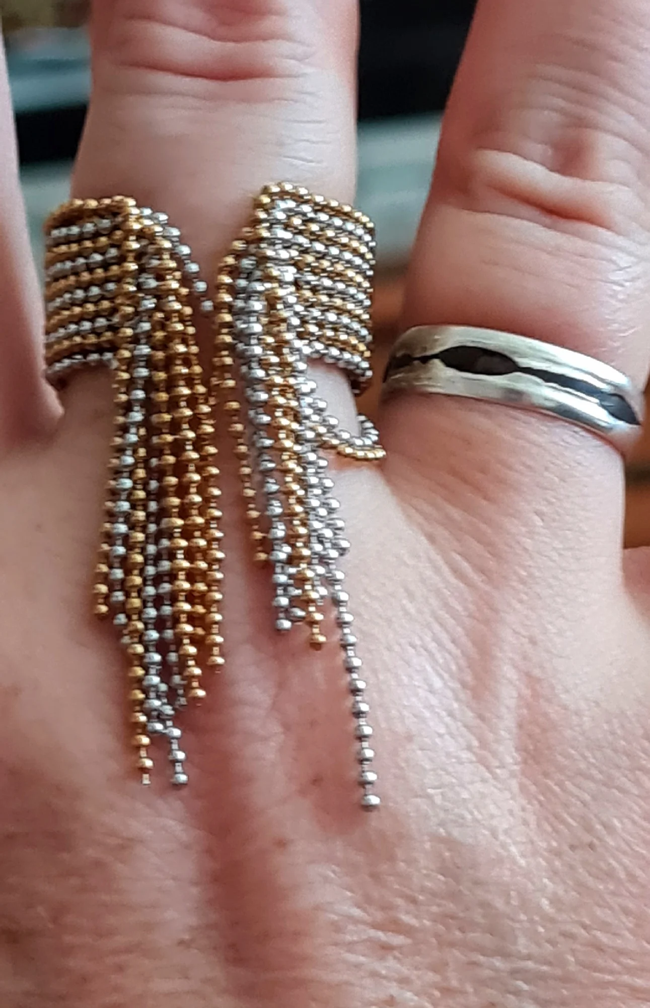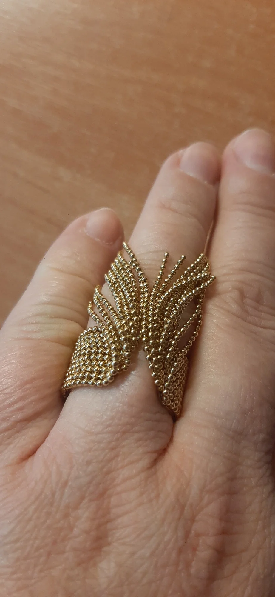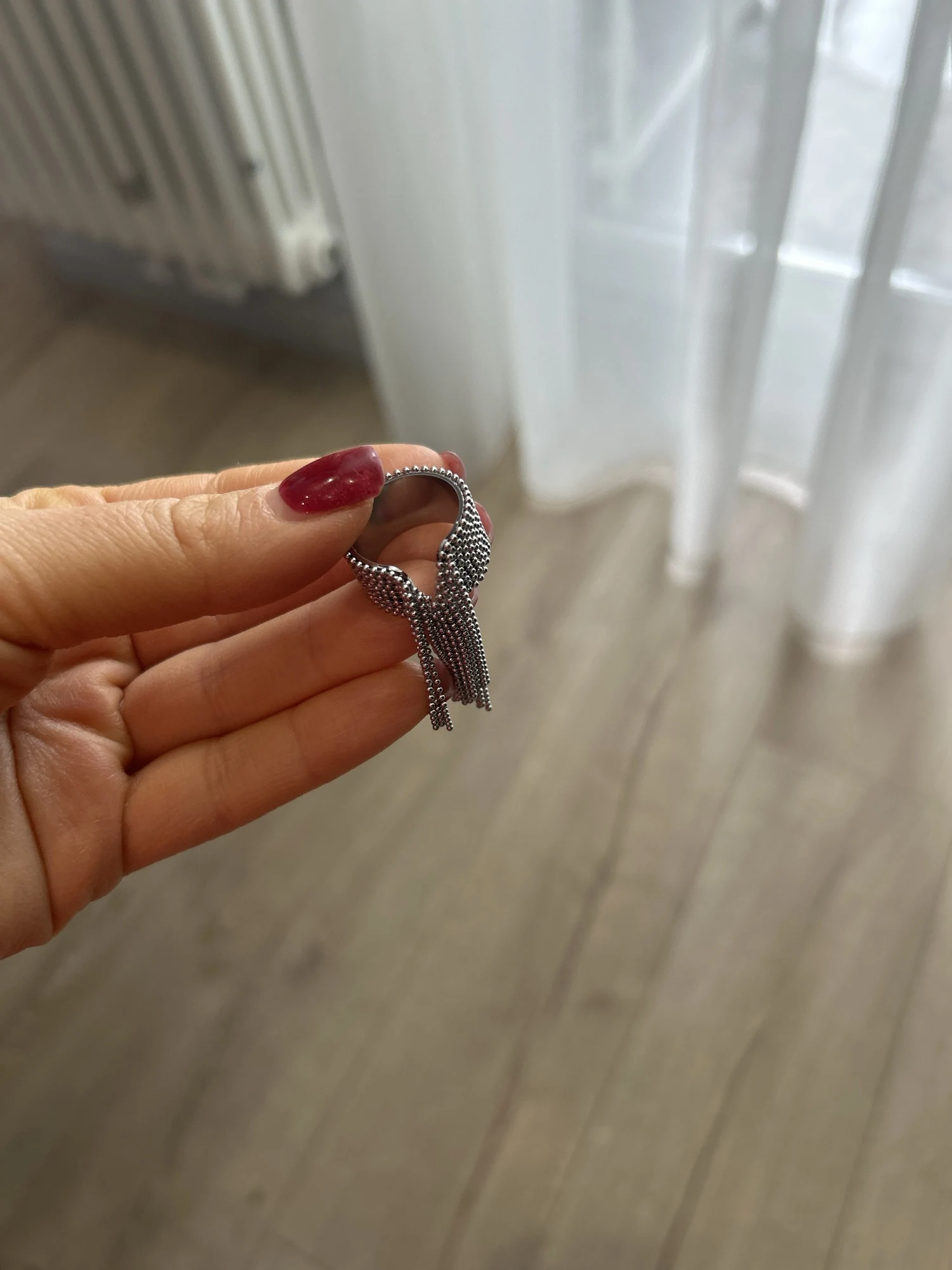 очень красивое и качественное кольцо. отлично упаковано, в три слоя. красивый цвет. мягкие цепочки. быстрая доставка.