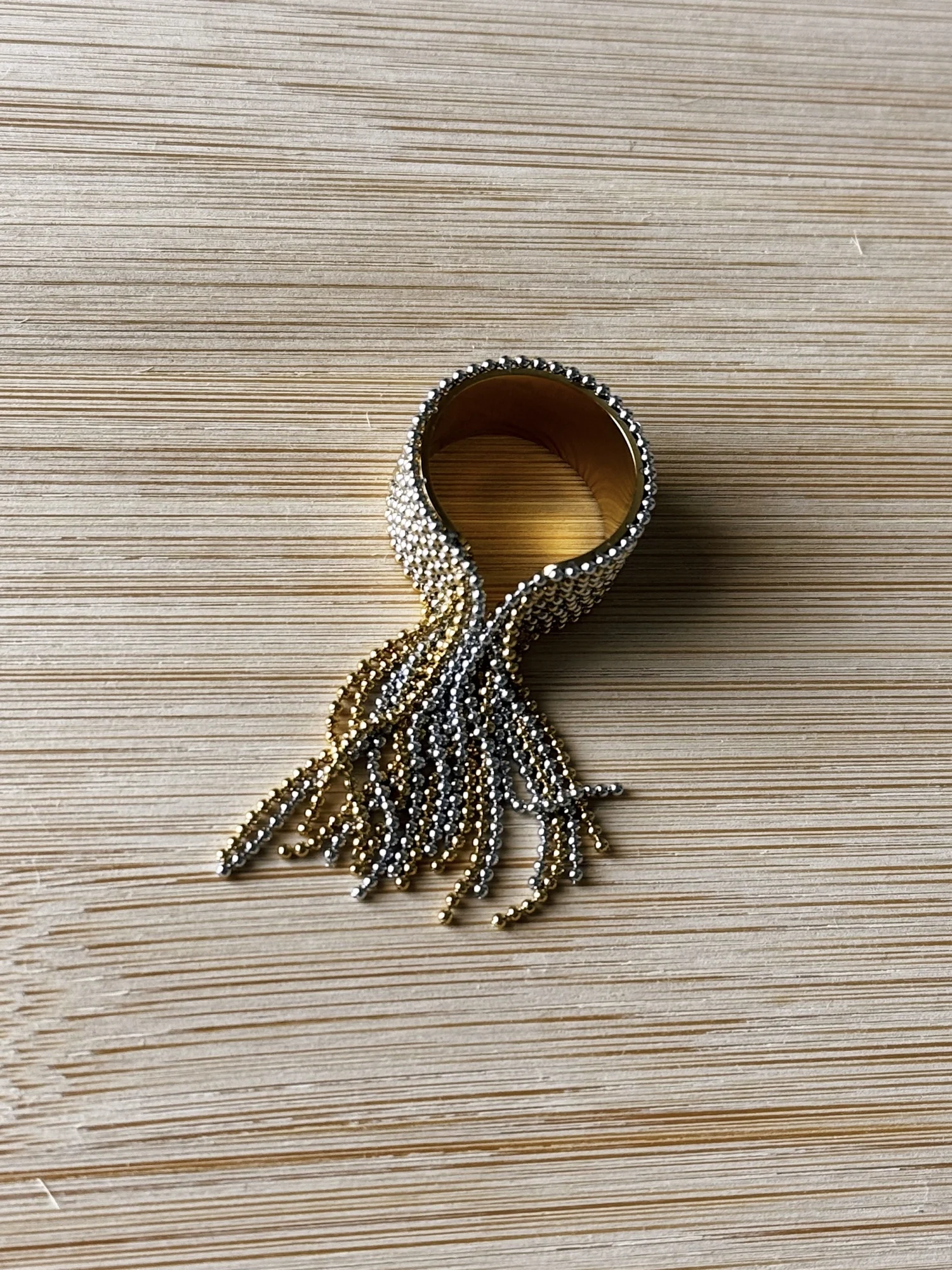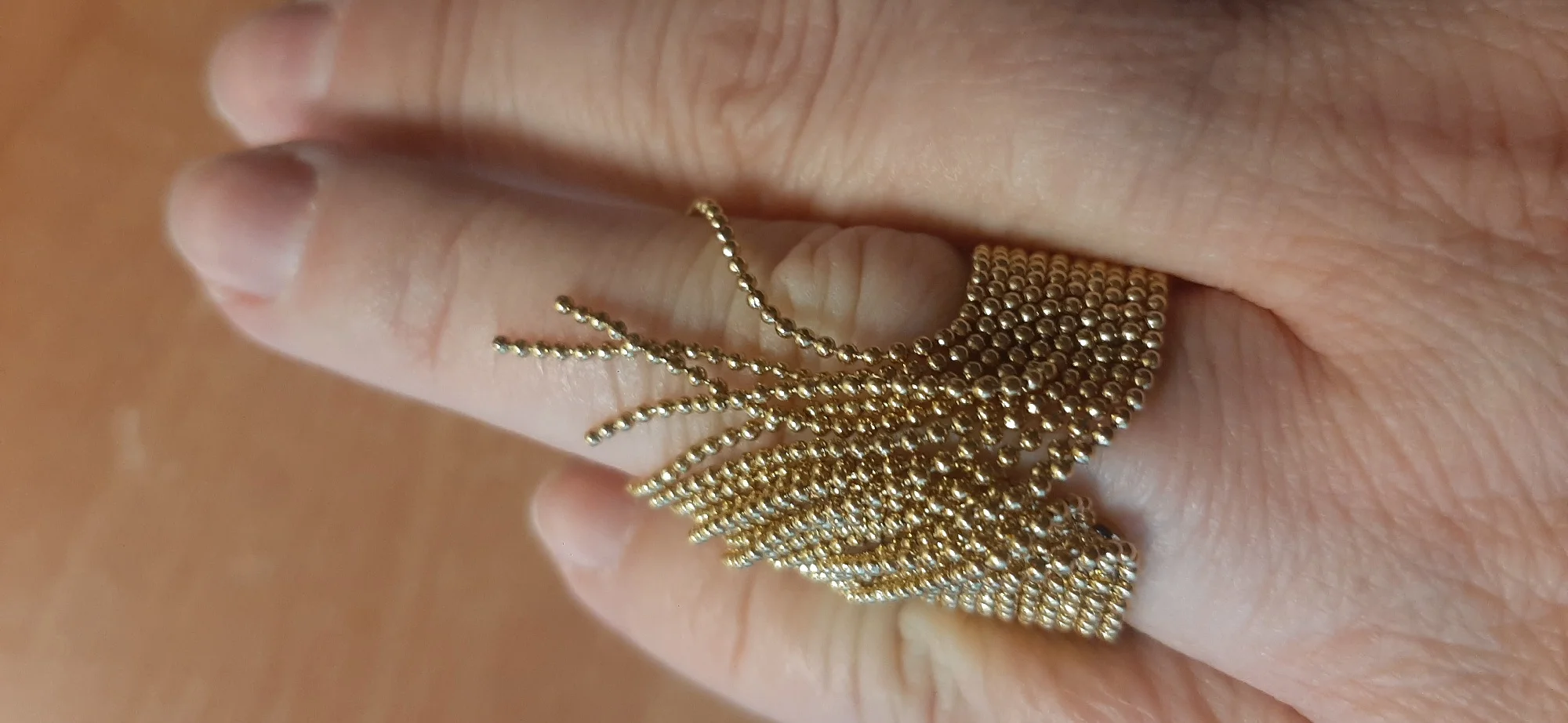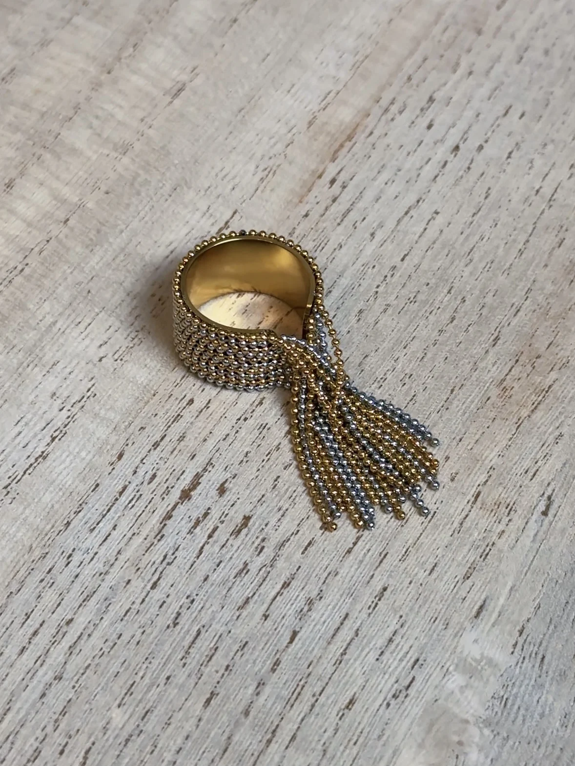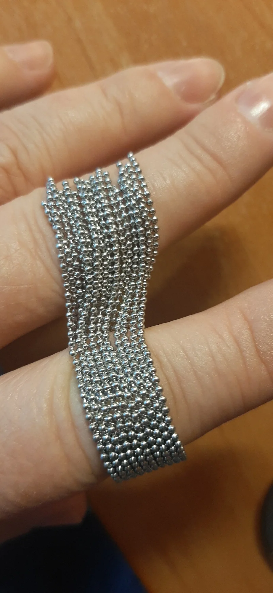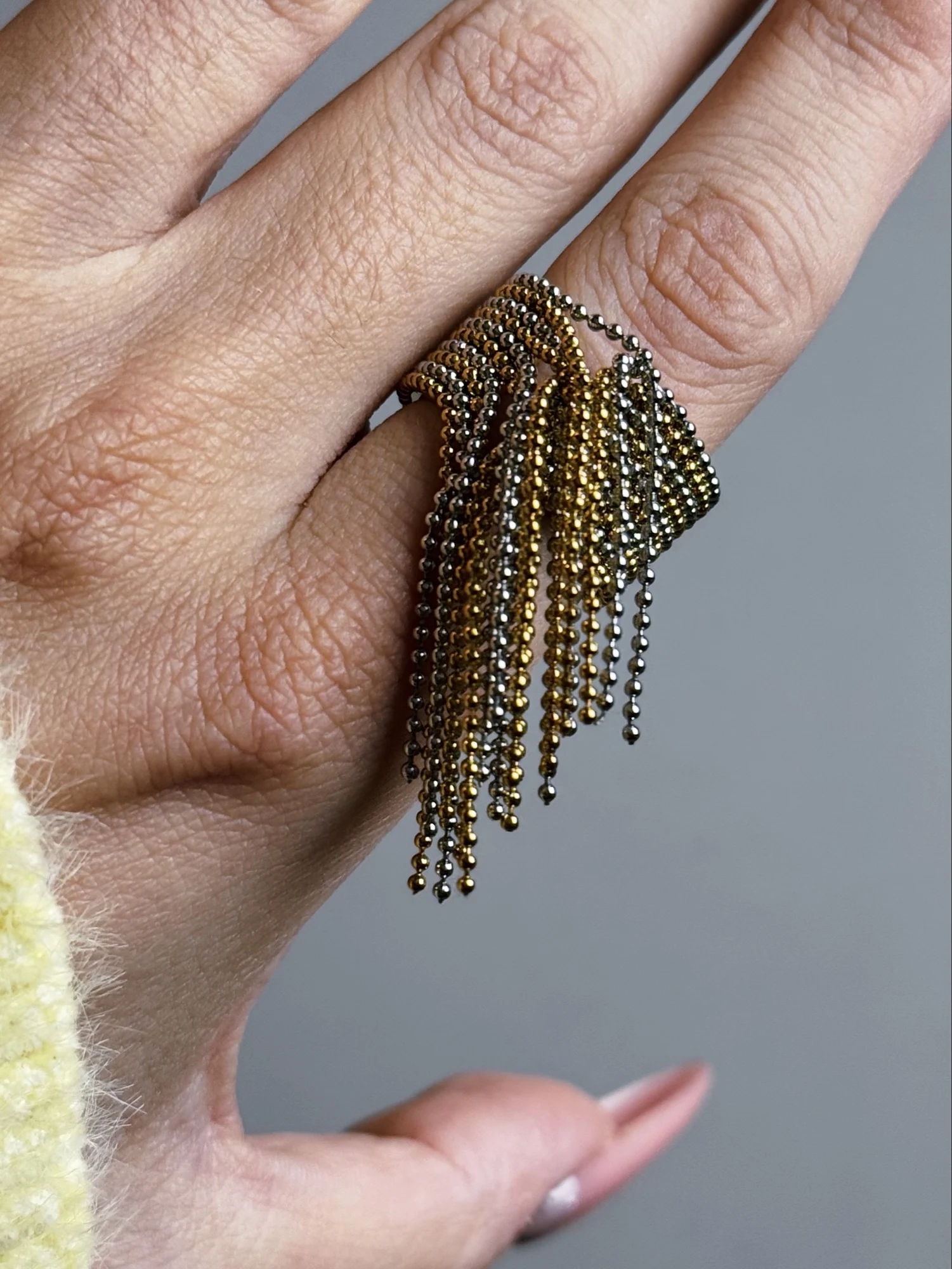 очень красивое и качественное кольцо. отлично упаковано, в три слоя. красивый цвет. мягкие цепочки. быстрая доставка.