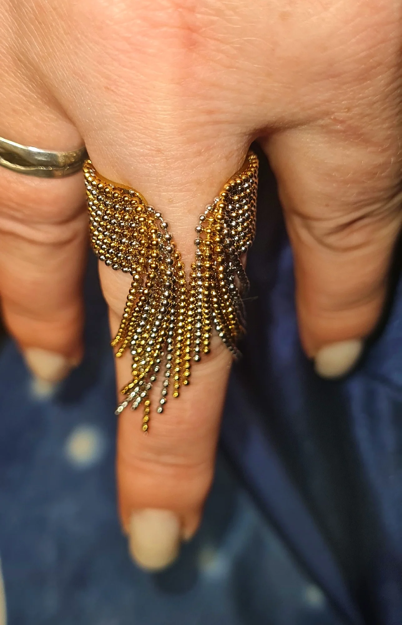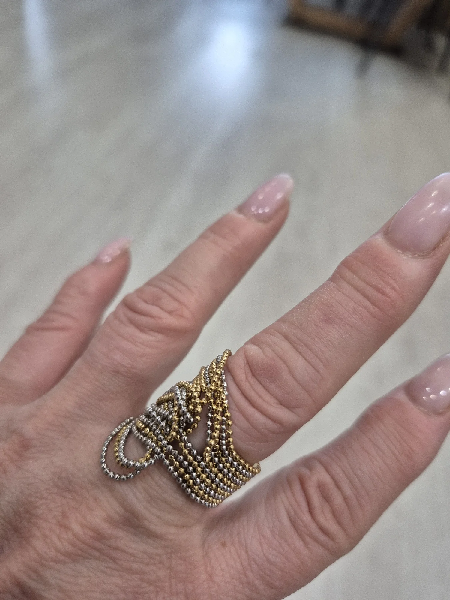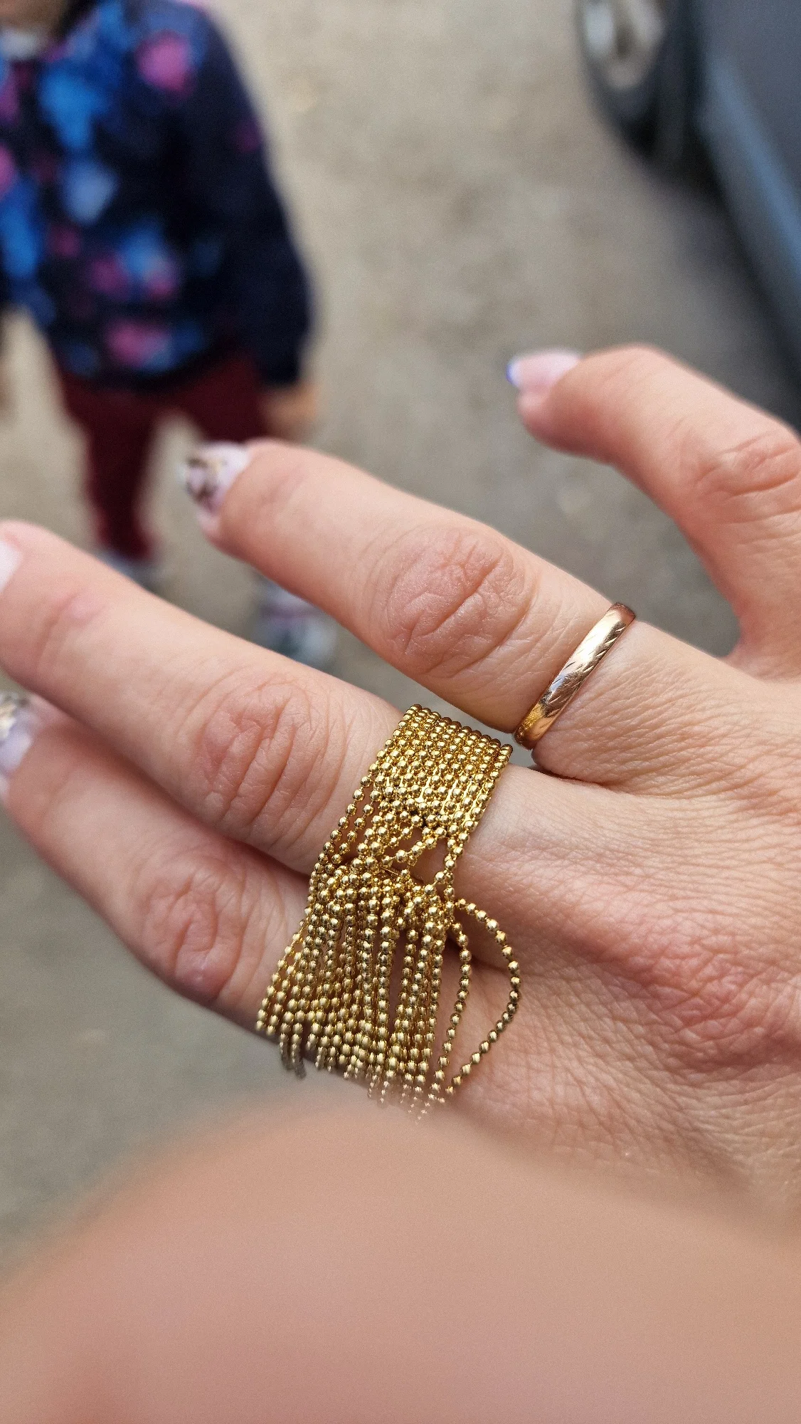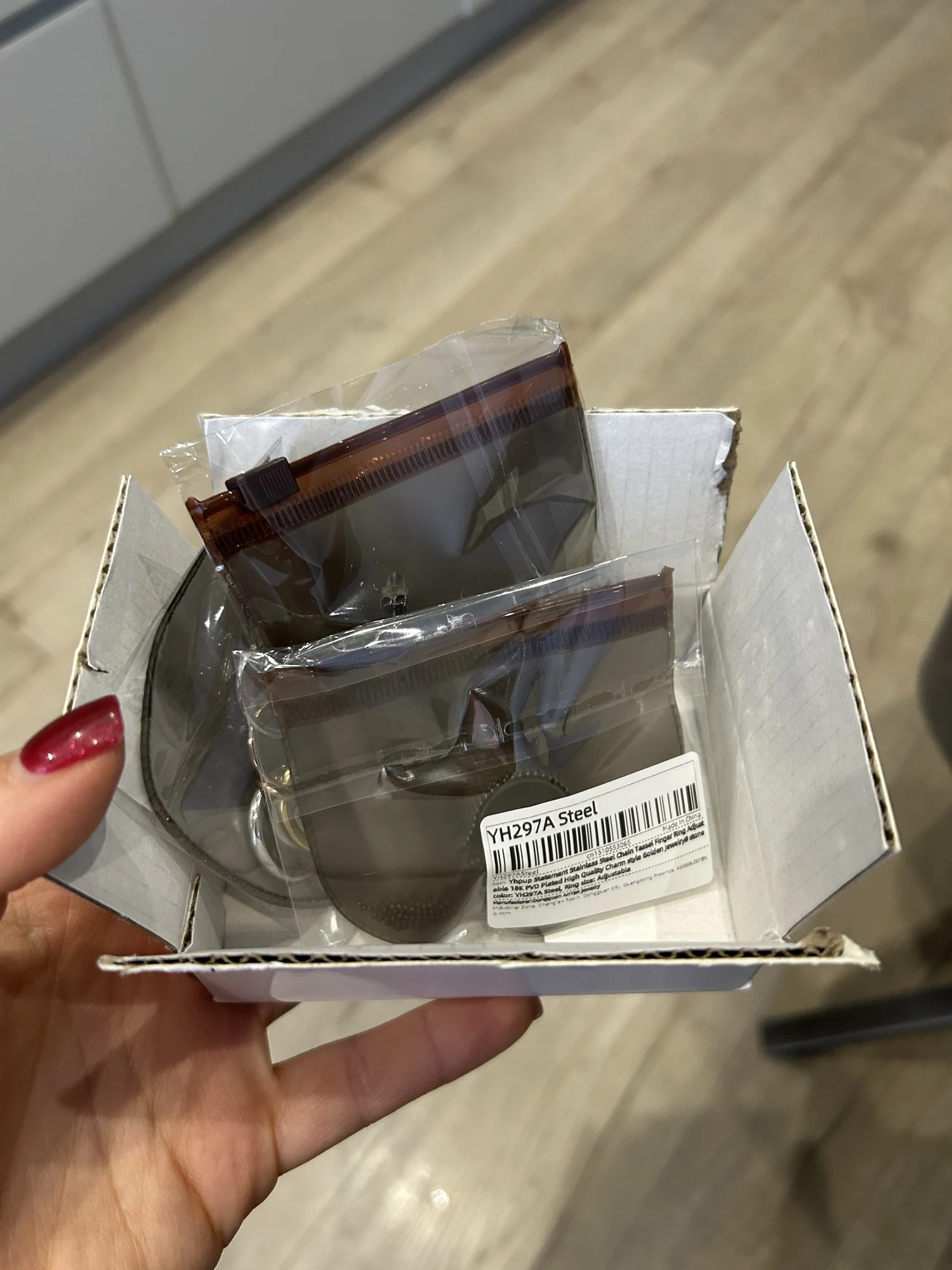 очень красивое и качественное кольцо. отлично упаковано, в три слоя. красивый цвет. мягкие цепочки. быстрая доставка.