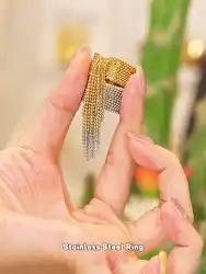 Yhpup Statement Stainless Steel Chain Tassel Finger Ring Adjustable 18K PVD...