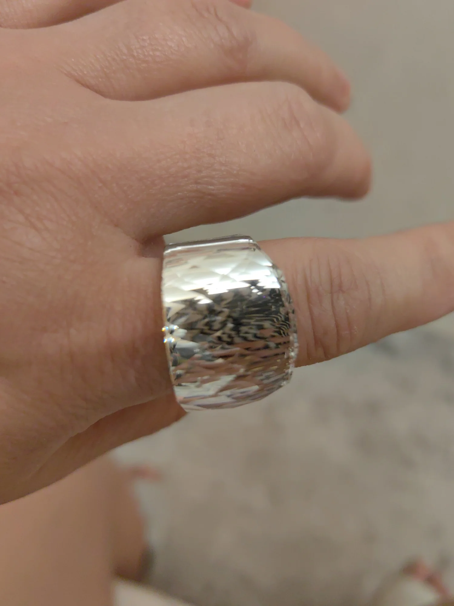 Кольцо действительно очень красивое, точно как в описании! Кольцо действительно впечатляет, размер подходит, я взял больший размер, так как он очень ерт, оно имеет тенденцию быть тесным при ношении. Я носил его некоторое время, и металл не давал цвета. Кольцо было хорошо завернуто в пузырчатую пленку, и доставка была быстрой. Я действительно очень доволен покупкой!
