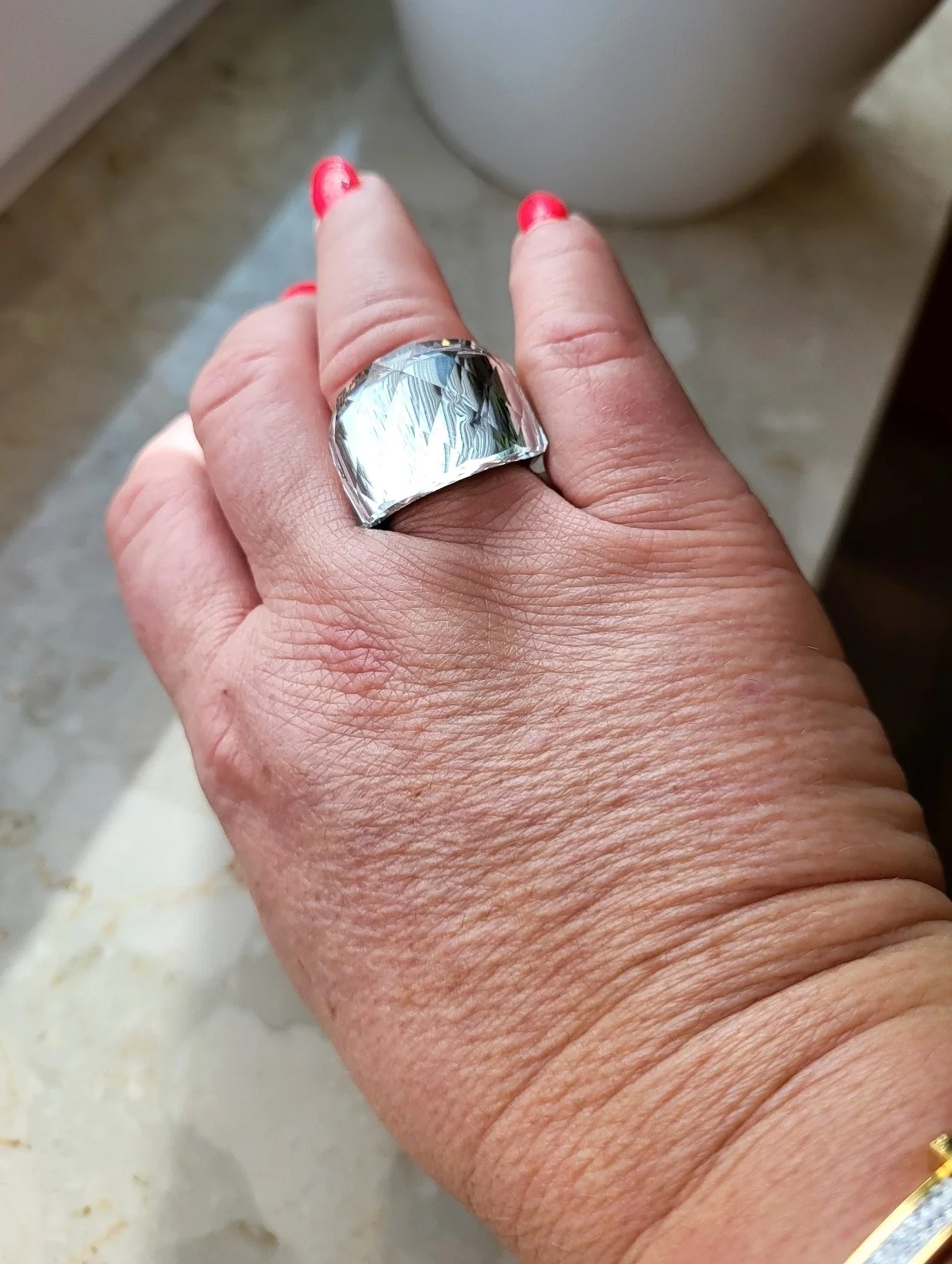 Кольцо очень красивое, цвет не такой, как на фото, но оно приятное. Я обязательно куплю в других цветах. Он хорошего качества и совсем немного сияет. Хорошая покупка!