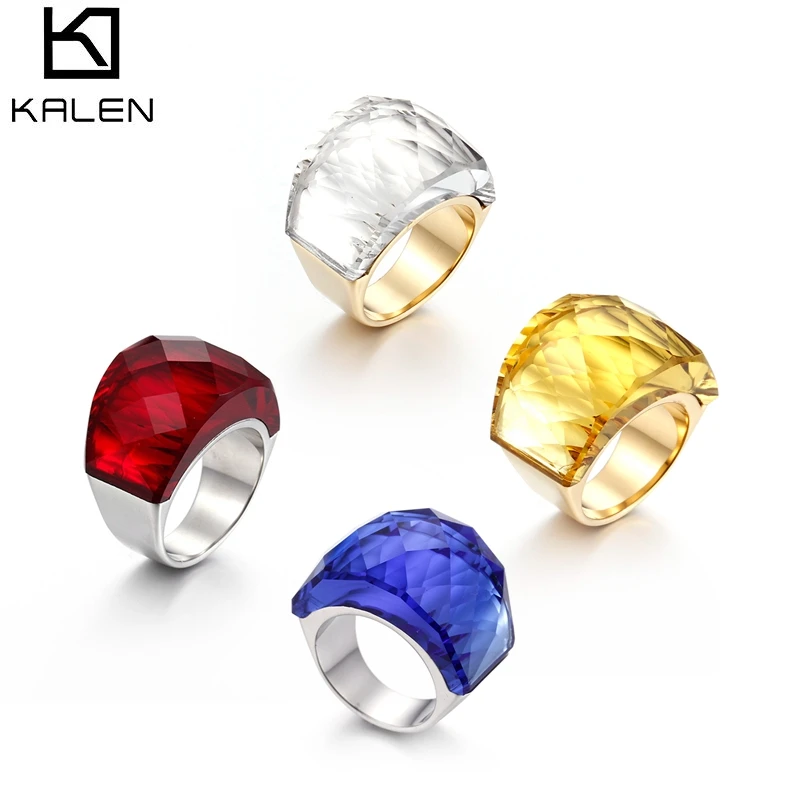 Kalen Luxury Bohemia Crystal Women Wedding Rings Gold Stainless Steel Colorful...