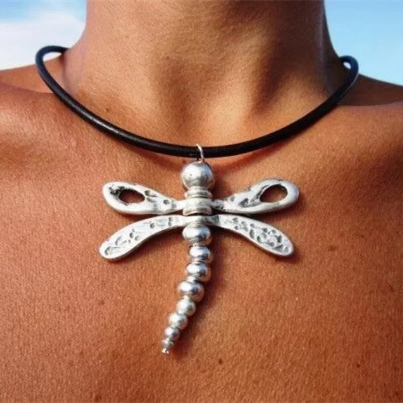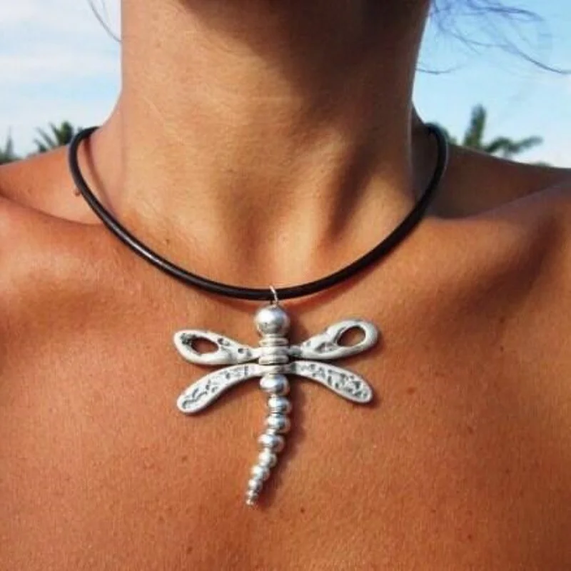 Новый этнический стиль Стрекоза металлический кулон ожерелье для женщин Мода богемная кожа колье ожерелья Пляжная Вечеринка ювелирные изделия
