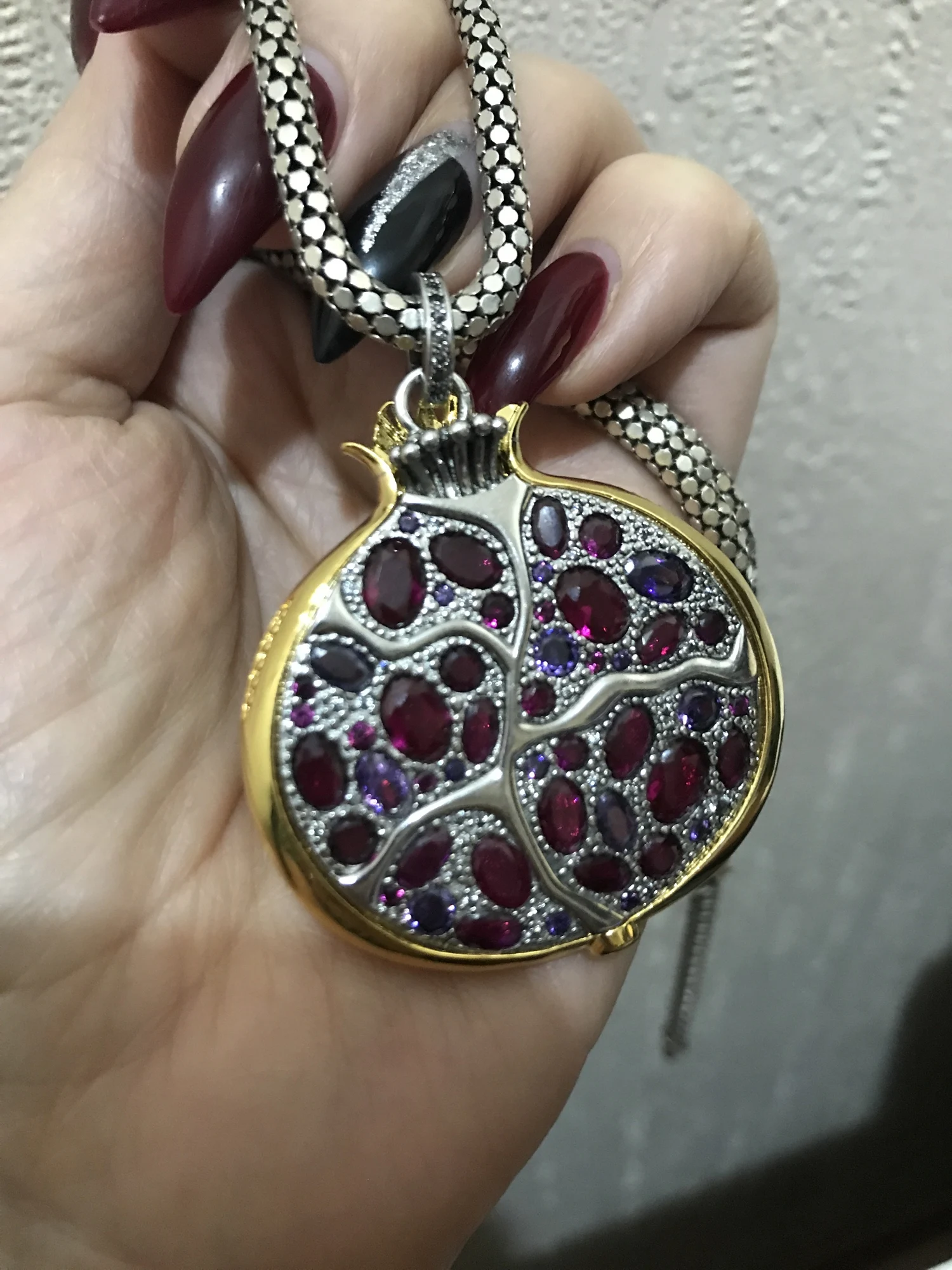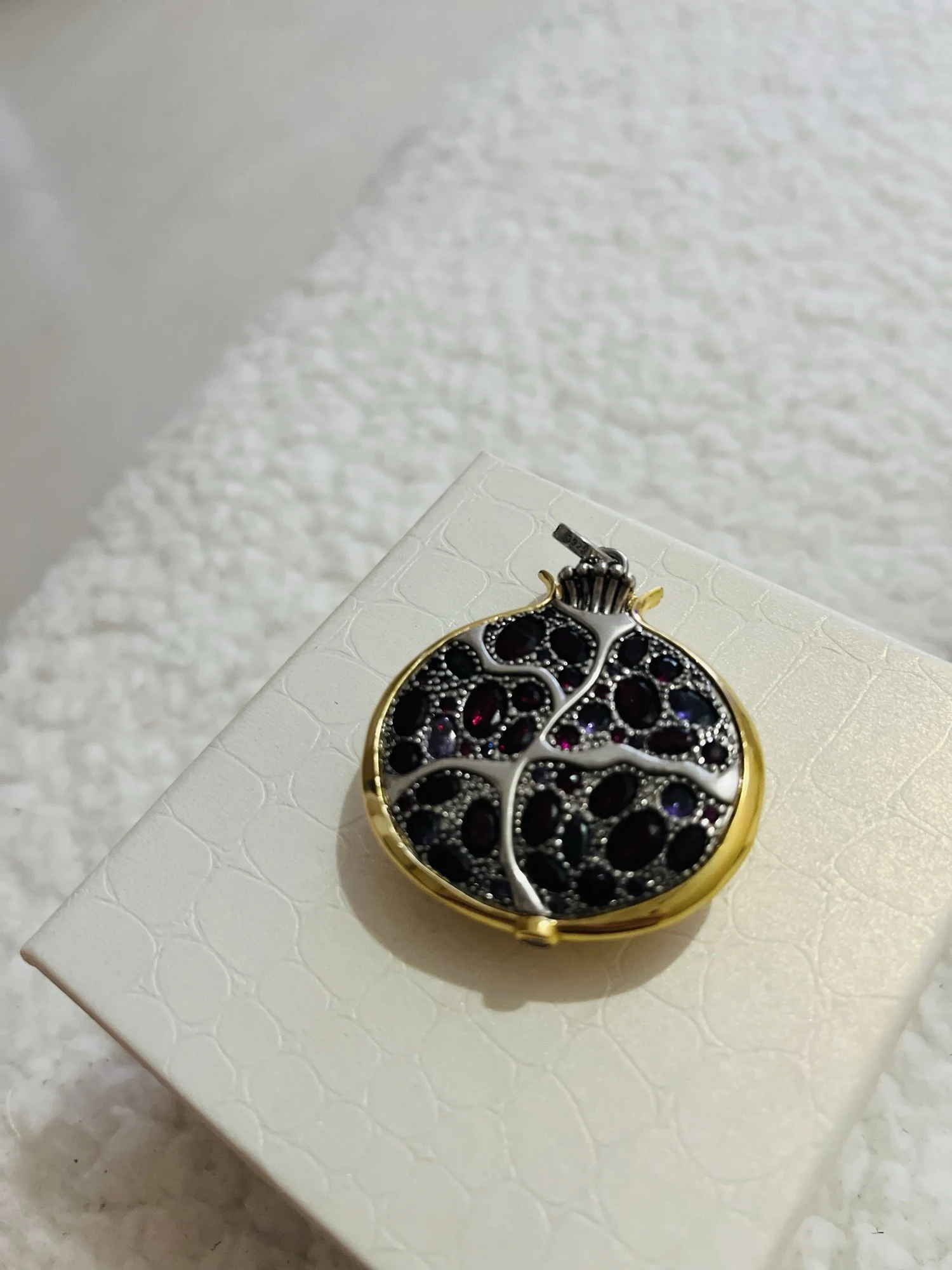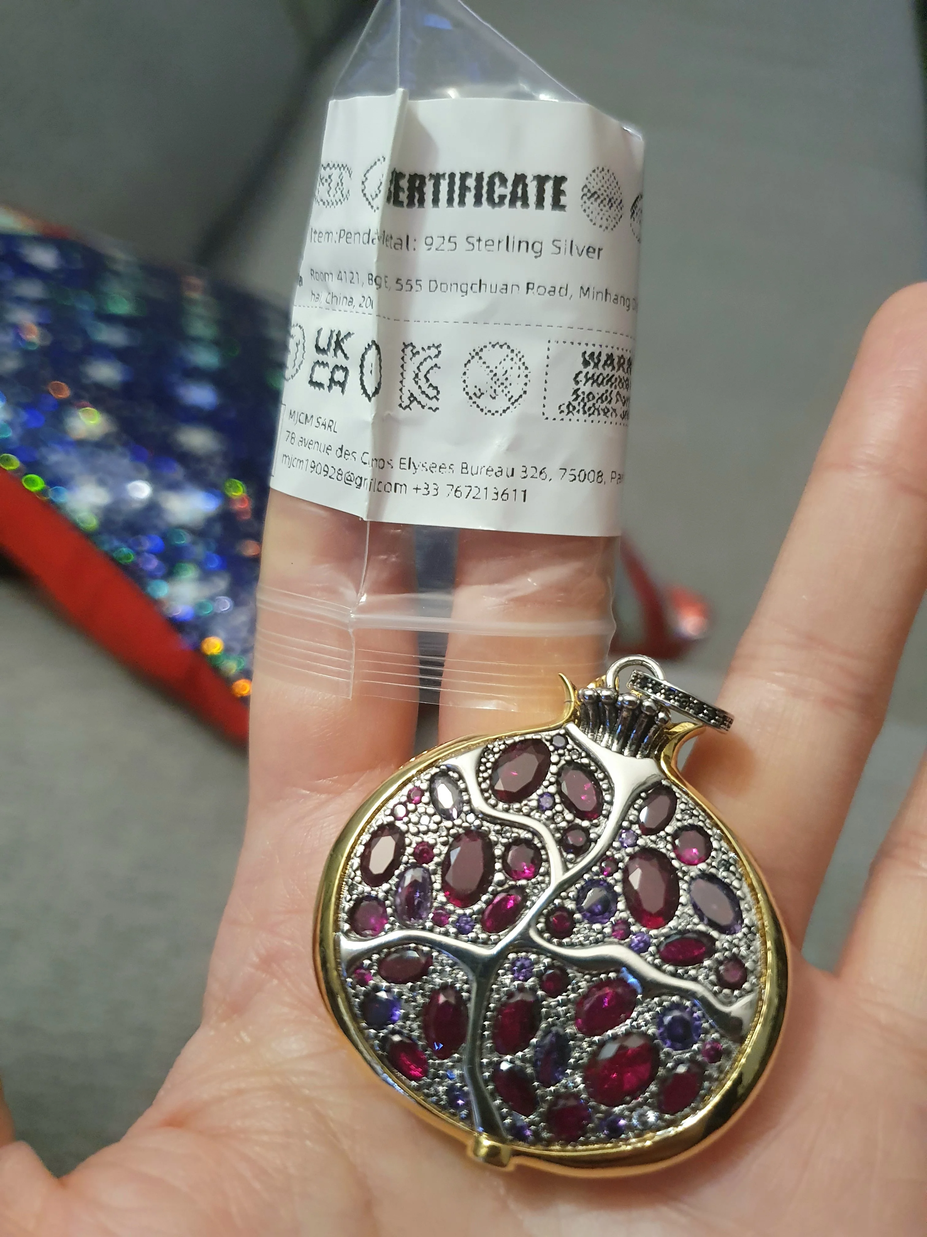 ОЧЕНЬ КРАСИВО!! Большой и подробный! Но я не верю, что он действительно сделан из серебра, по двум причинам: во-первых, он слишком тяжелый, чтобы быть сделанным из настоящего серебра, учитывая цену; и вторая причина в том, что некоторые «кристаллы» имеют небольшую затемнение сверху, почти как будто они были сделаны из пластика (пожалуйста, посмотрите мои фотографии), и в этом случае это подтверждает, что металл, вероятно, не драгоценный, хотя кулон все еще чрезвычайно мило. Сертификата о том, что он серебряный, только на сумке написано так, а на дужке есть отметка «925». Но кулон действительно КРАСИВЫЙ, одна из моих любимых вещей, которые я когда-либо покупал на Алиэкспресс! Используя пару купонов на Aliexpress и магазин, я заплатил 11,94 евро, включая бесплатную доставку. Отслеживаемая посылка. Прибыл быстро. Рекомендуется!