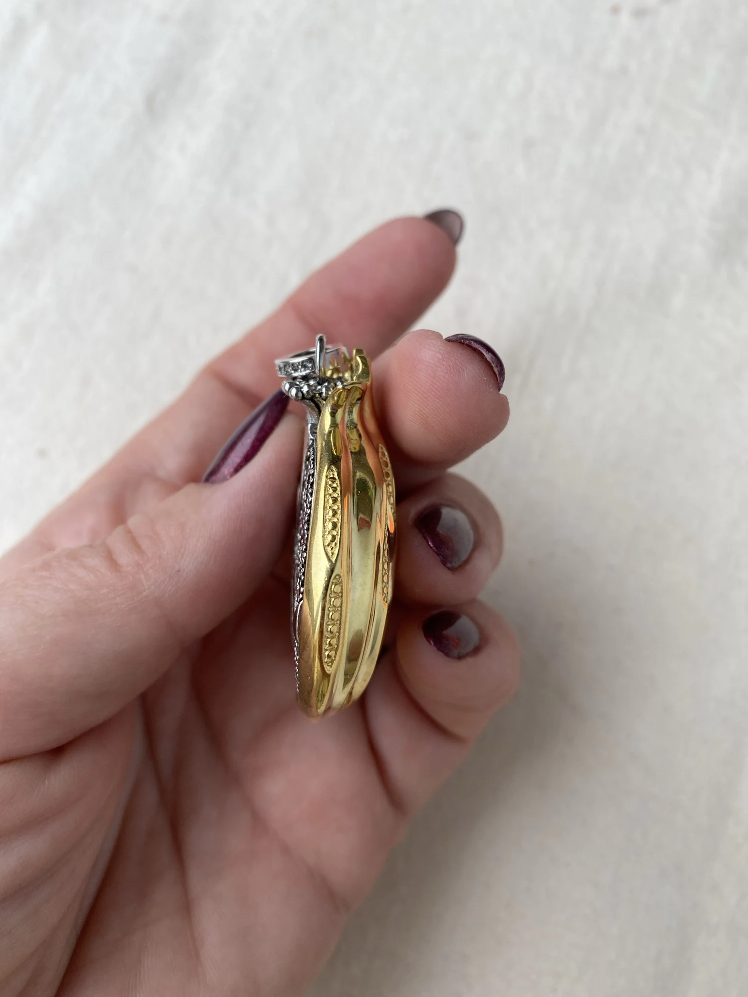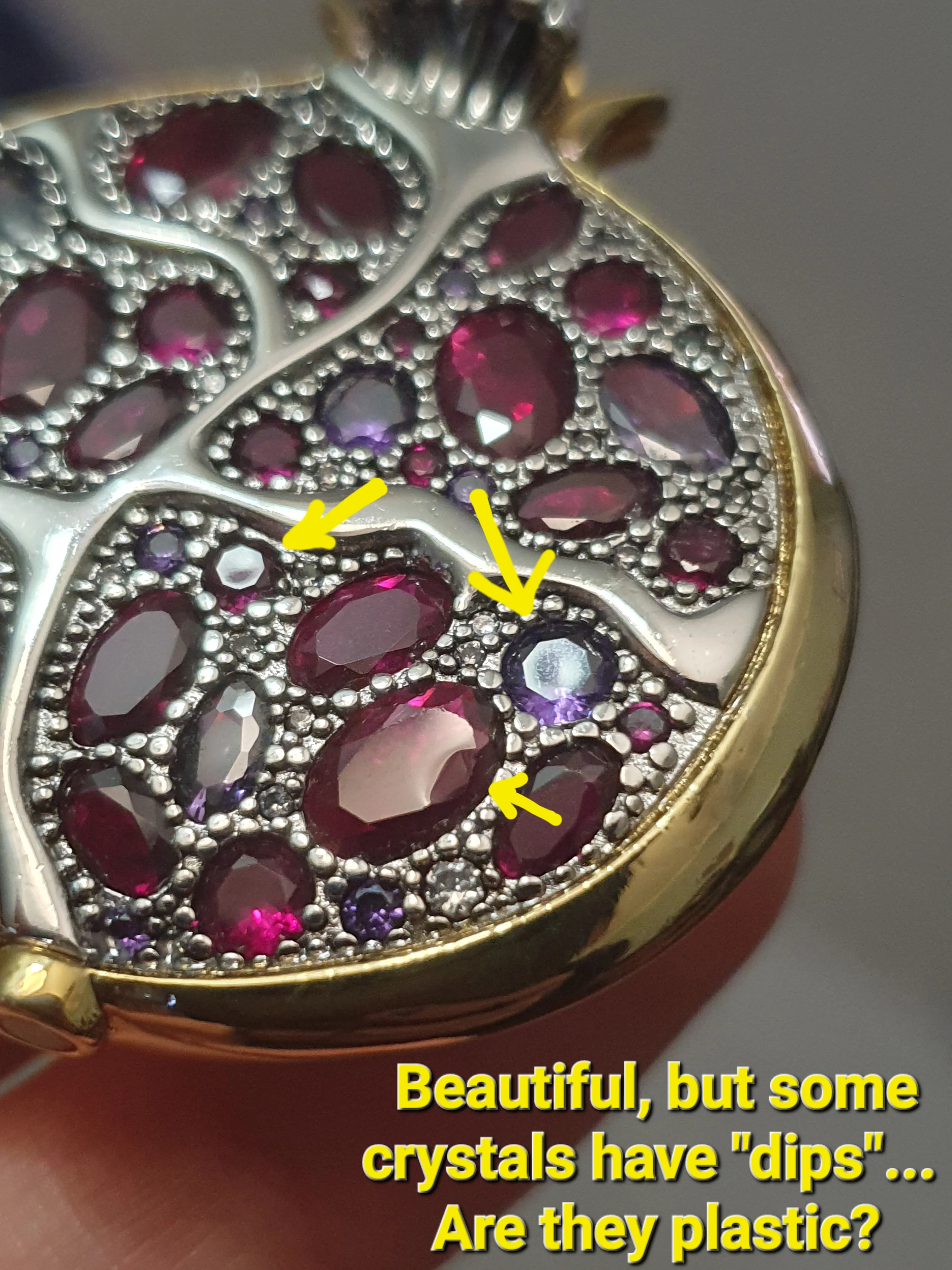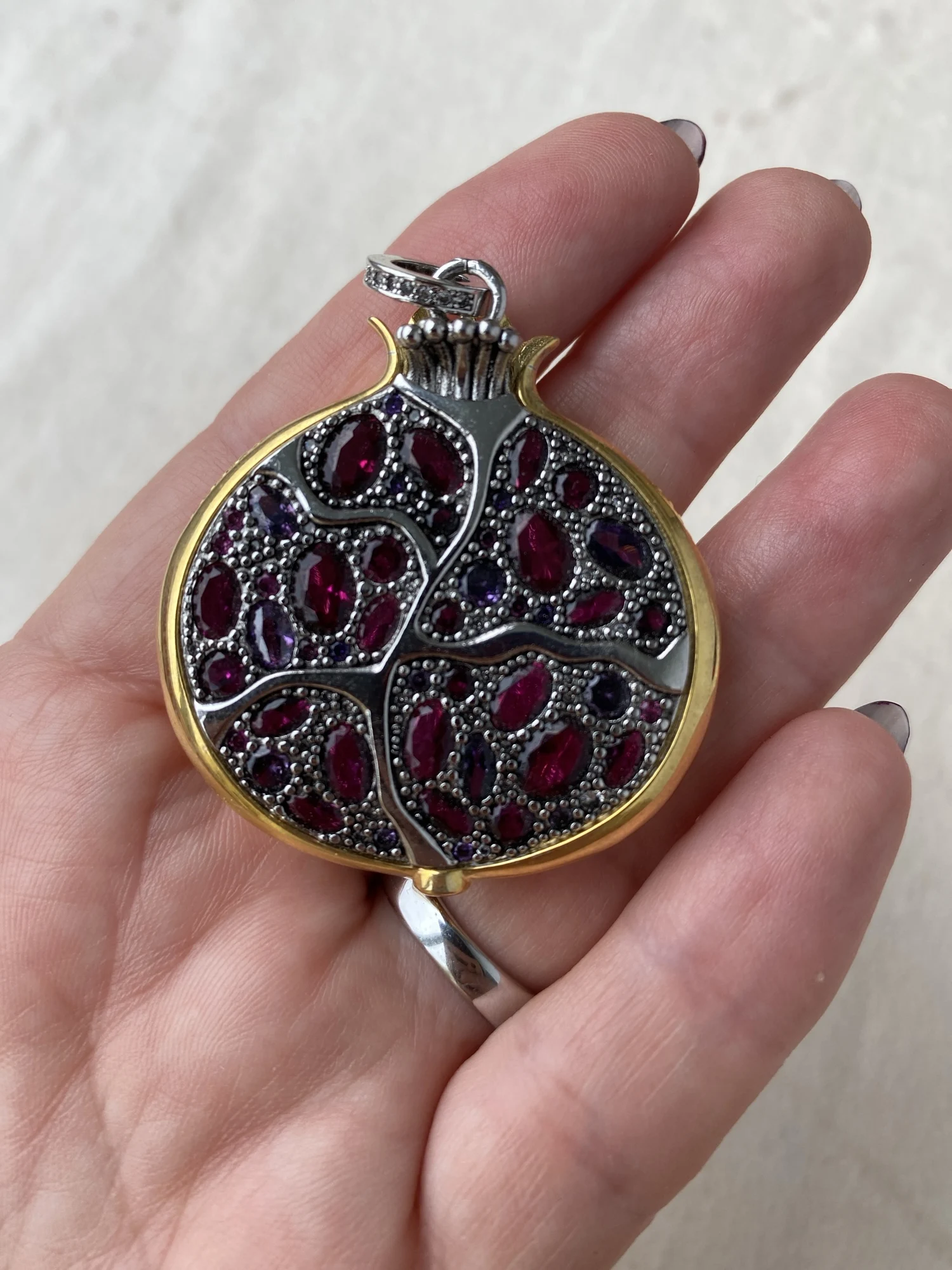 ОЧЕНЬ КРАСИВО!! Большой и подробный! Но я не верю, что он действительно сделан из серебра, по двум причинам: во-первых, он слишком тяжелый, чтобы быть сделанным из настоящего серебра, учитывая цену; и вторая причина в том, что некоторые «кристаллы» имеют небольшую затемнение сверху, почти как будто они были сделаны из пластика (пожалуйста, посмотрите мои фотографии), и в этом случае это подтверждает, что металл, вероятно, не драгоценный, хотя кулон все еще чрезвычайно мило. Сертификата о том, что он серебряный, только на сумке написано так, а на дужке есть отметка «925». Но кулон действительно КРАСИВЫЙ, одна из моих любимых вещей, которые я когда-либо покупал на Алиэкспресс! Используя пару купонов на Aliexpress и магазин, я заплатил 11,94 евро, включая бесплатную доставку. Отслеживаемая посылка. Прибыл быстро. Рекомендуется!