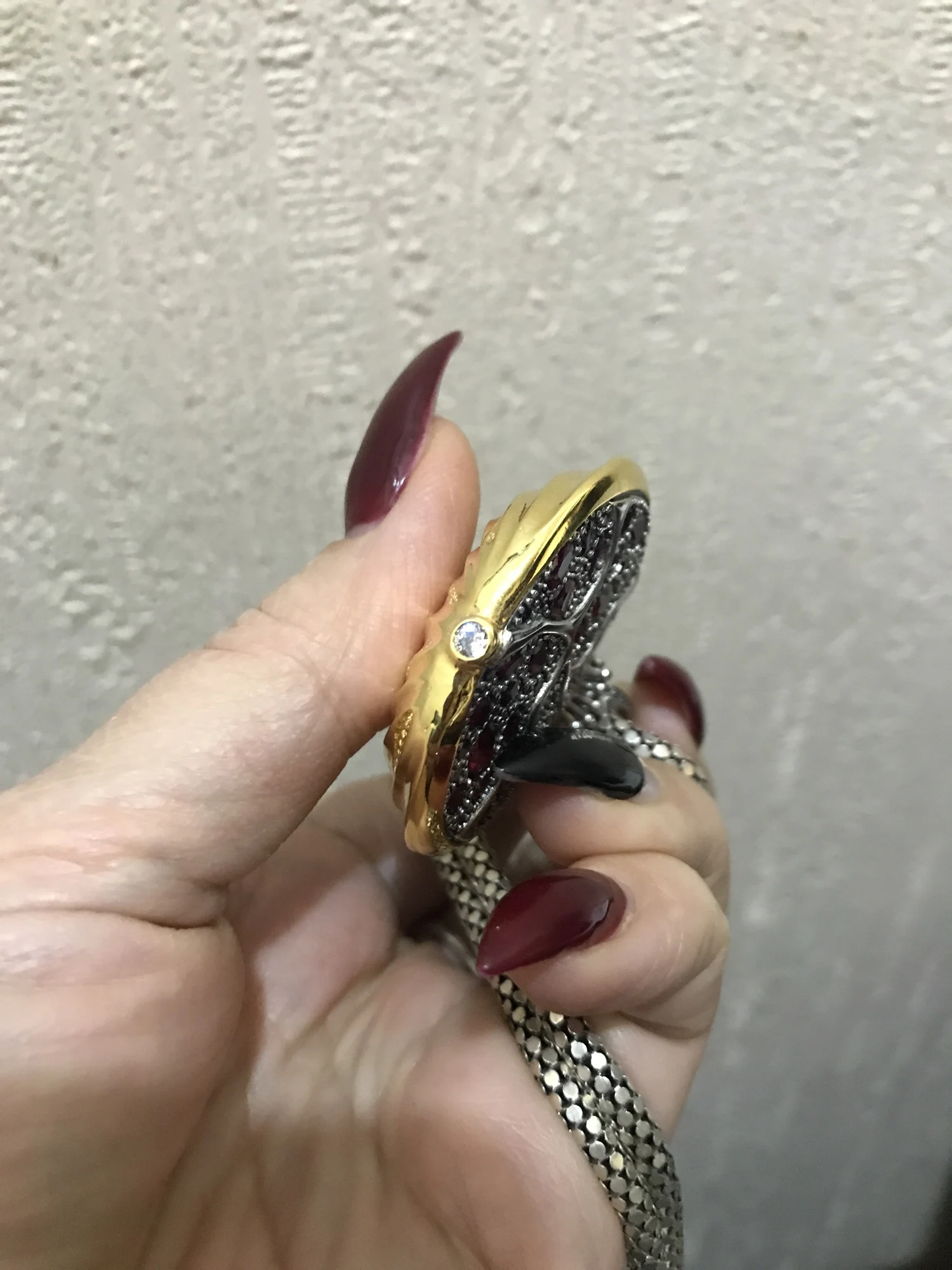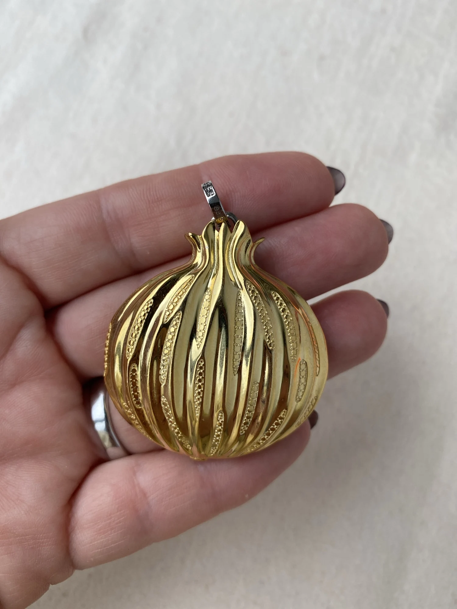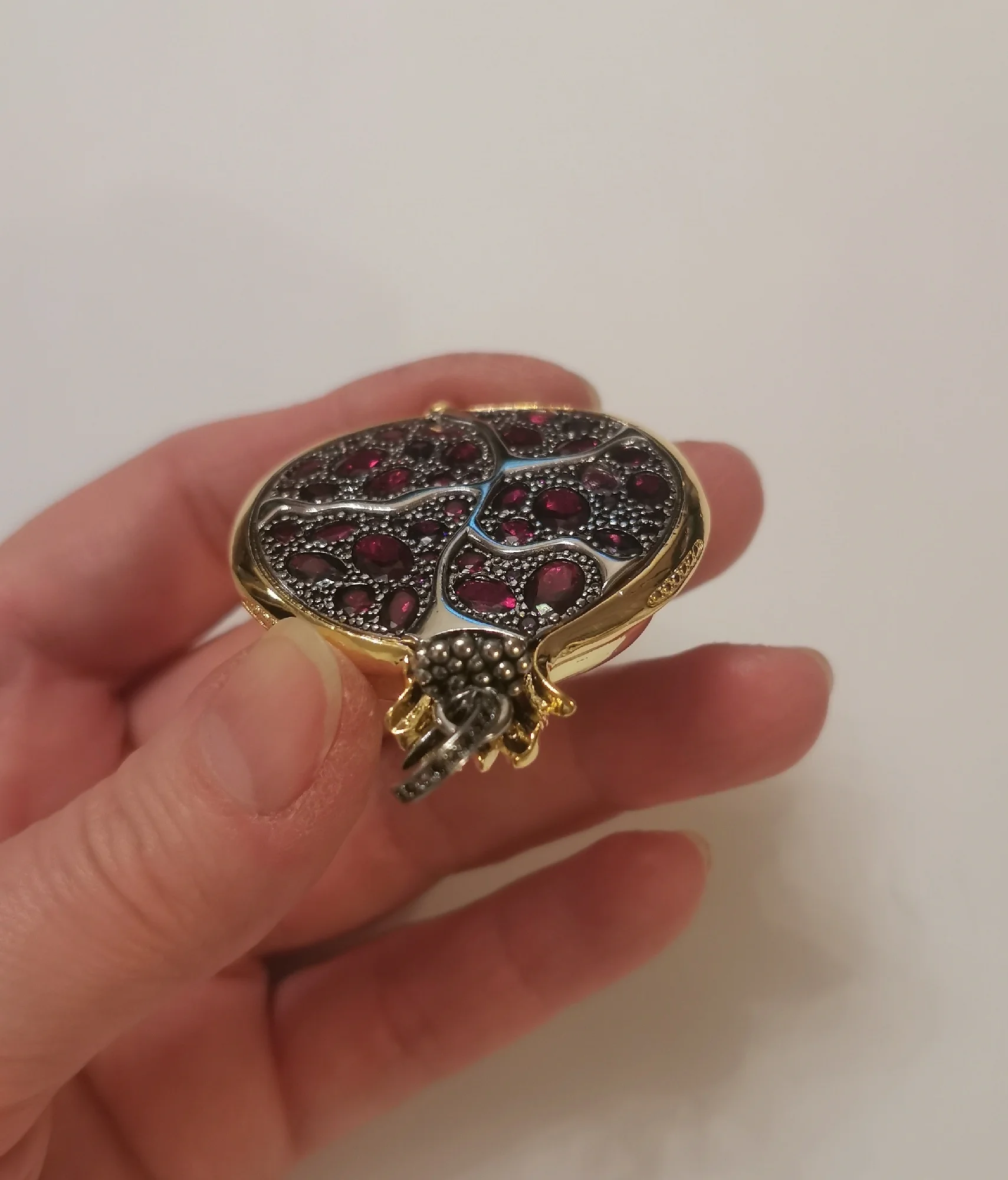 великолепная детализация, обратную сторону граната предпочитаю более плоской ,но и так хорошо .Красивый одним словом .штамп на кольце