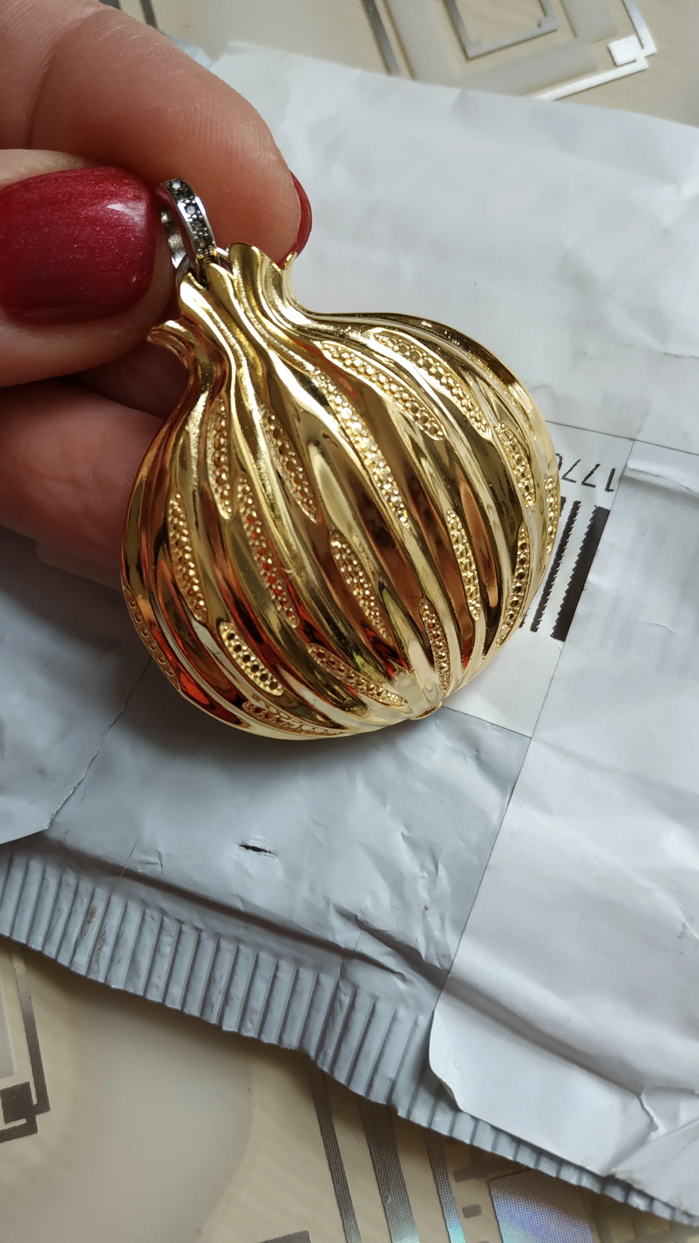 мега быстрая доставка. кулон очень качественный, без дефектор, изящный и красивый. пришел в постамат, в пакете с пупырками.