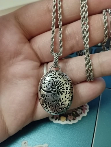 Очень красивый медальон. Доставка 3 недели до пункта выдачи в МСК. Стоит 925 проба, но я сомневаюсь, что это серебро. Ношу несколько дней, не окисляется, следов нет, напыление не облезло. Цепочка на фото моя.