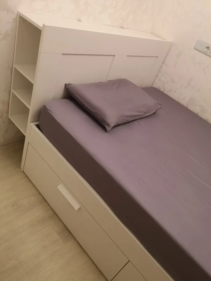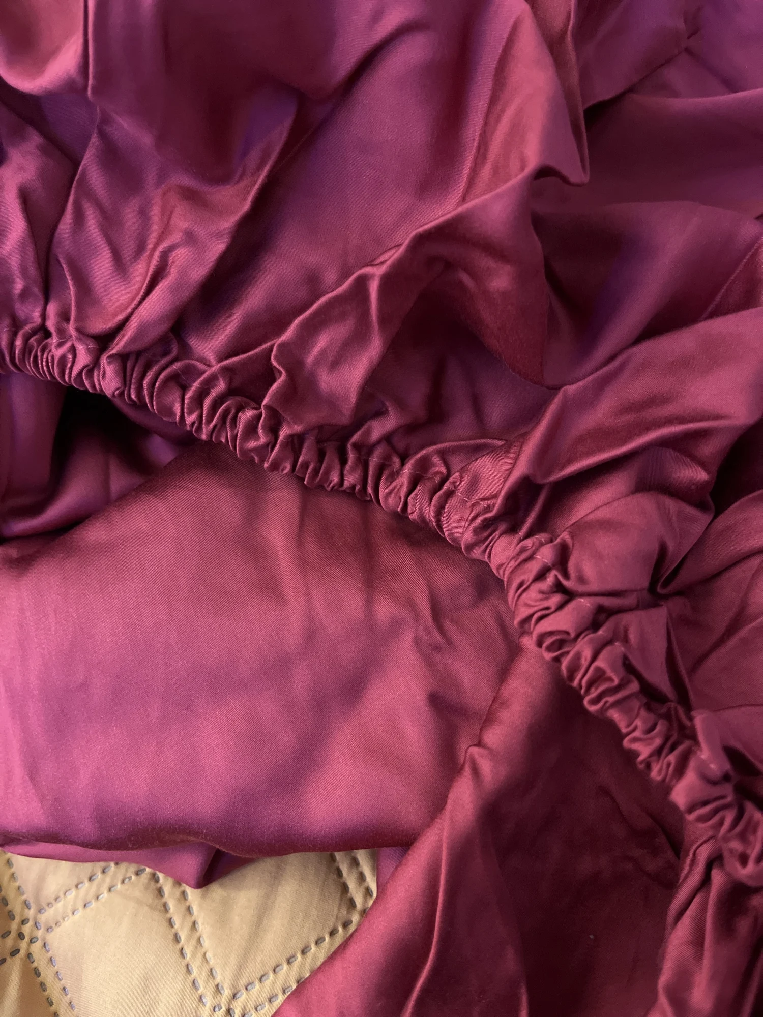 Красивая и удобная простыня, размеры точно по матрасу, поэтому задирается, не уползает. Ещё большой плюс у такой простыни - она не скозькая, как обычный шёлк, но из-за этого и не такая блестящаая. Уже ранее покупал такую наволочку, после 4-5 стирок ещё меньше стало блестеть. Но жто не мешает. Как раз и хотели купить нескользкий и не блестящий постельный комплект. Я посмотрю, как будет вести себя после 5 стирок, и ещё докуплю пару пододеяльников.vadim l. 20 мая 2023