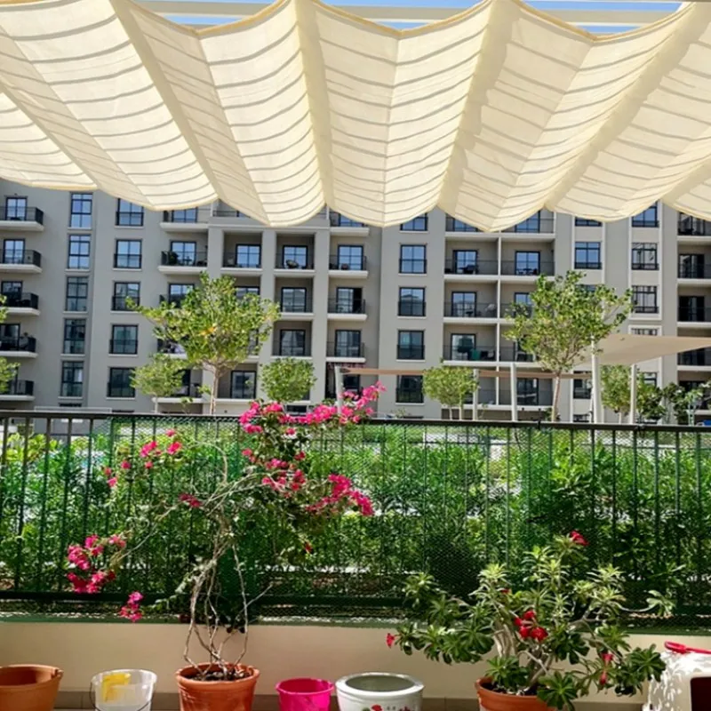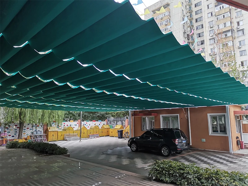 * Телескопическая волнистая солнцезащитная сетка во дворе