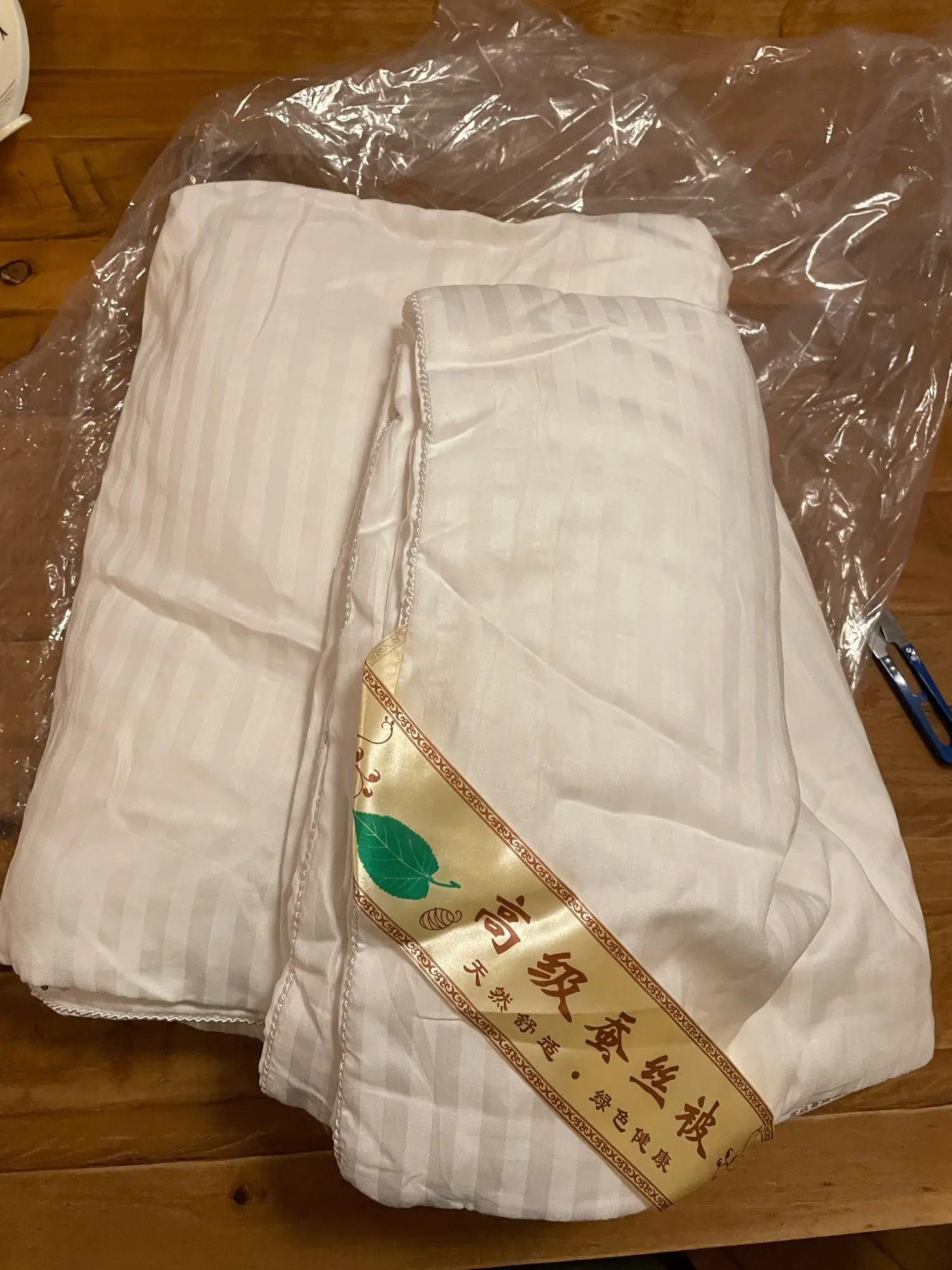 По поводу отрицательных отзывов, что здесь писали. С испугу "обвеса" заказала, двухспальное, не 2 килограмма, как хотела, а 2,5 кг. Теперь получив товар, понимаю что ошиблась, надо было не слушать отзывы, а заказать 2 кг. Я путешествовала по Китаю. Купила 2 шелковых одеяла на фабрике Сучжоу № 1. Теперь купила у этого продавца. И утверждаю, что не "обвешивают"! И это самое настоящее шелковое одеяло. ВСЁ на ФОТО!!! РЕКОМЕНДУЮ продавца!!! Некоторые люди возмущались тоненькой тряпочкой, так оно и должно быть такое!!! Это не ватное одеяло. Посмотрите видео, как делается шелковое одеяло... Неудобства были, когда с АЛИ приходили каждый день письма на почту с предупреждением "Исправьте данные для таможни, у вас ошибка"!!! Но потом ДОСТАВКА прислала форму для таможни, нужно было указать ИНН. И всё стало отлично!!!
