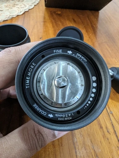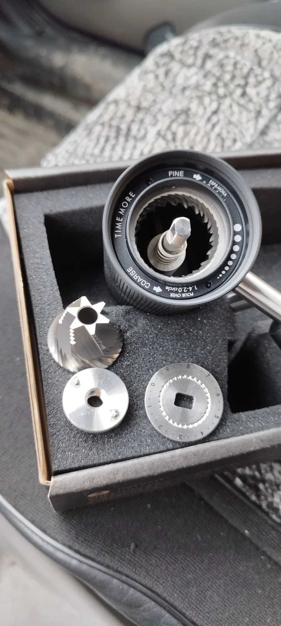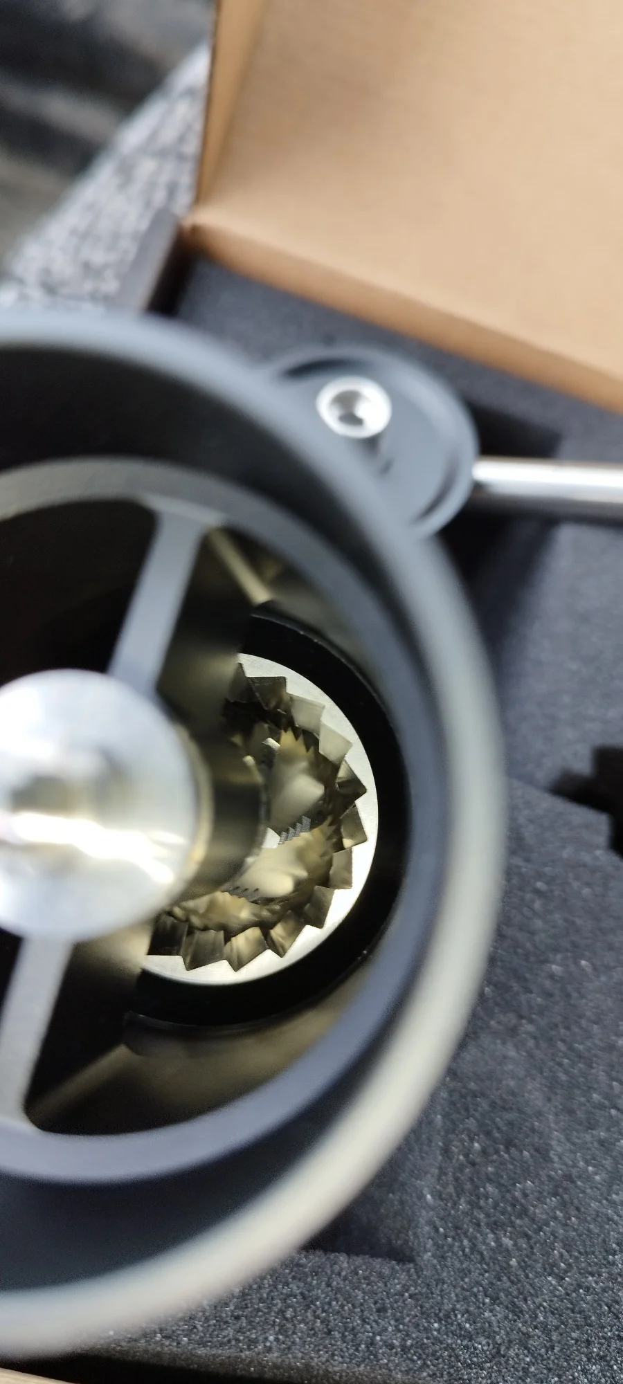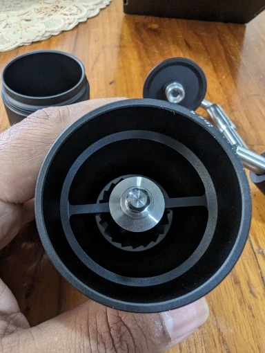 Это настоящая и красивая кофемолка! Можно набрать точный размер зерна, и измельчение так просто! Он имеет вес и четко указывает на лучшее качество! Не стесняйтесь покупать этот товар! Он прослужит вам много лет хорошей дегустации кофе!